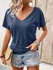 2025 Verano Europeo y Americano Transfronterizo Nuevo Camiseta de Manga Corta para Mujer Holgada con Cuello en V de Color Puro Ropa de Algodón Colorida para Mujer