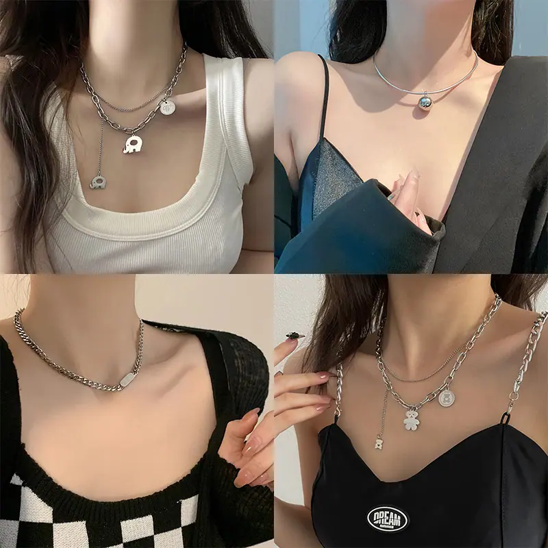 Collar de acero de titanio transfronterizo de gran venta 2025 nueva moda lujo ligero diseño de personalidad colgante accesorios versátiles de alta gama