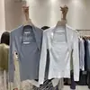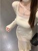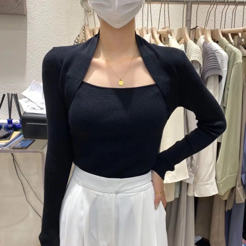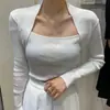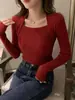 2025 Otoño/Invierno Nueva Camiseta Coreana Ajustada para Mujer Ropa Diseño Cuello Cuadrado Tejido Camiseta Básica Top de Manga Larga