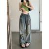 Jeans Retro de Estilo Americano Rotos de Pierna Ancha para Mujer Verano Nuevo Talla Grande Chica Gordita Diseño de Cintura Alta Pantalones Rectos