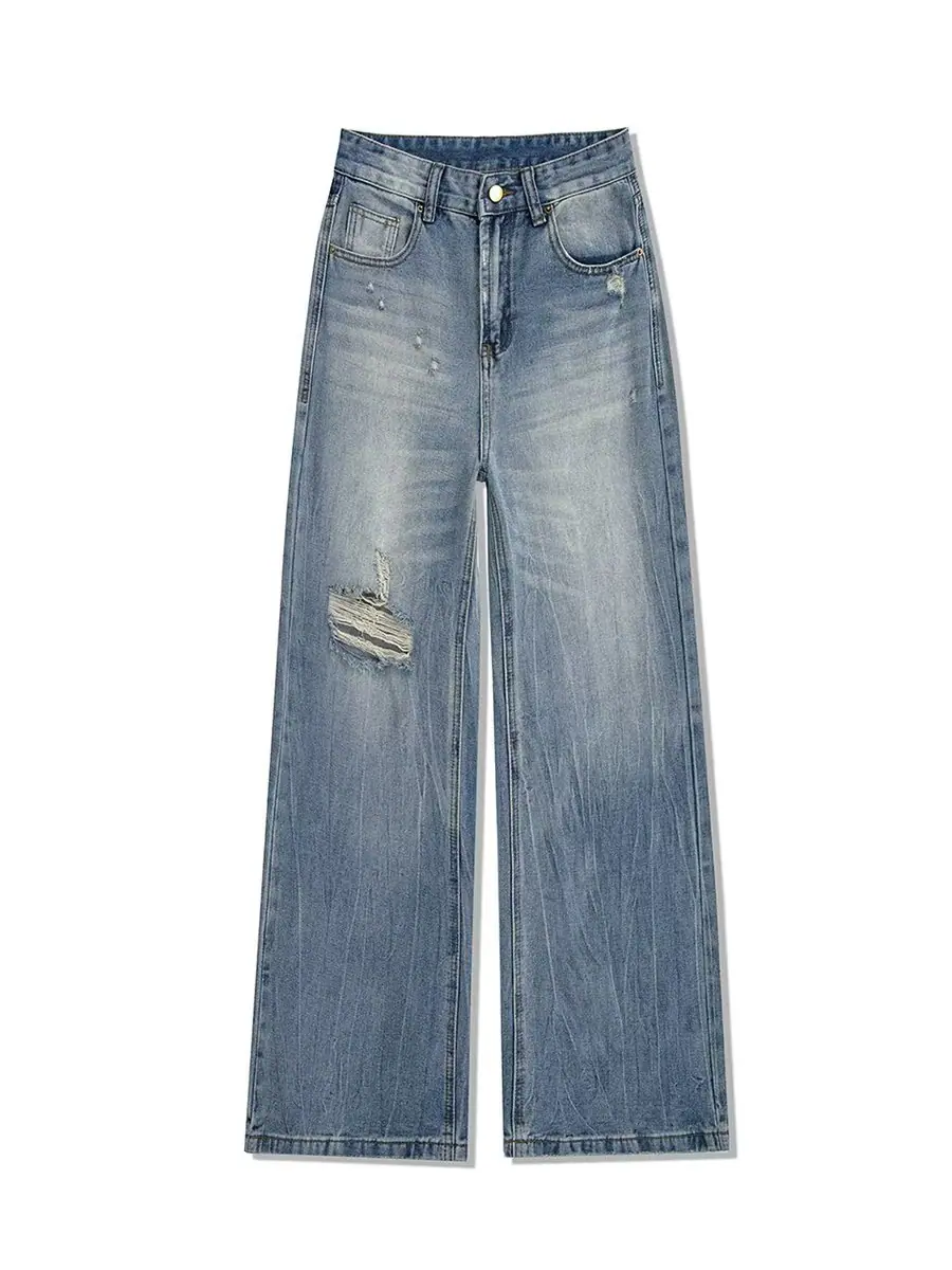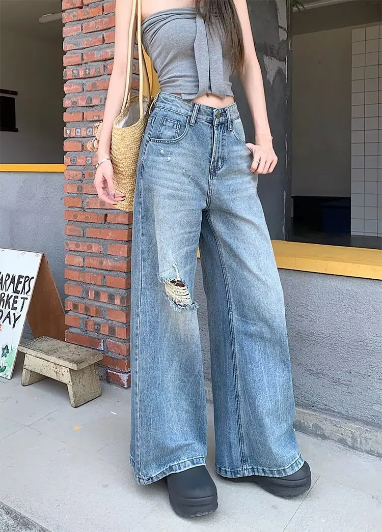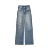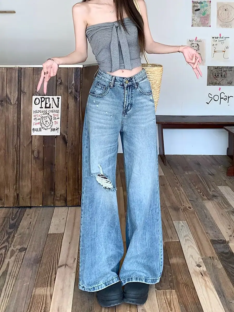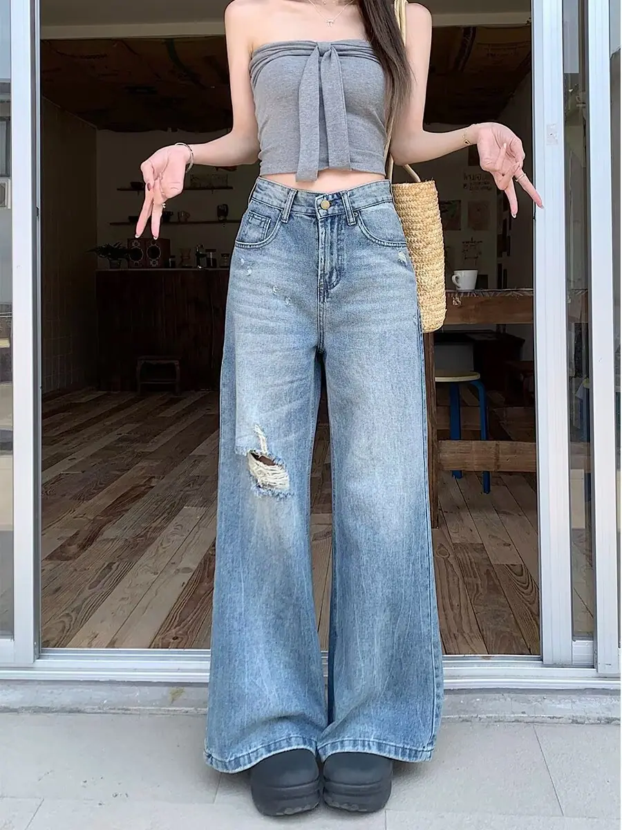 Pantalones vaqueros rasgados de papá para mujer, de primavera y otoño, de cintura alta, holgados, con forma de pera pequeña.