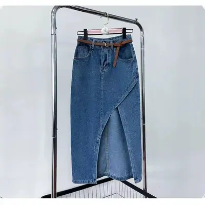 Falda vaquera de cintura alta, ajustada, con abertura irregular, diseño retro, línea A, longitud media, primavera y otoño de 2025