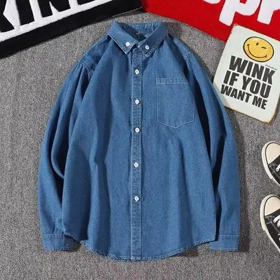 Camisa de mezclilla lavada para hombre de manga larga 2024 primavera nueva tendencia moda de alta gama casual color sólido versátil chaqueta
