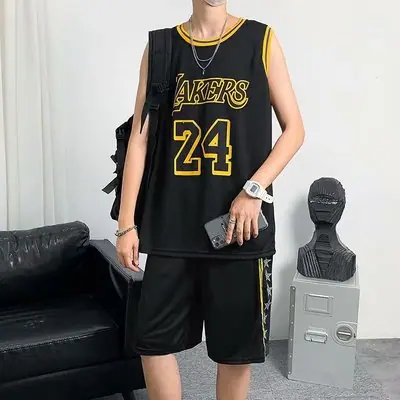 Traje deportivo de baloncesto de malla de seda de hielo para hombre, marca de moda, camiseta sin mangas, chaleco, pantalones cortos casuales, conjunto de ropa