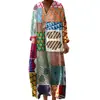 2025 Estación Independiente Transfronteriza Amazon Vestido Camisero de Manga Larga para Mujer Casual Floral Manga Estampada en 3D Falda Larga