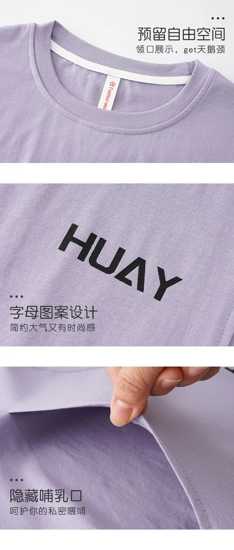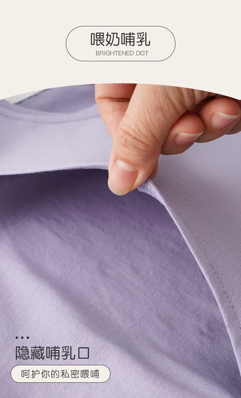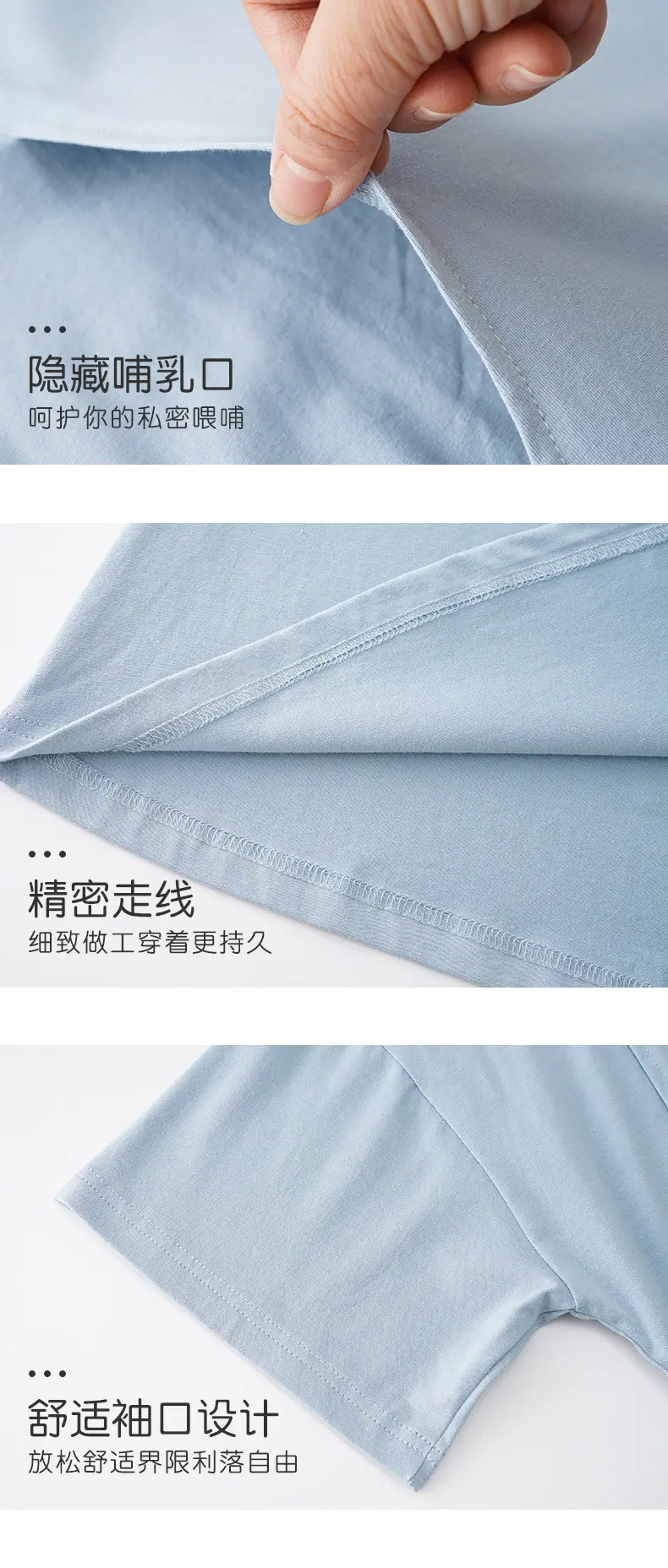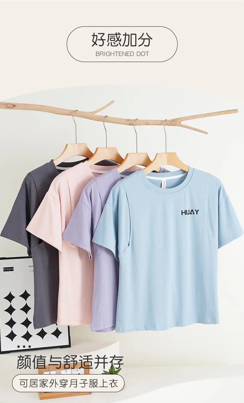 Pijama de Maternidad de Algodón Puro de Manga Corta de Color Sólido Verano Fino Postparto Talla Extra Top de Lactancia