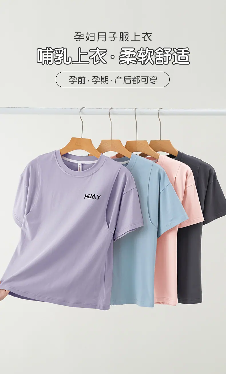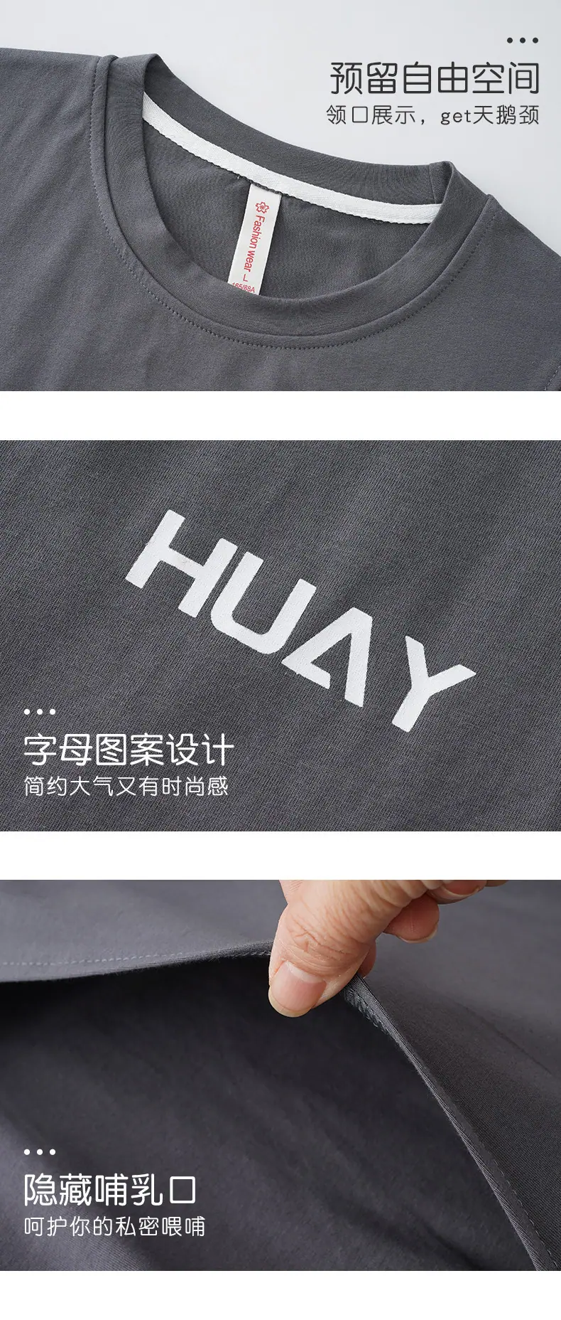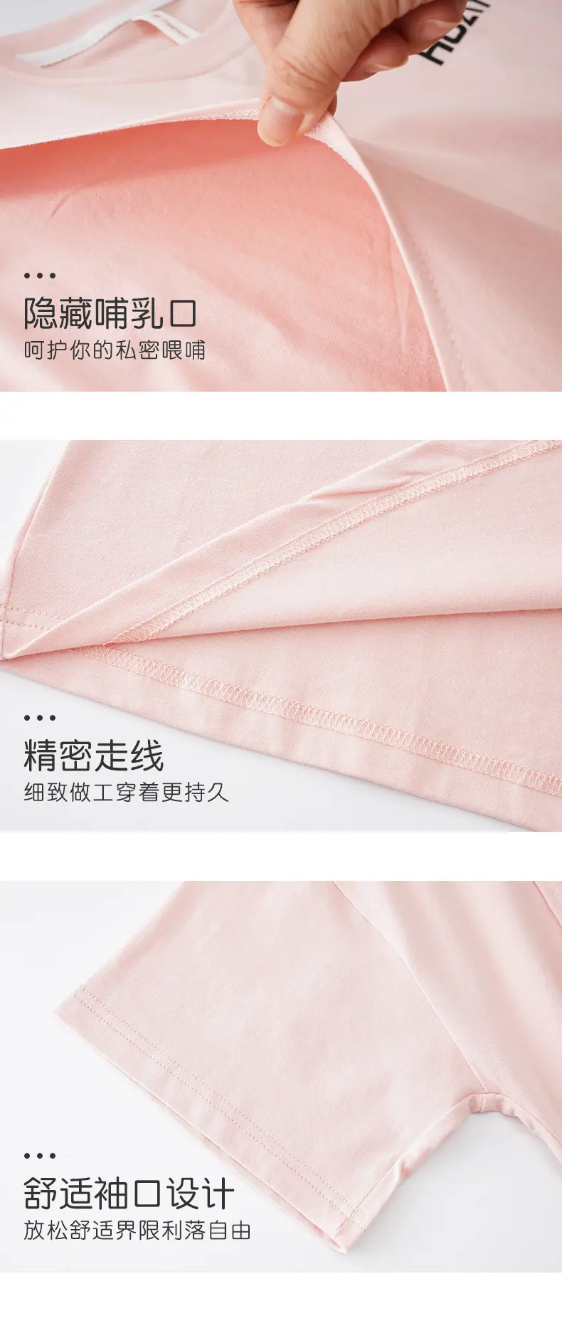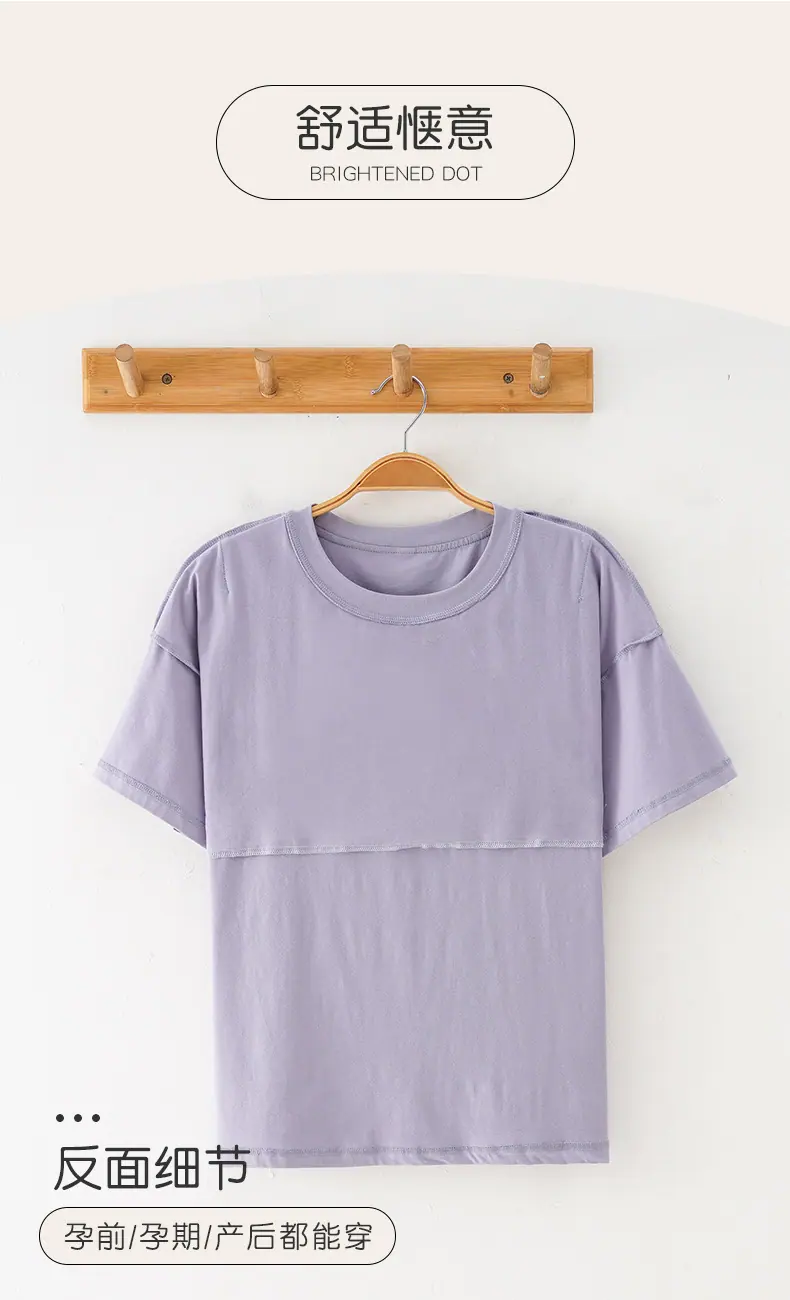 Pijama de Maternidad de Algodón Puro de Manga Corta de Color Sólido Verano Fino Postparto Talla Extra Top de Lactancia