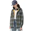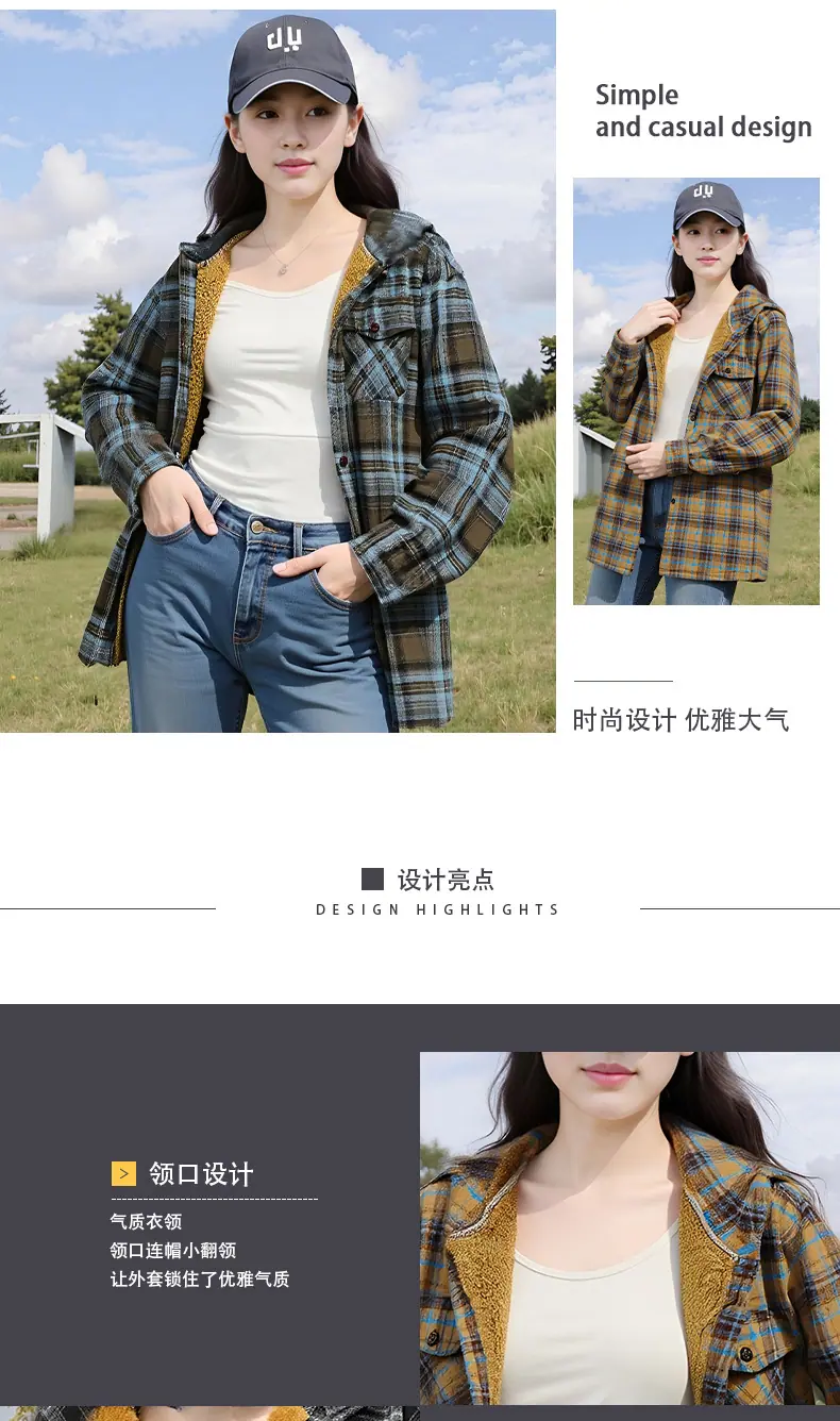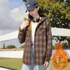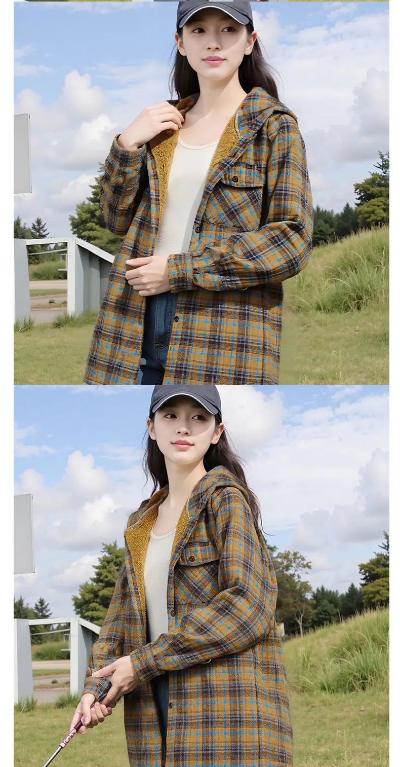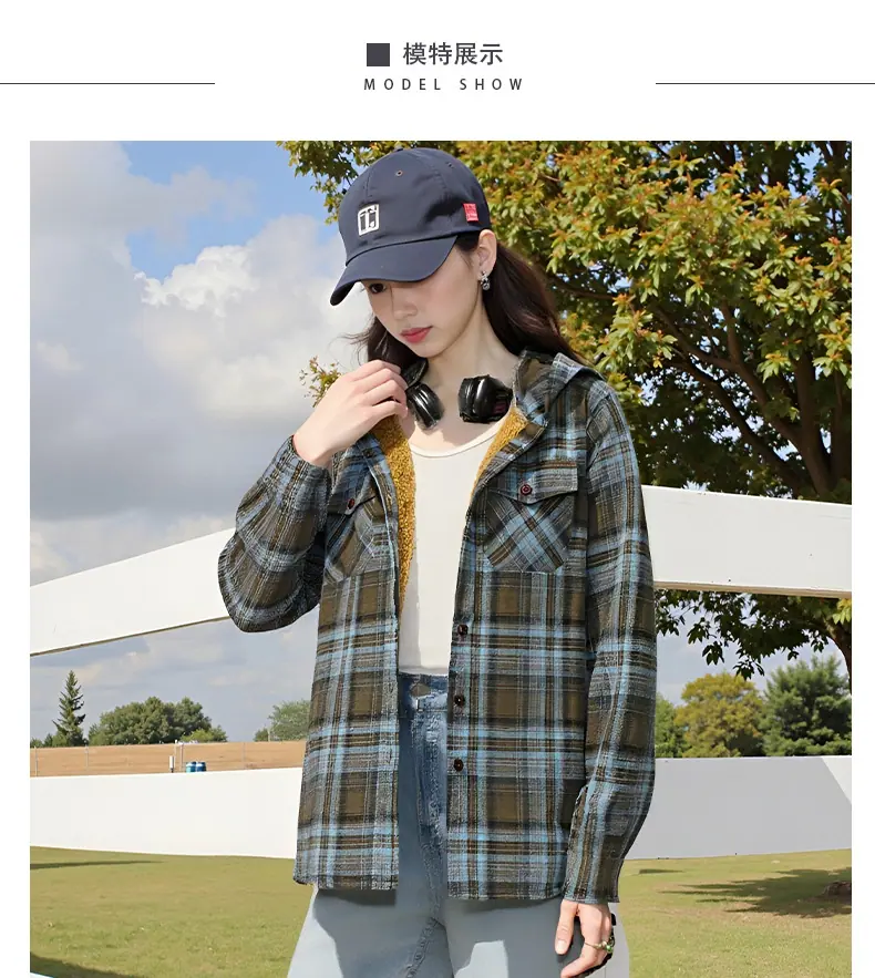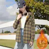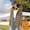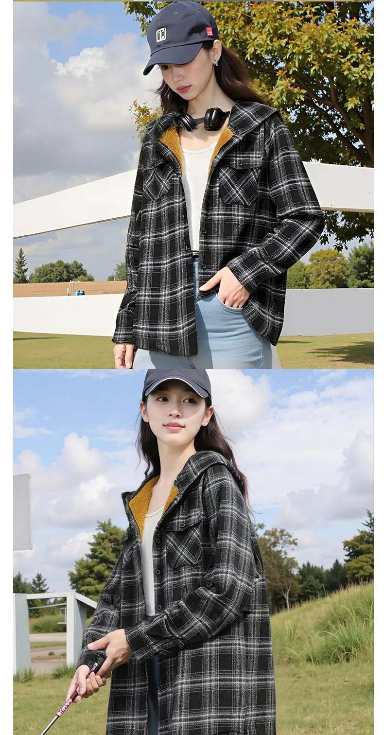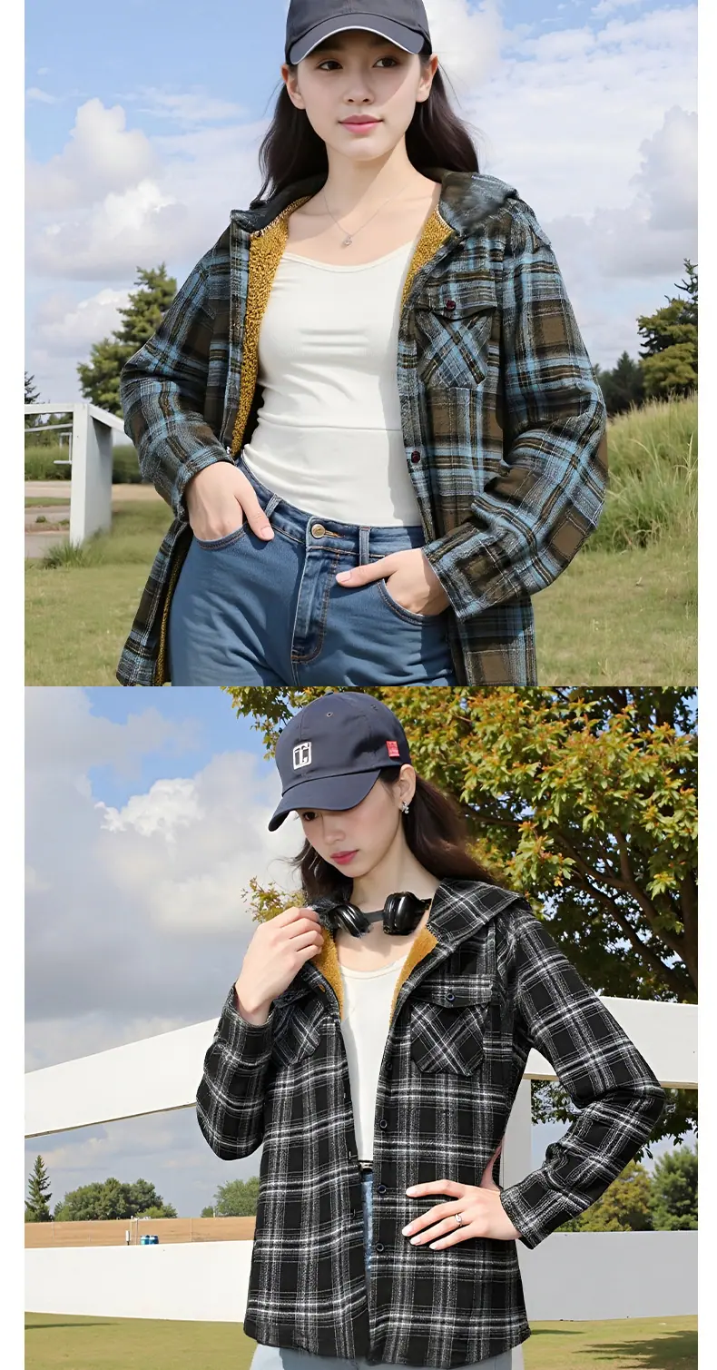 Camisa a cuadros japonesa retro con capucha nueva de otoño invierno, holgada, adelgazante, versátil, estilo casual, manga larga, chaqueta camisa para mujer