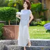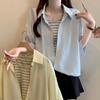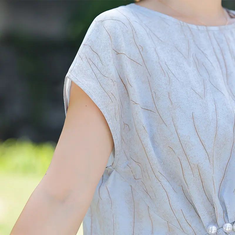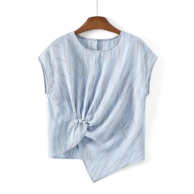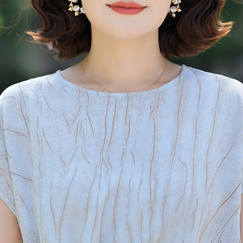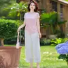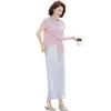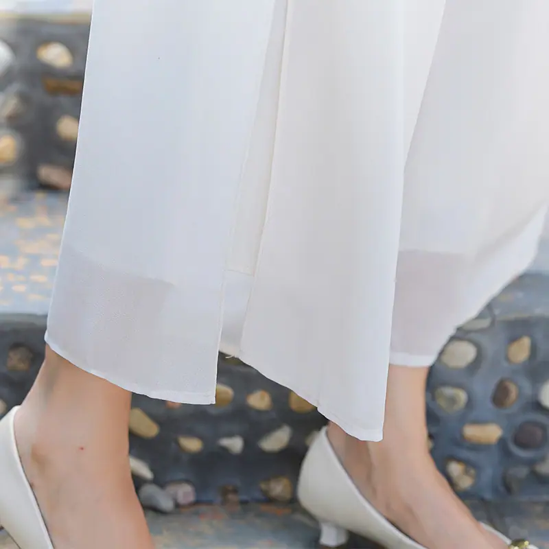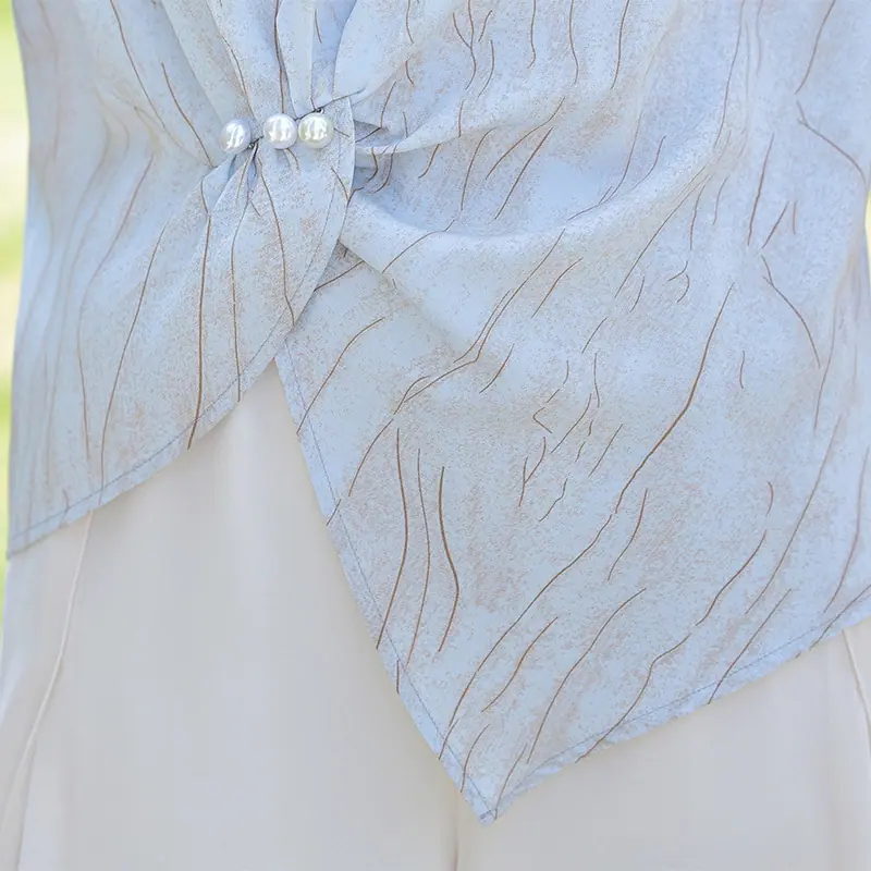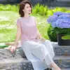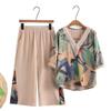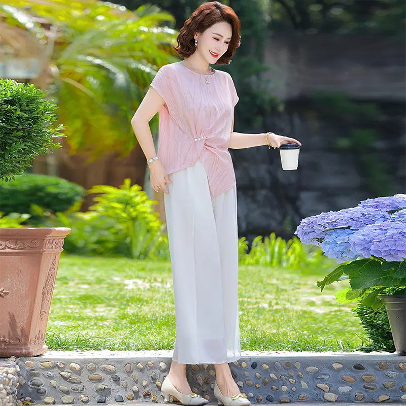 Traje Casual Delgado de Moda de Verano al Por Mayor Camisa Irregular Holgada que Cubre el Vientre Pantalones de Pierna Ancha Traje de Madre para Reducir la Edad