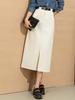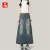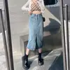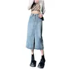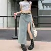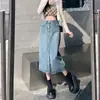 Falda de mezclilla adelgazante de cintura alta para mujer, Nueva falda lápiz midi con abertura retro en A para primavera 2025