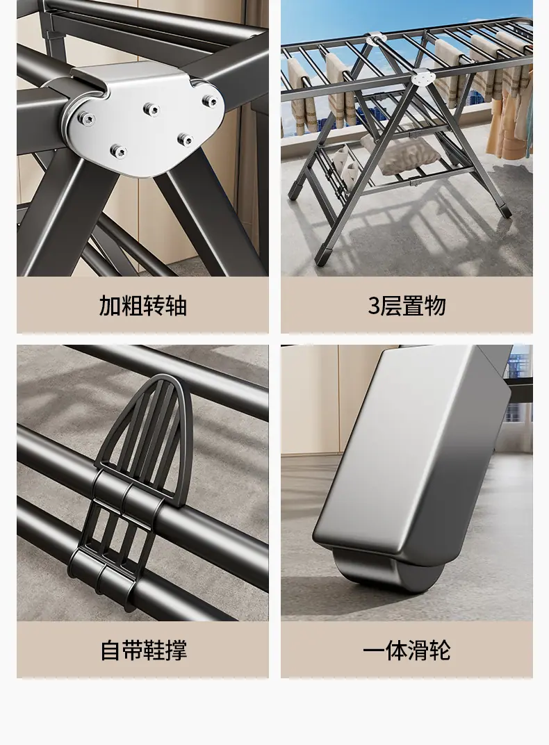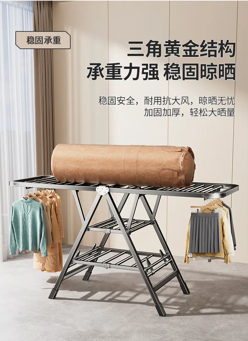 Tendedero Plegable de Piso Tendedero para Ropa Dormitorio Hogar Interior Exterior Balcón Secado Edredón Colgador de Ropa Artefacto Más Vendido