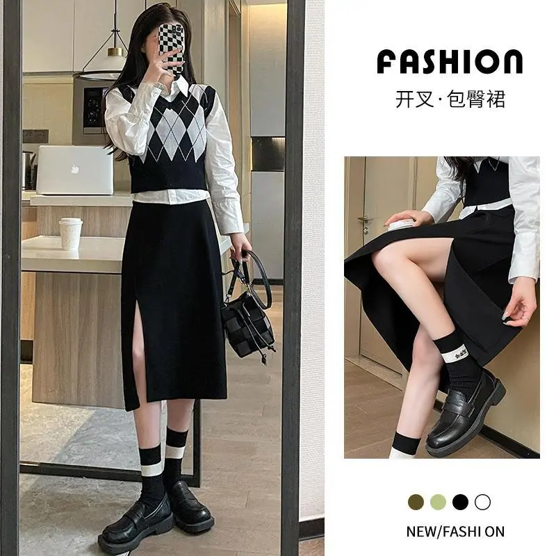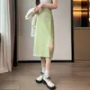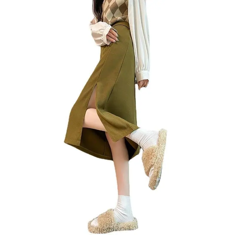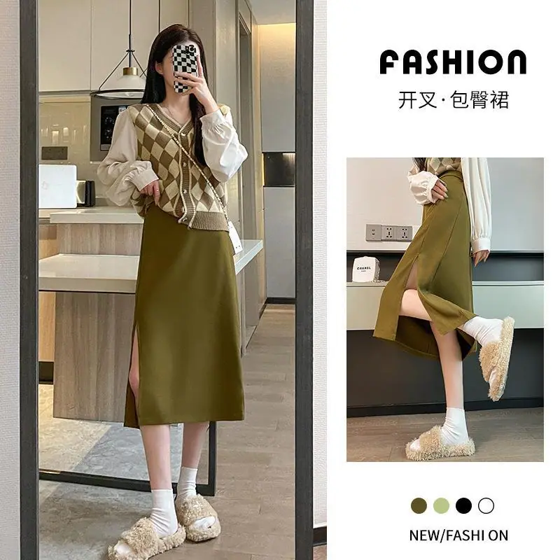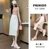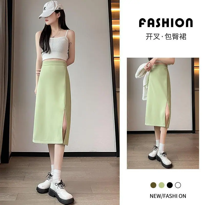 Falda Midi con Abertura Delantera Nueva Falda Adelgazante Bodycon Falda Blanca Primavera Verano Versátil Cintura Alta Falda Corta Mujer Talla Grande 2025