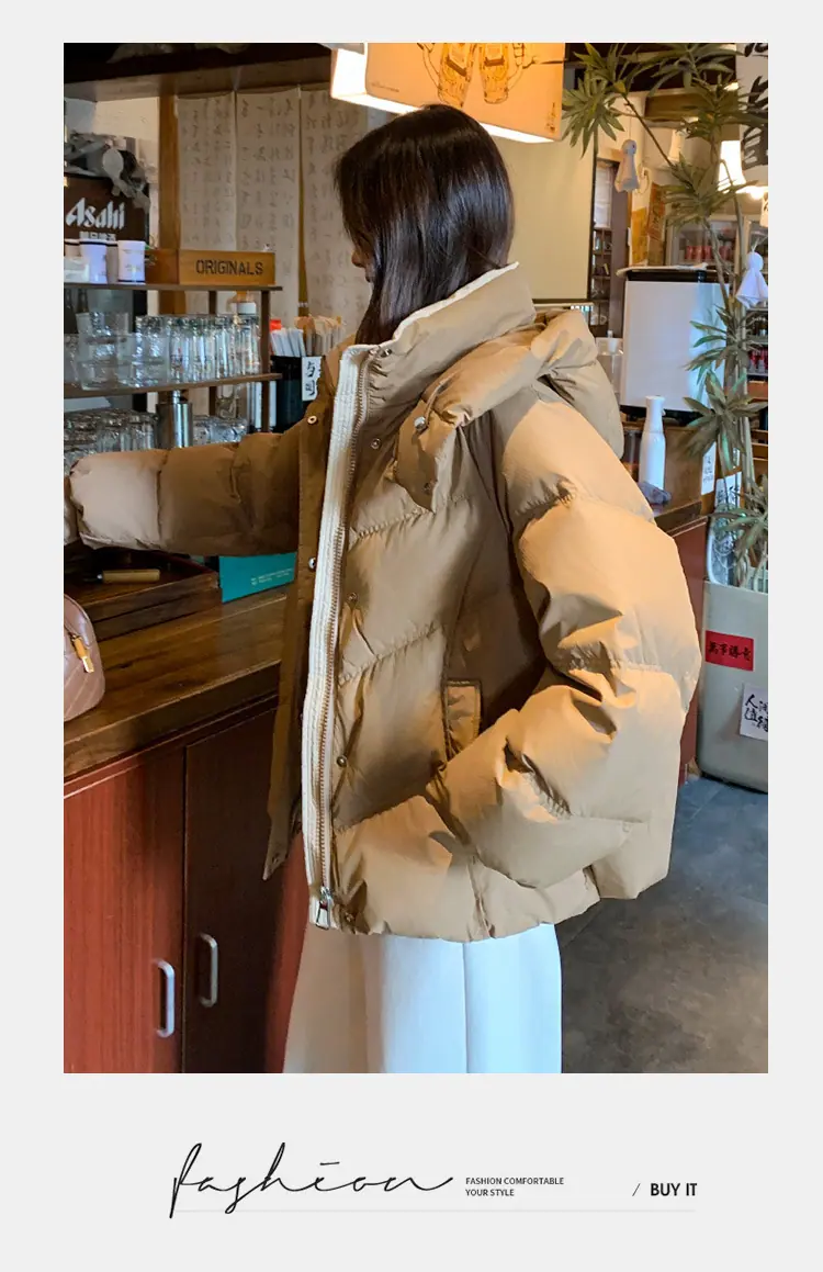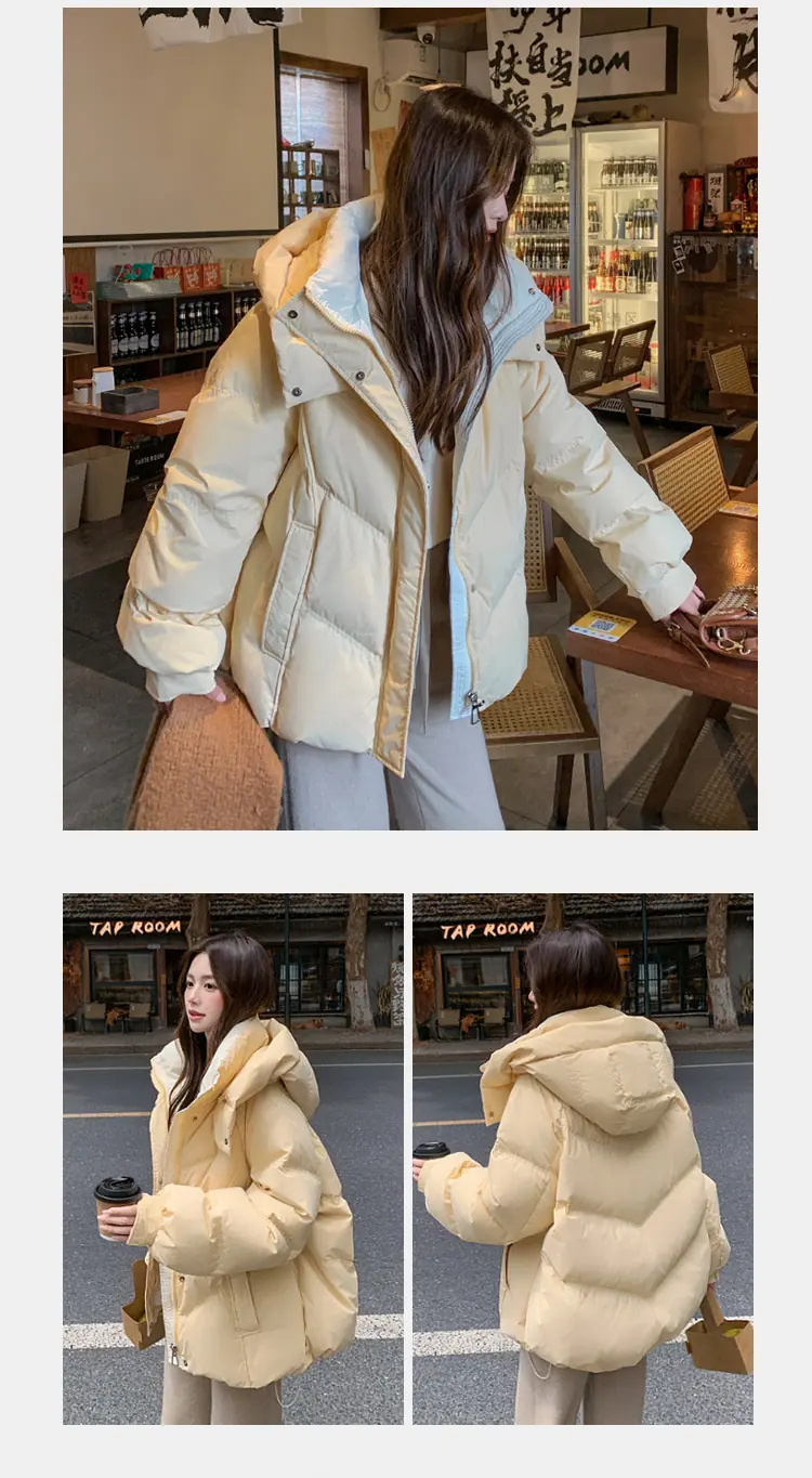 Abrigo de algodón plumífero estilo coreano para mujer 2025 nuevo holgado corto chaqueta de algodón engrosada abrigo con capucha de invierno para mujer tendencia