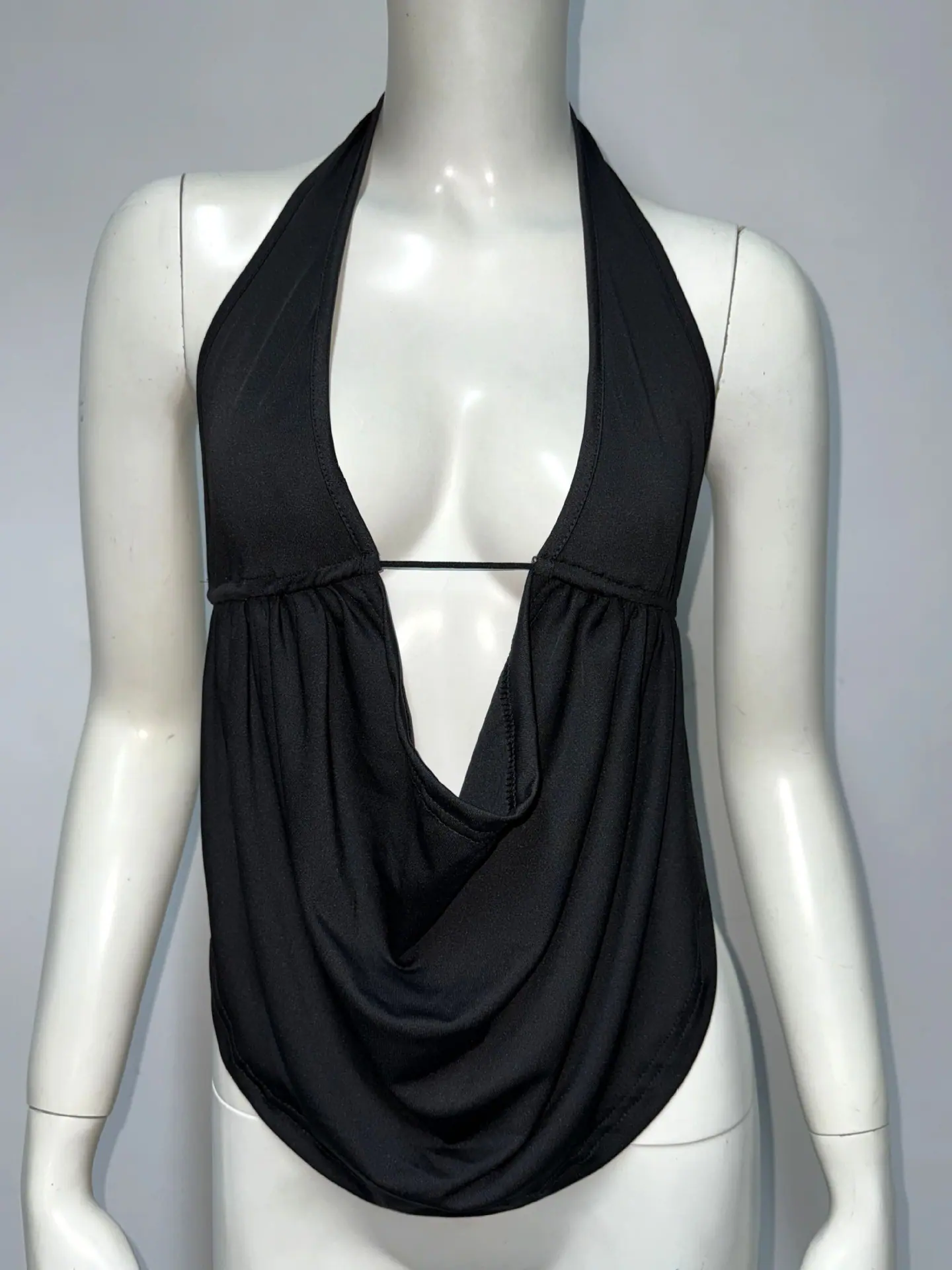 Tendencia de Moda Verano 2025 Ropa de Mujer Cuello Halter Tirante Sexy Espalda Descubierta Envolvente Pecho Top Chaleco de Chica Caliente