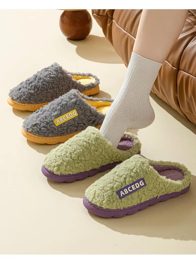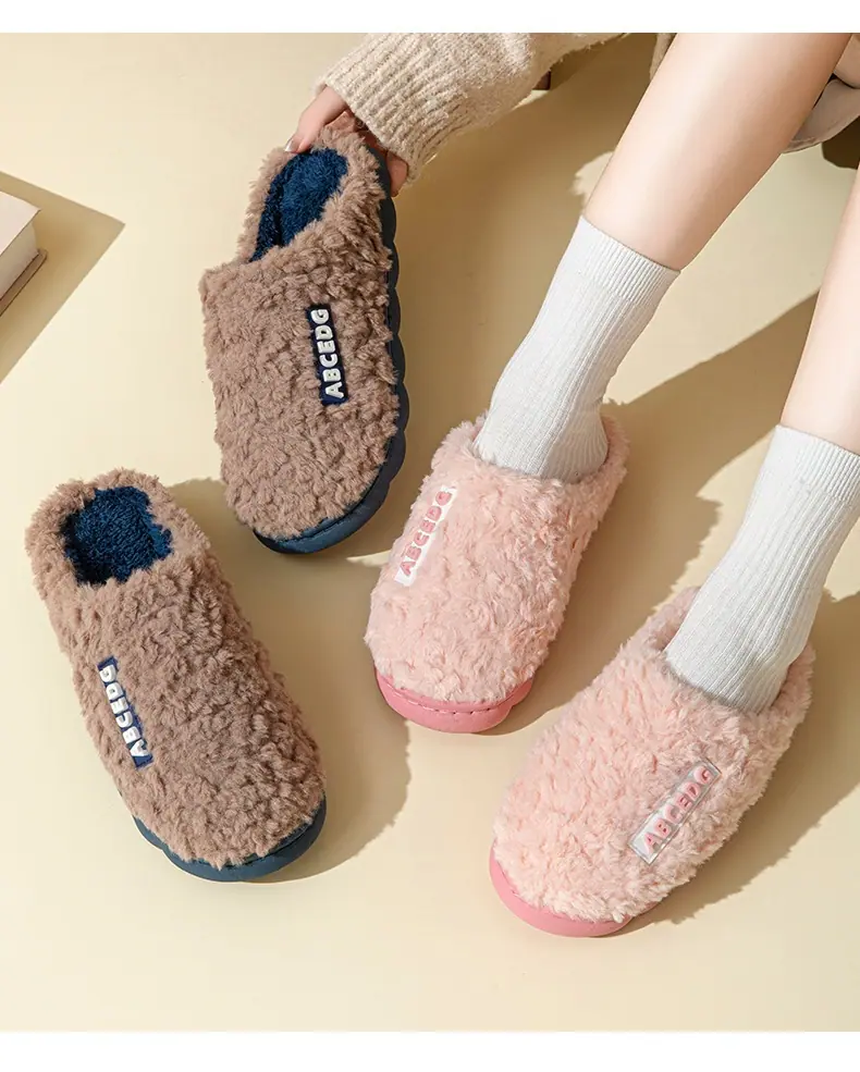 2025 Otoño/Invierno Nuevas Pantuflas de Algodón de Dibujos Animados para Mujer Pantuflas Peludas de Suela Gruesa para Hombre Pareja Hogar Antideslizantes Cálidas para Interior Doméstico