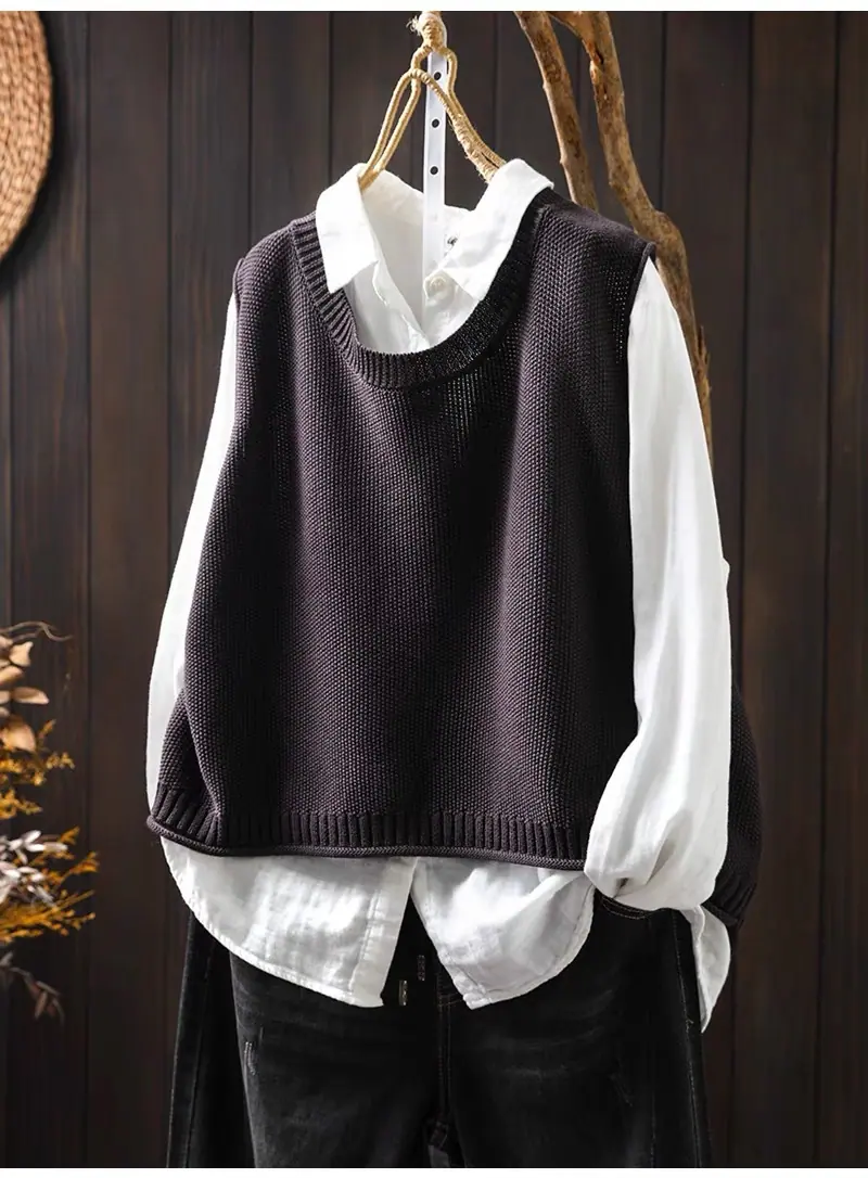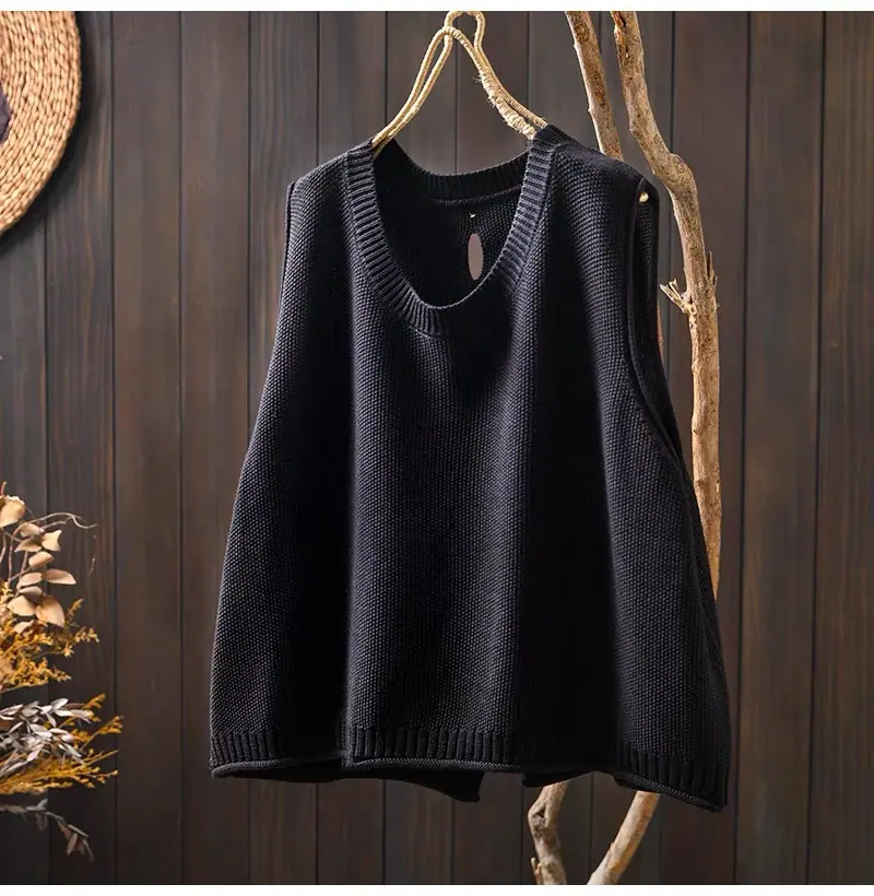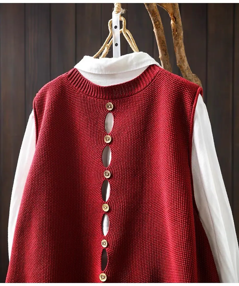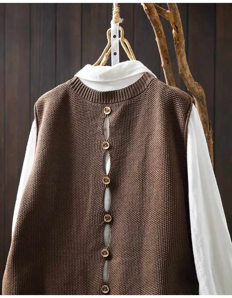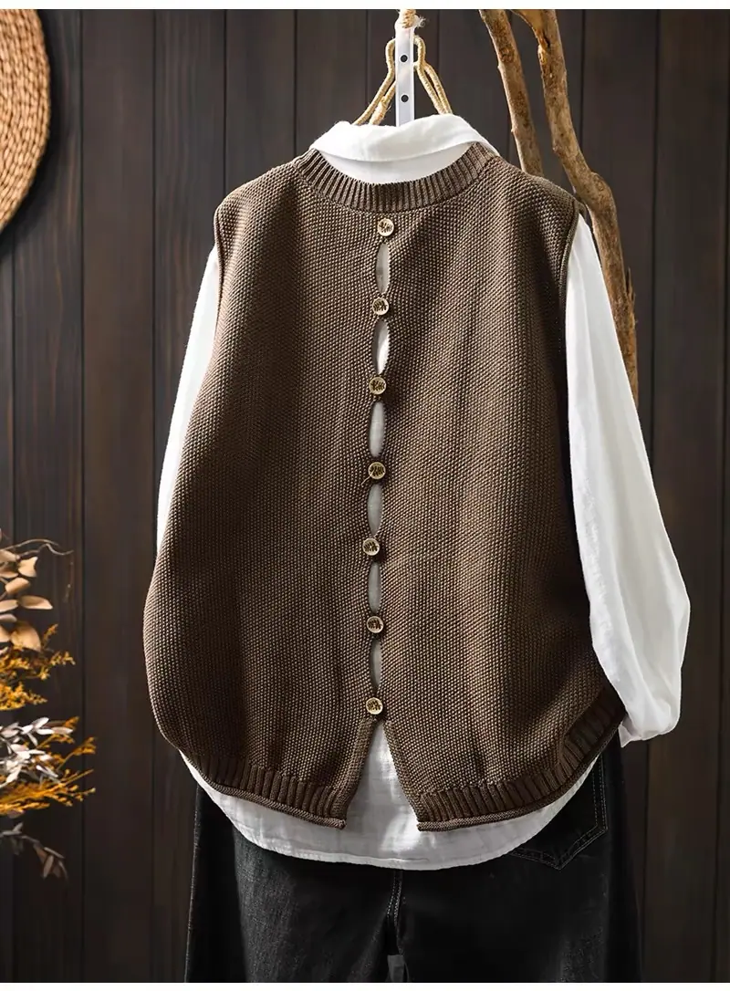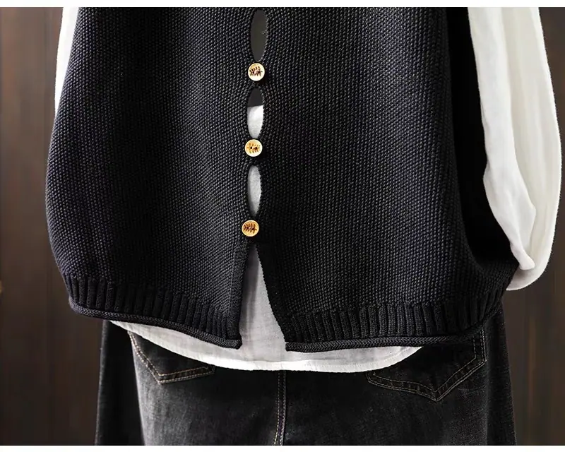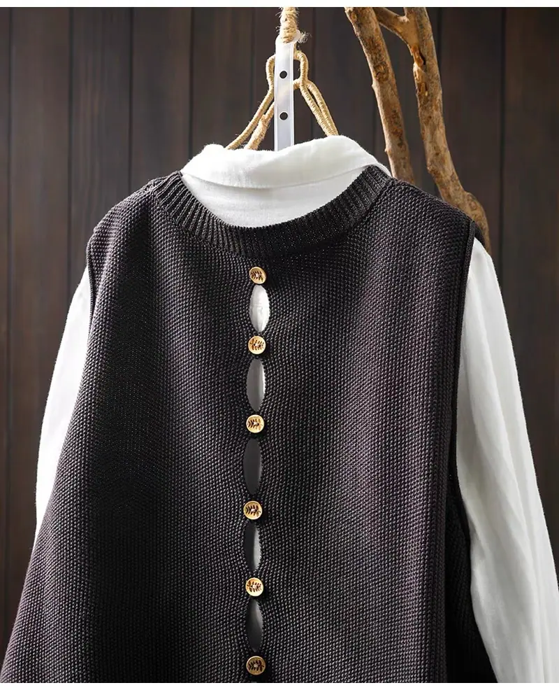 Primavera y Otoño 2024 Nuevo Chaleco de Punto de Algodón con Botones en la Espalda sin Mangas para Mujer Holgado Versátil para Capas Cárdigan sin Mangas