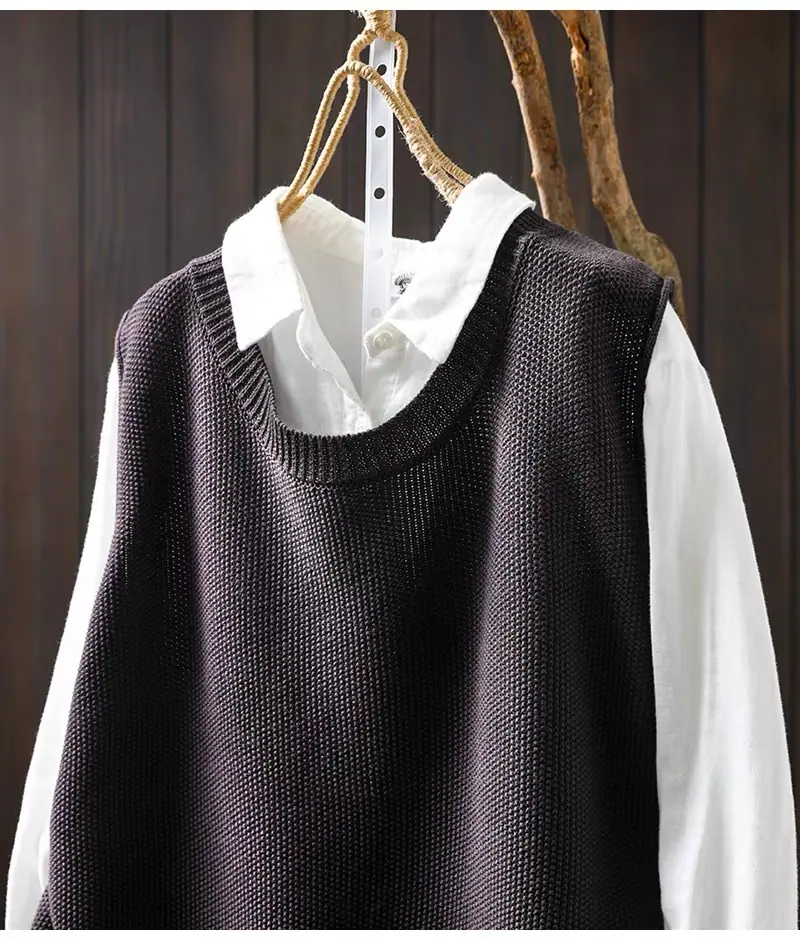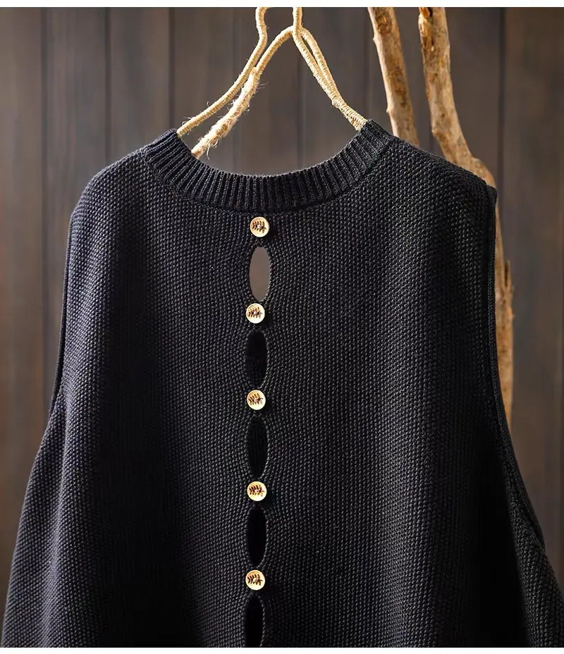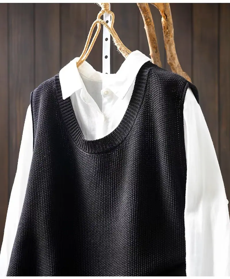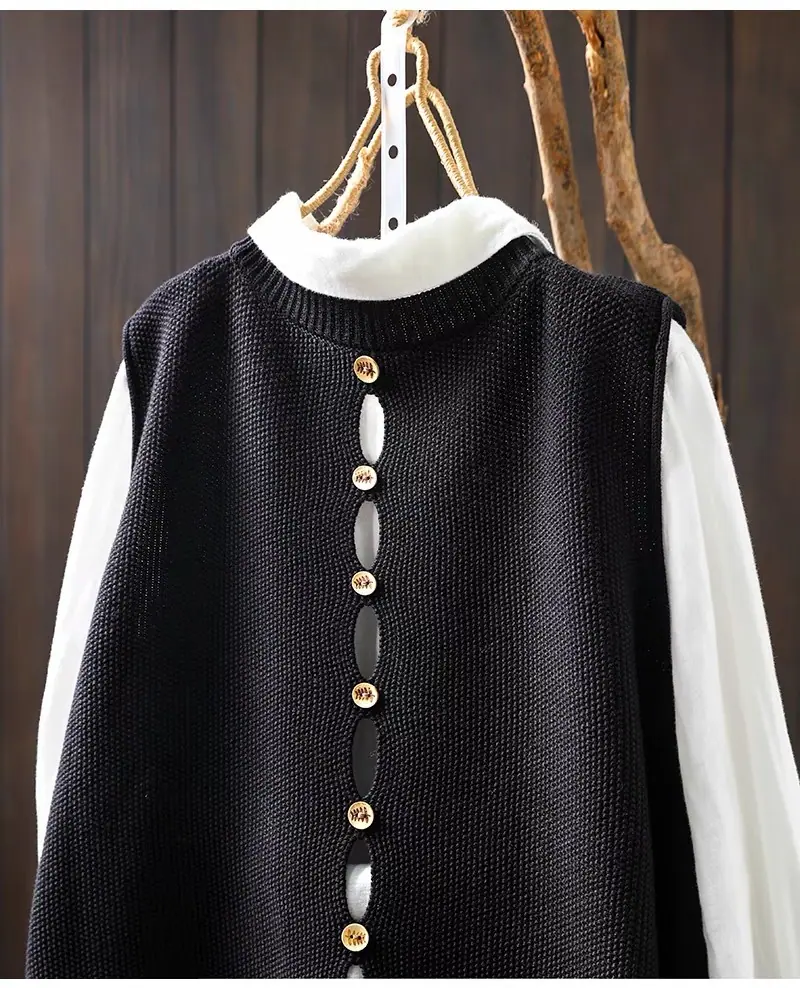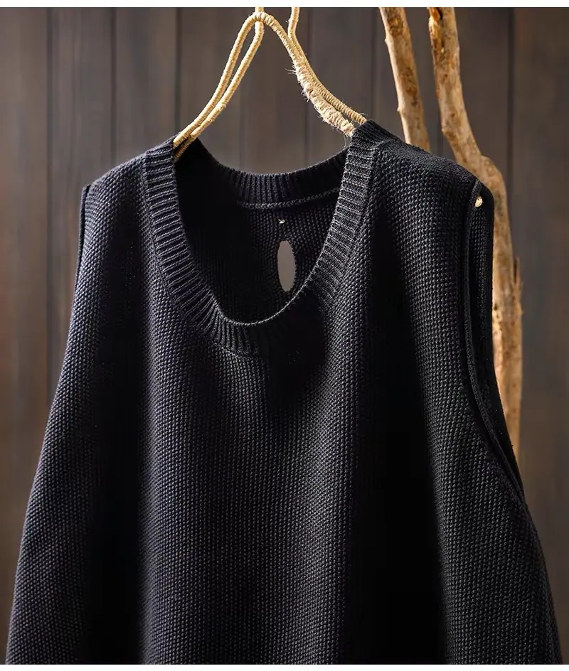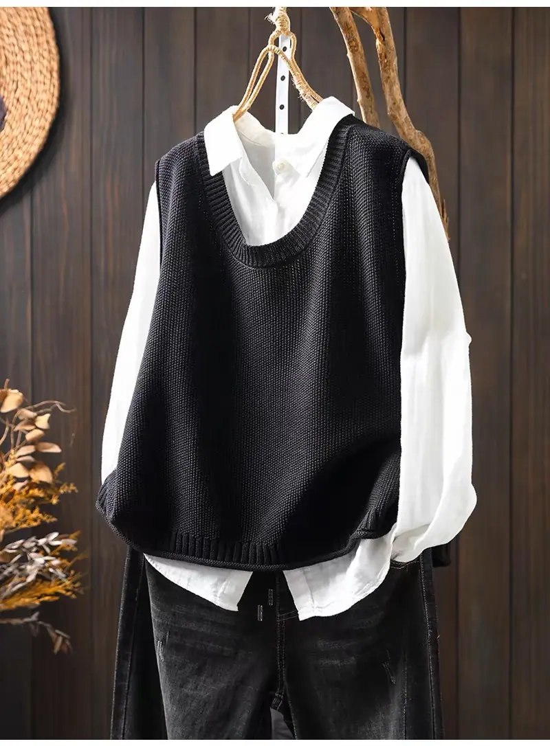 Primavera y Otoño 2024 Nuevo Chaleco de Punto de Algodón con Botones en la Espalda sin Mangas para Mujer Holgado Versátil para Capas Cárdigan sin Mangas