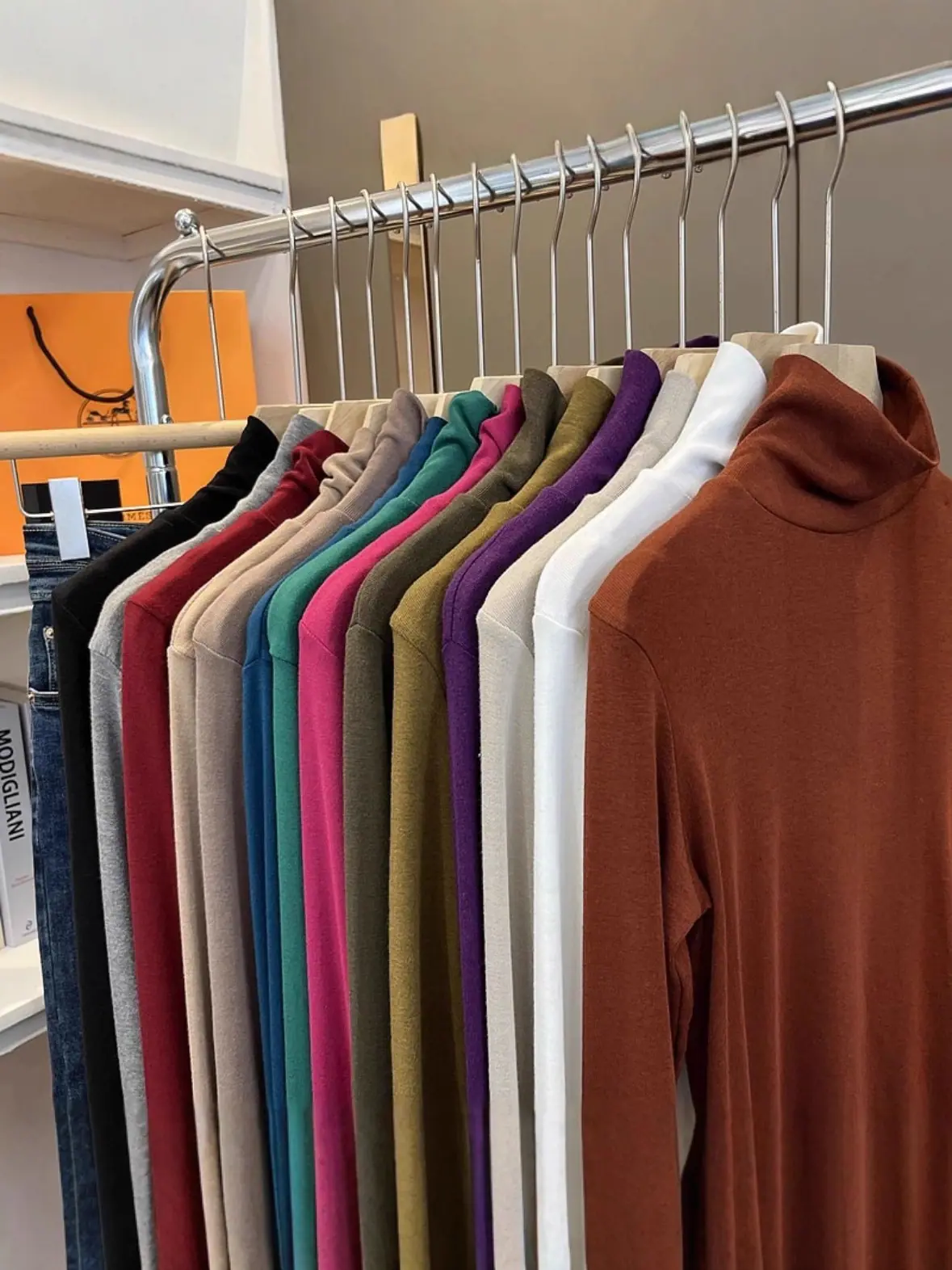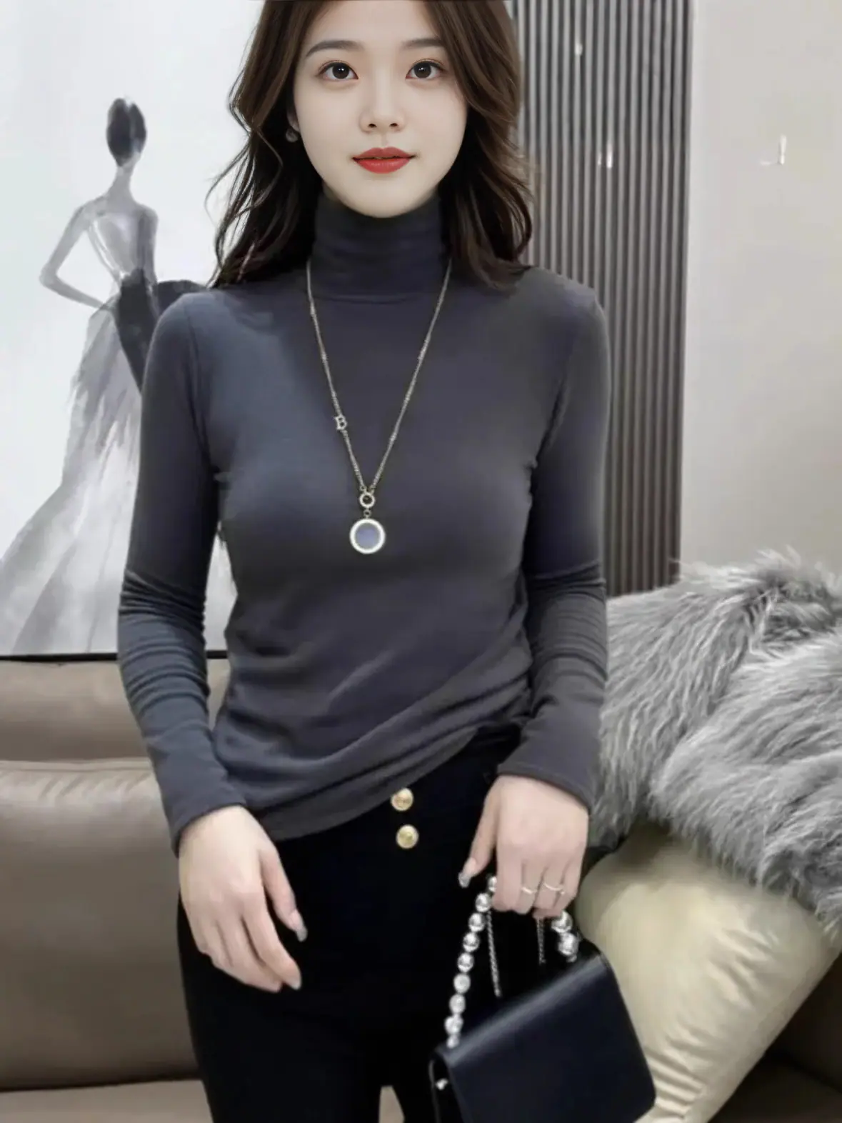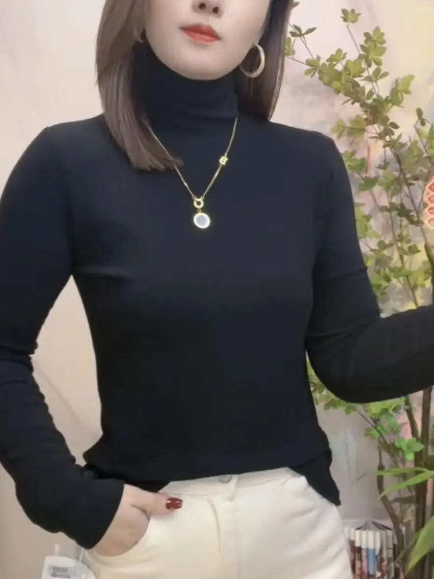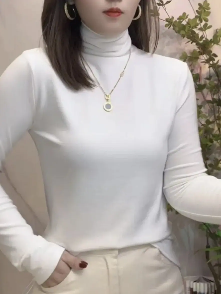 Otoño/Invierno 2025 Cachemira Cuello Alto Base Moda Mujer Cuello Alto Apilado Manga Larga Elegante Ajustado Ropa Interior Camiseta Base
