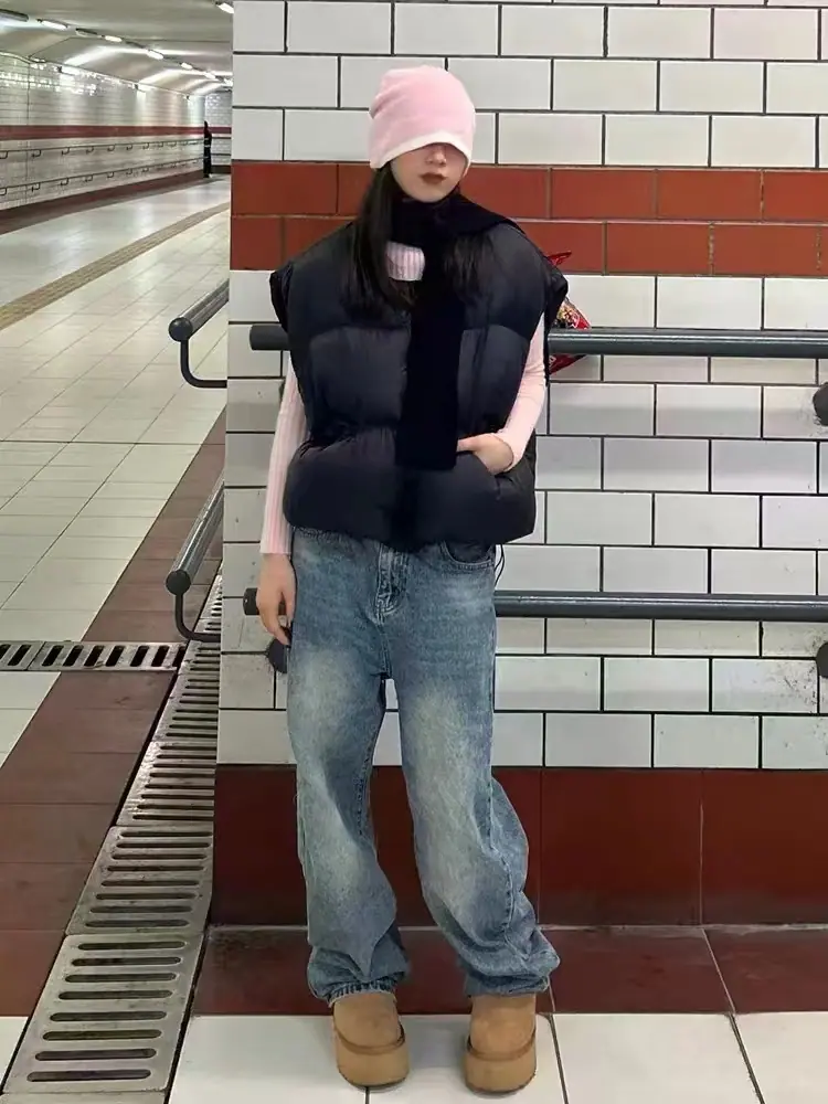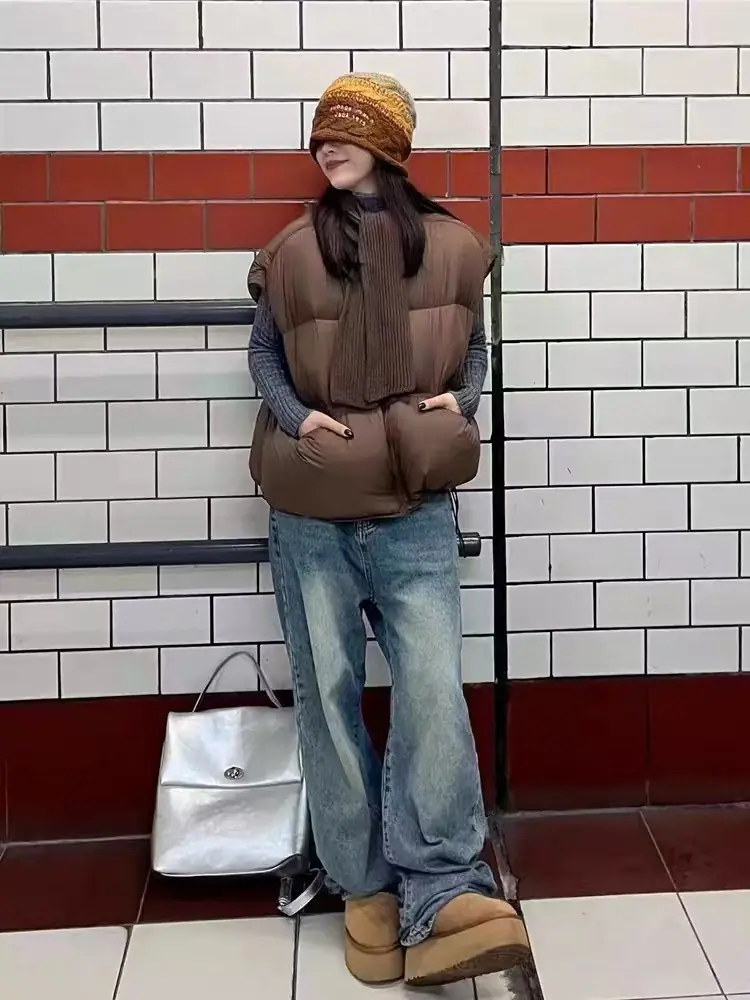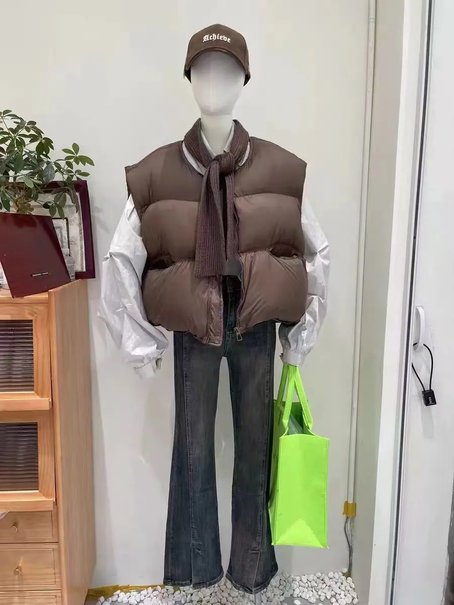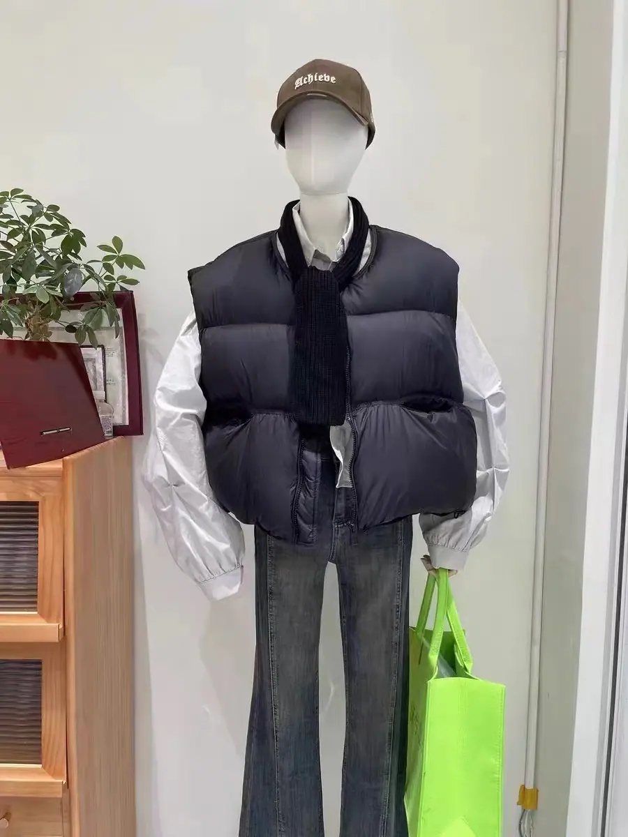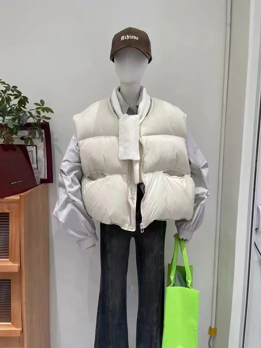2025 Otoño/Invierno Nuevo Chaleco de Plumas Mujer Silueta Holgada Acolchado Sin Mangas Cálido Ropa Exterior 90 Plumón de Pato Blanco Moderno