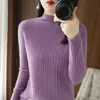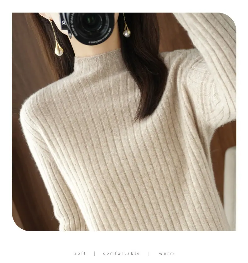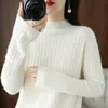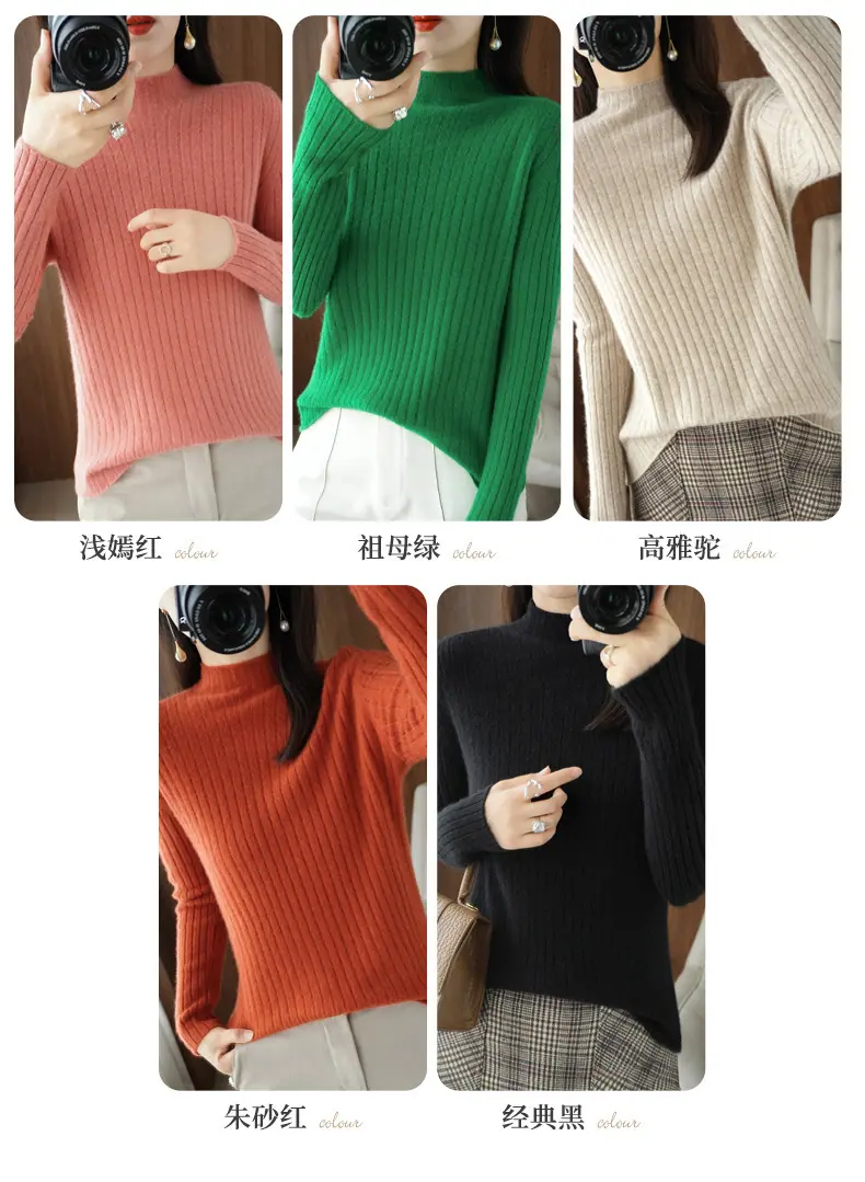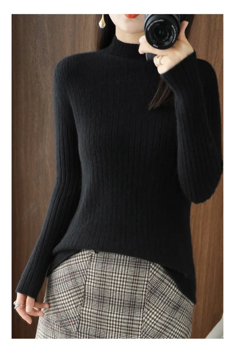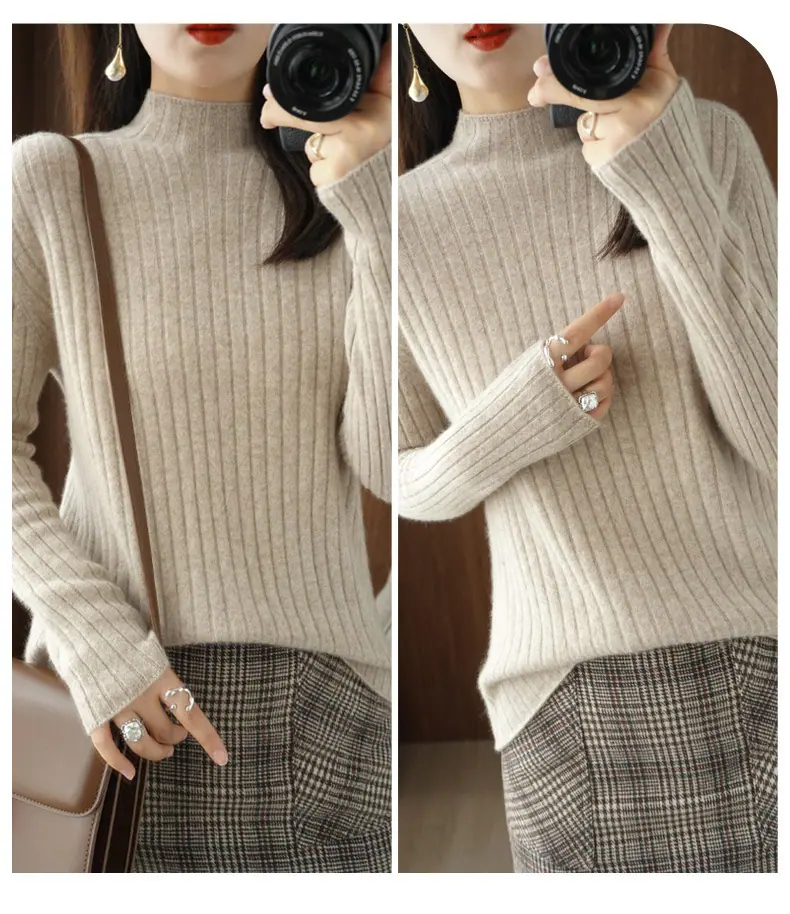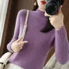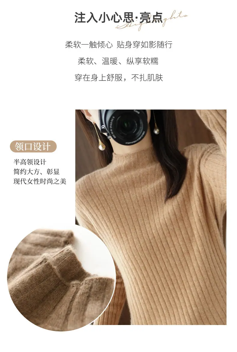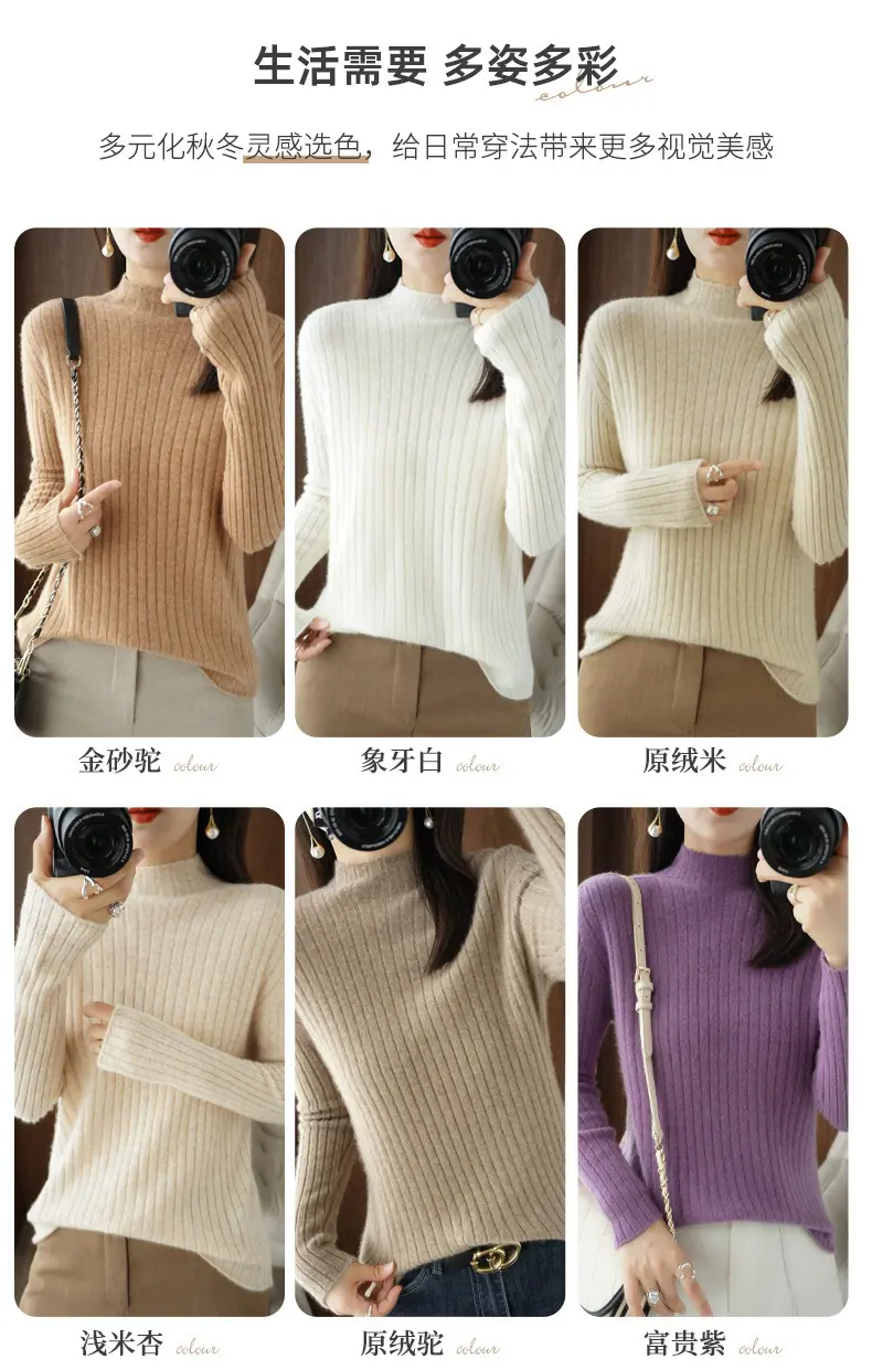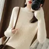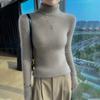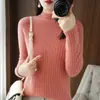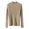 Transfronterizo 2025 otoño e invierno nuevo cuello semi-alto acanalado camisa básica suéter básico para mujer ajuste ceñido tejido de hilo core-spun invierno
