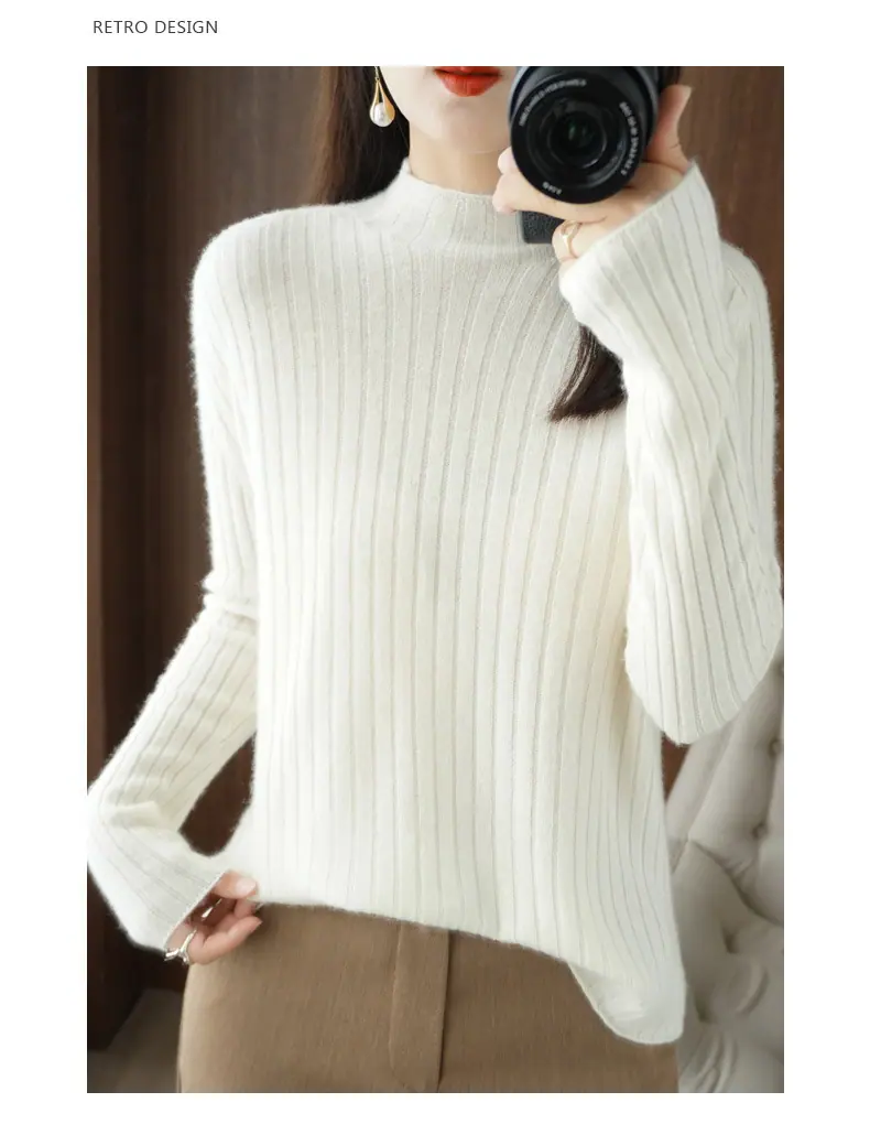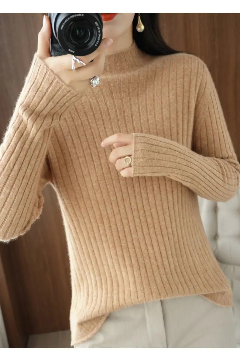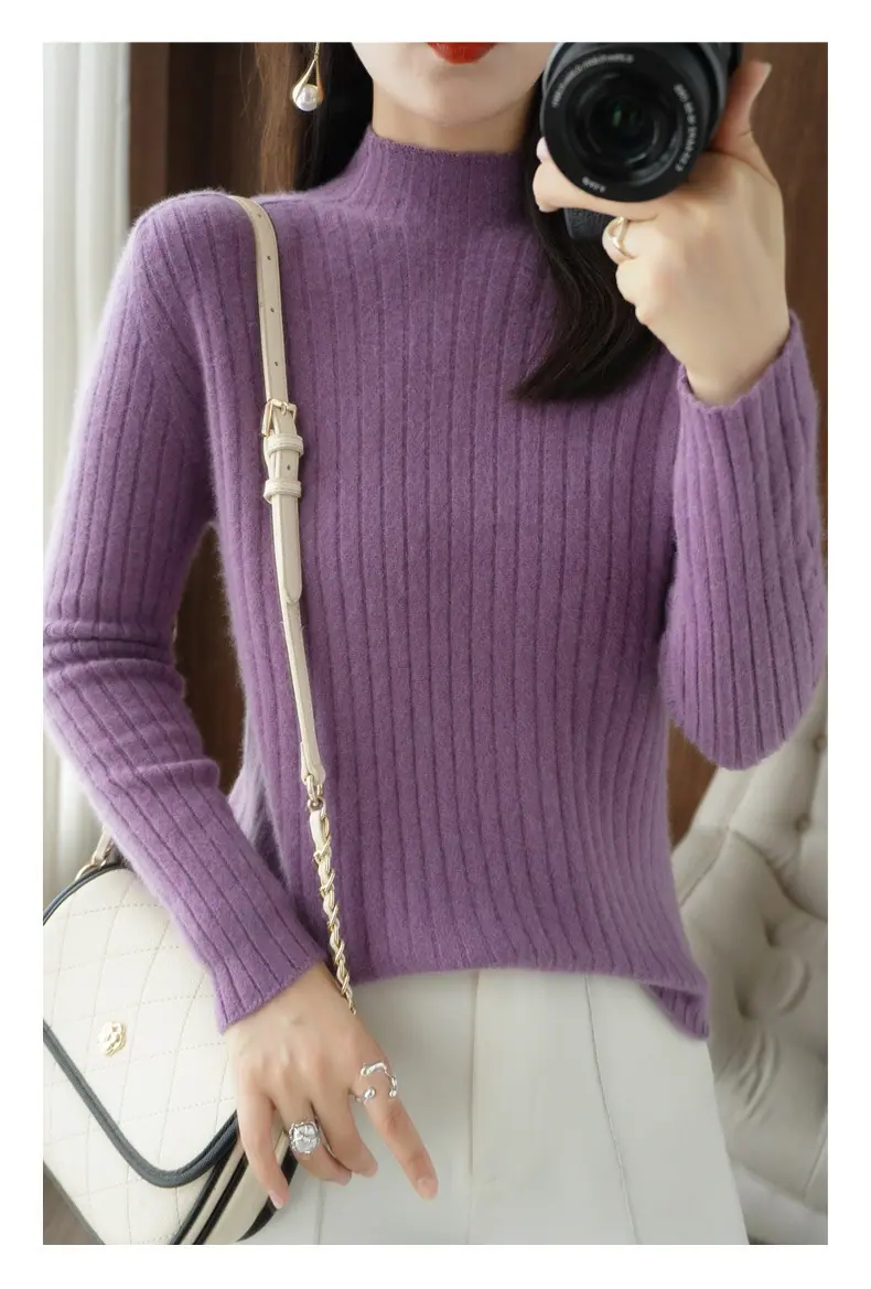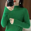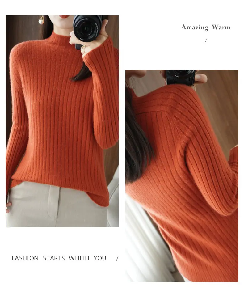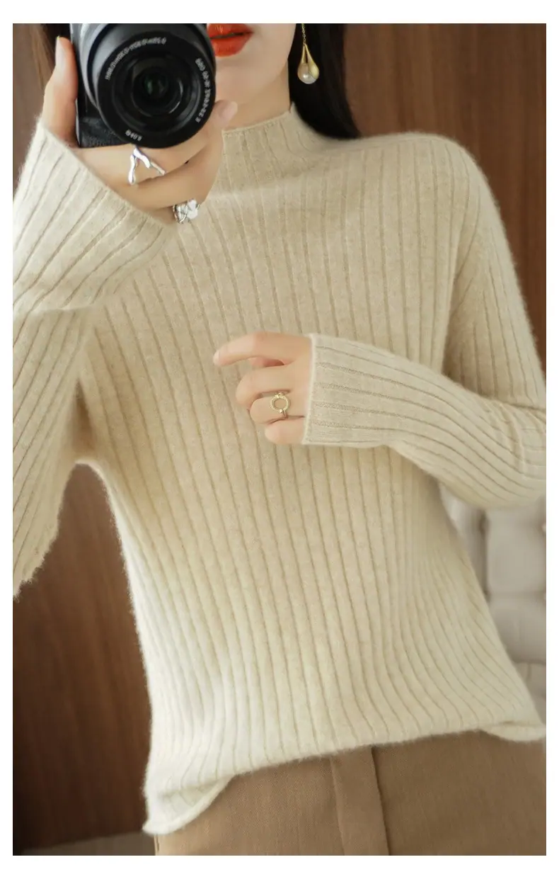 Transfronterizo 2025 otoño e invierno nuevo cuello semi-alto acanalado camisa básica suéter básico para mujer ajuste ceñido tejido de hilo core-spun invierno
