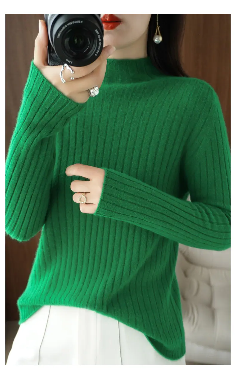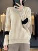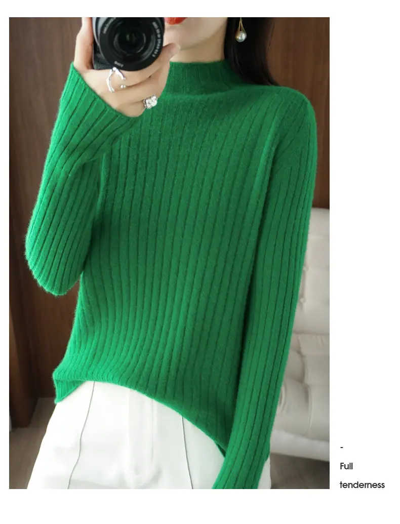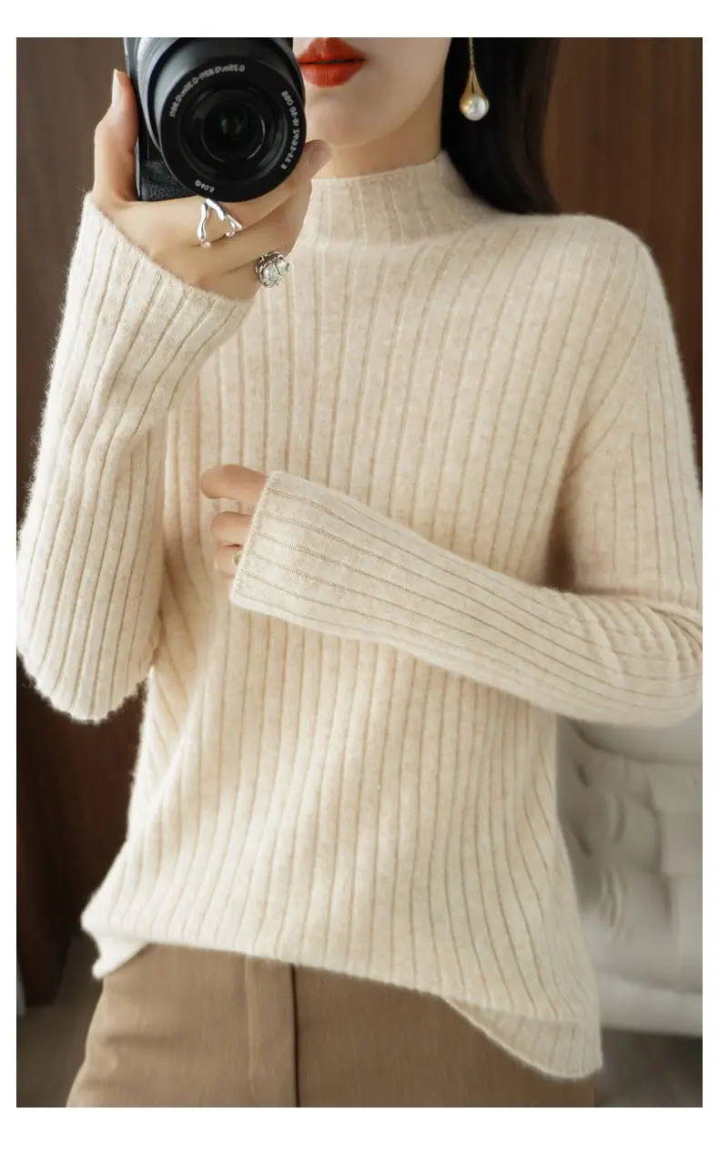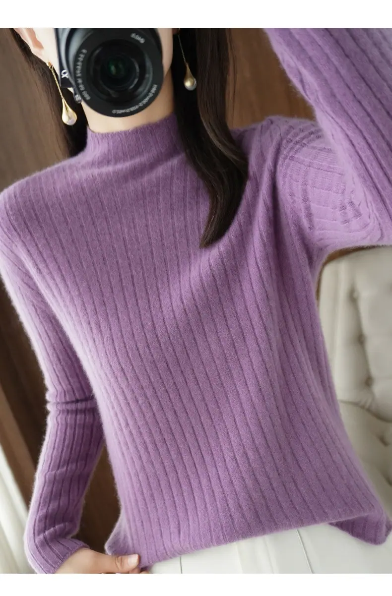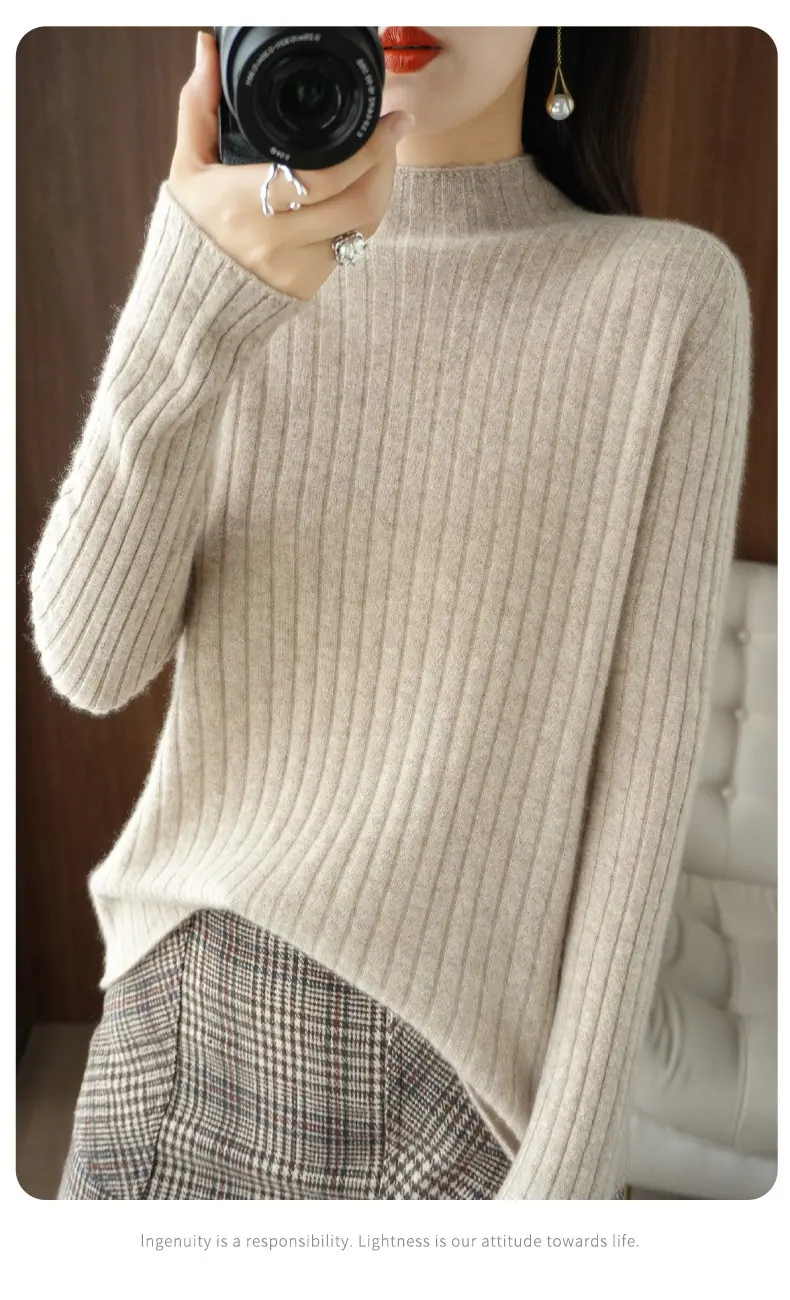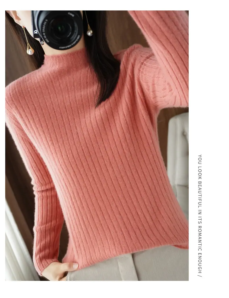 Transfronterizo 2025 otoño e invierno nuevo cuello semi-alto acanalado camisa básica suéter básico para mujer ajuste ceñido tejido de hilo core-spun invierno