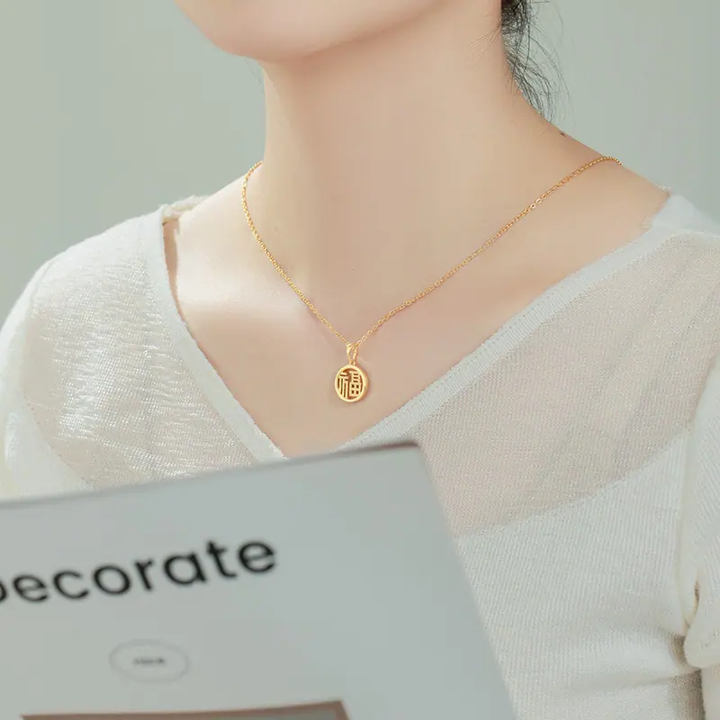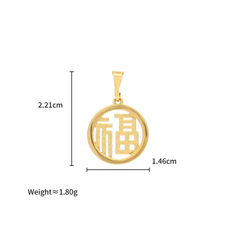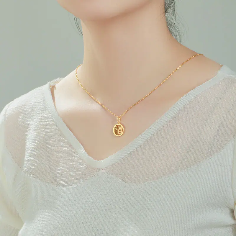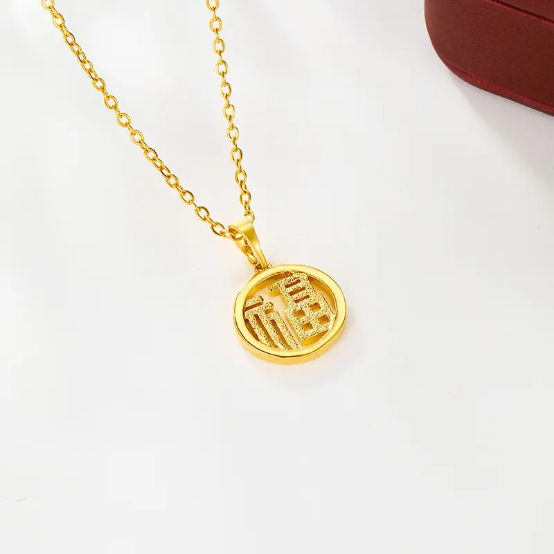 Xuping Nueva Moda Aleación Galvanizado Oro 24k Carácter Fu Etiqueta Redonda Collar Colgante Lujo Ligero Simple Exquisito Collar