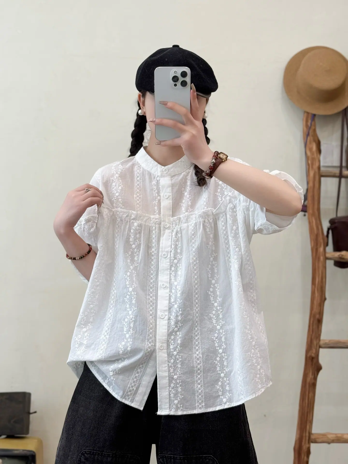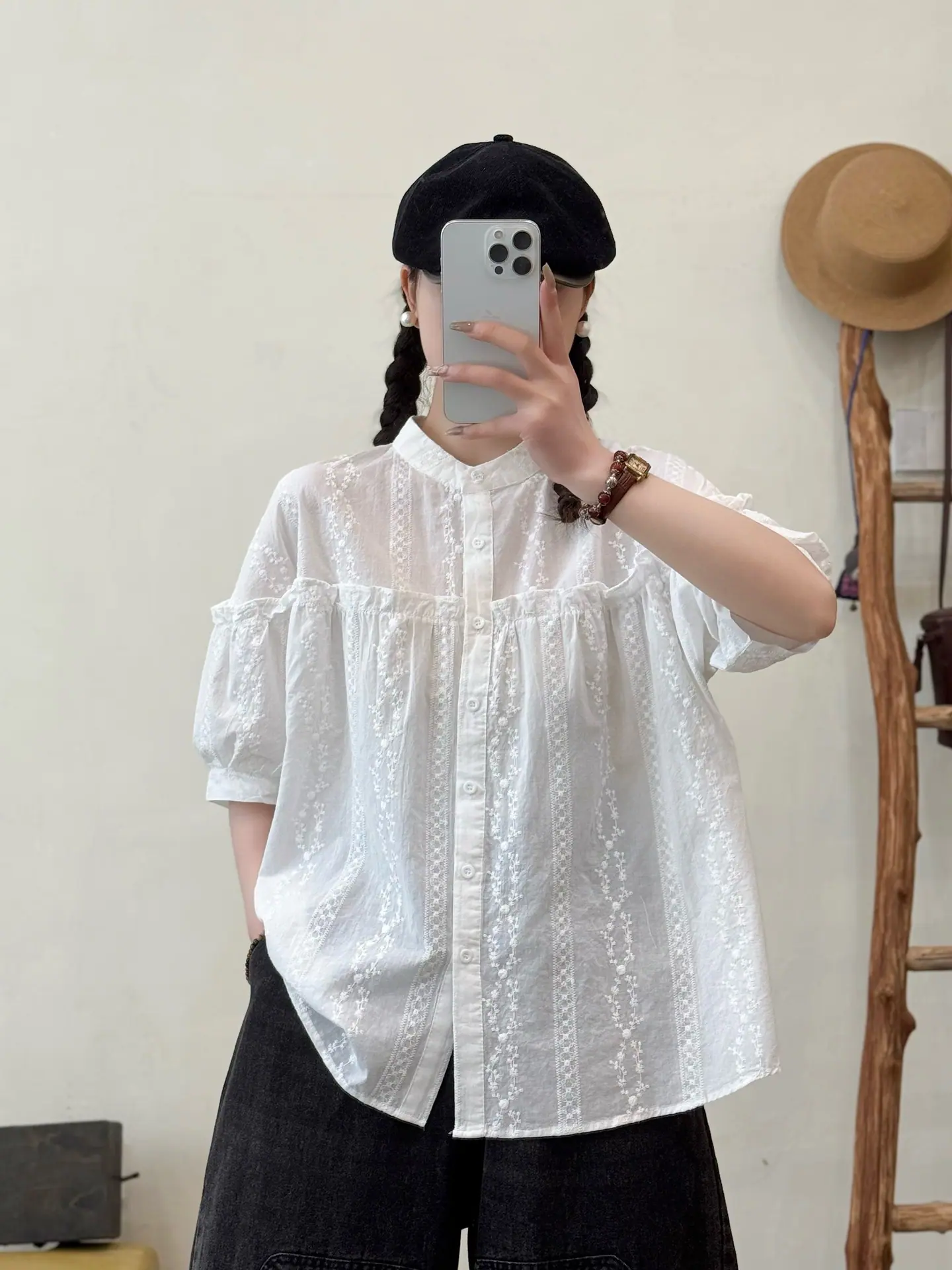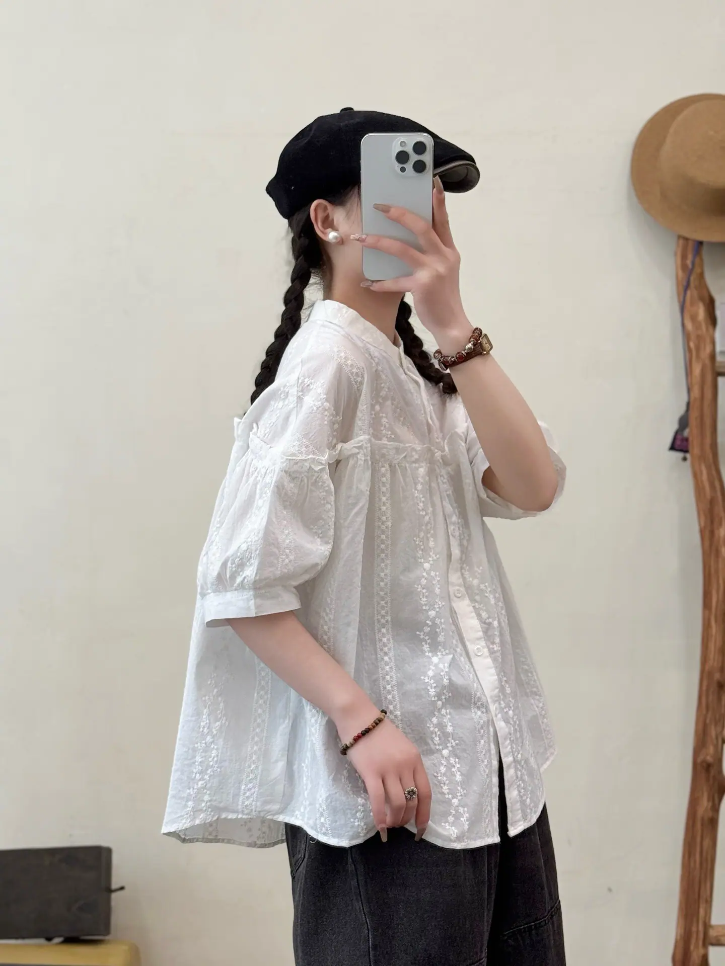 Camisa Retro Francesa de Manga Abullonada para Mujer, Nuevo Diseño de Verano, Top Nicho y Chic, Dulce Camisa Baby Doll que Reduce la Edad