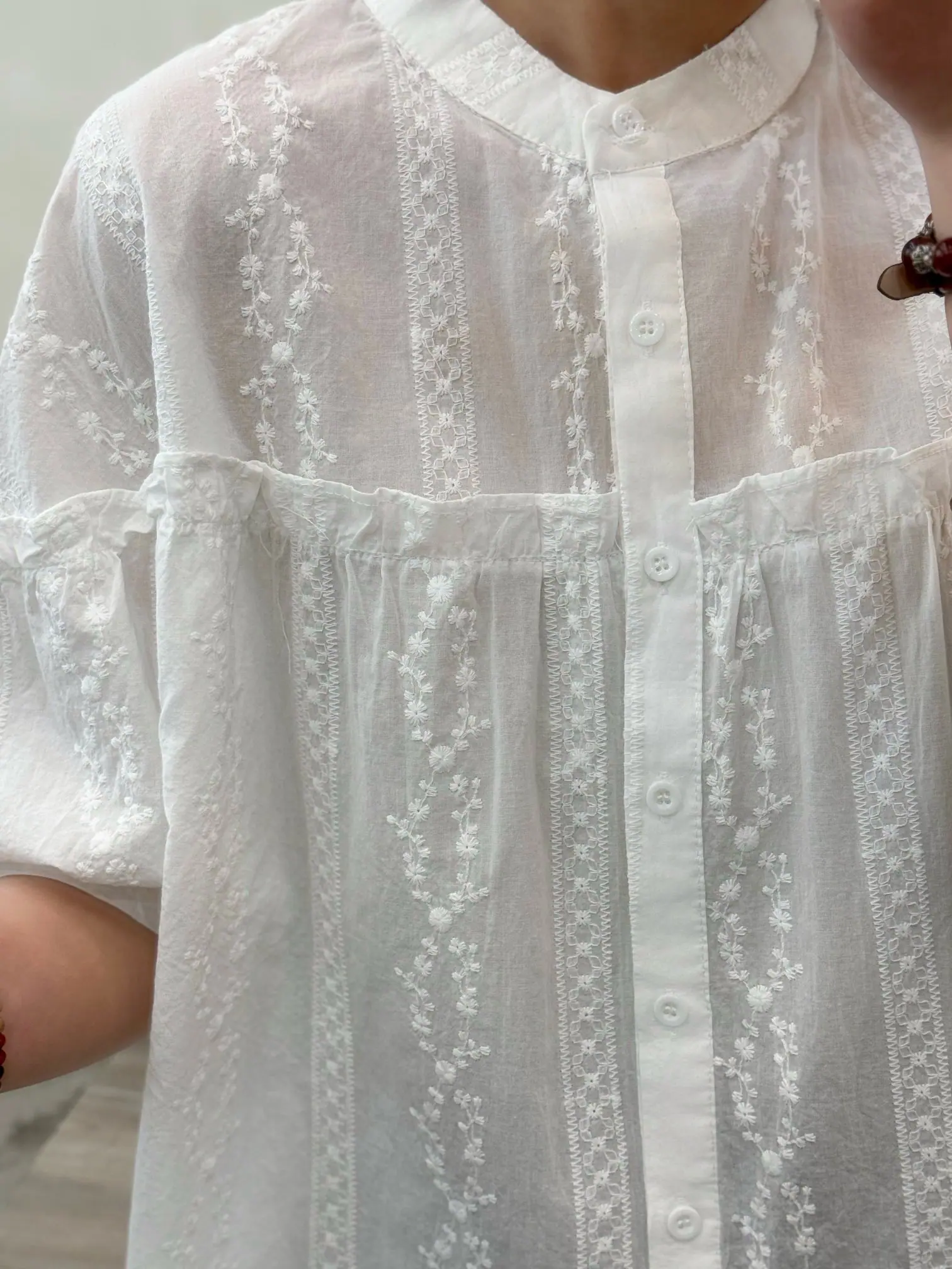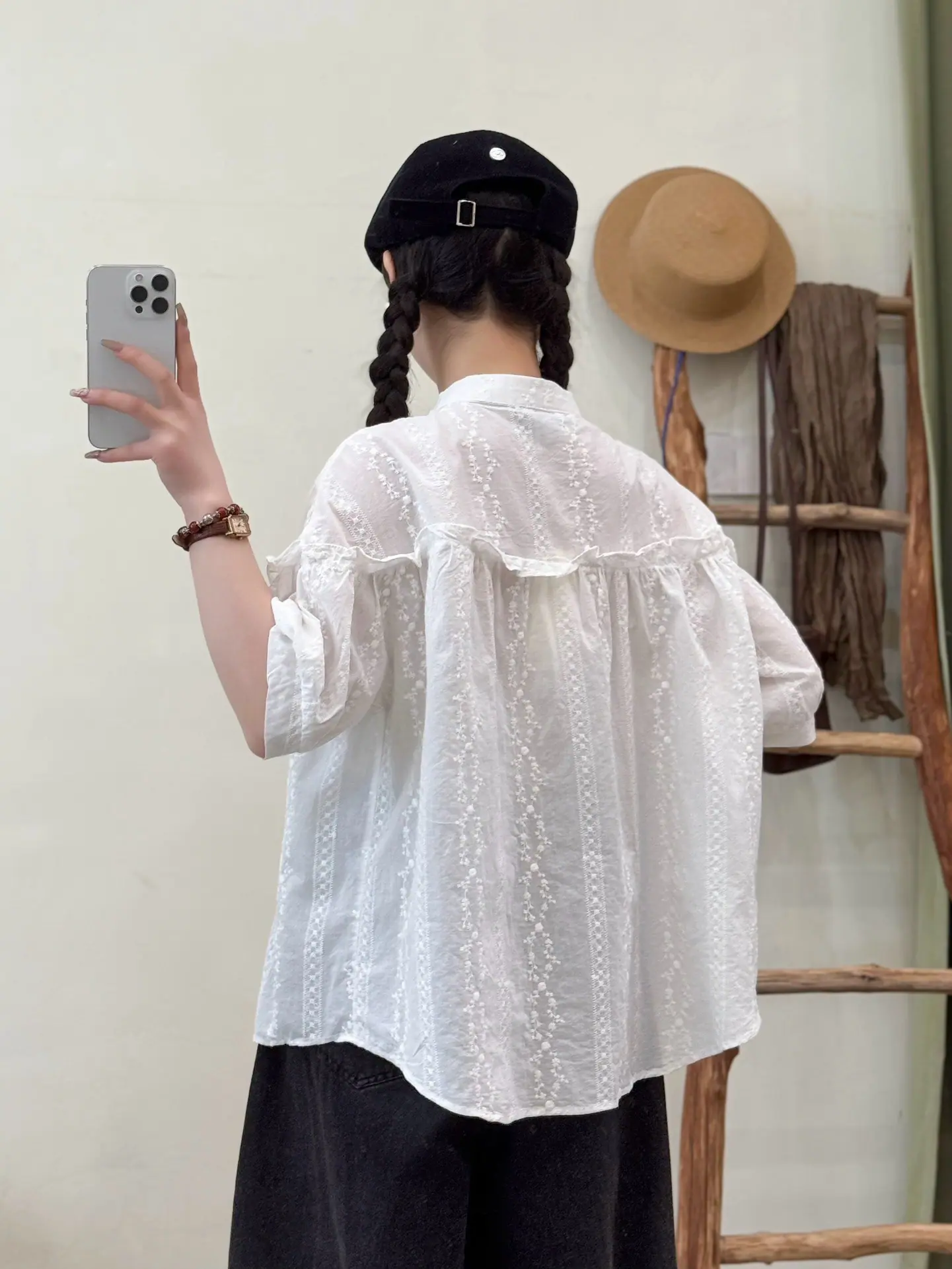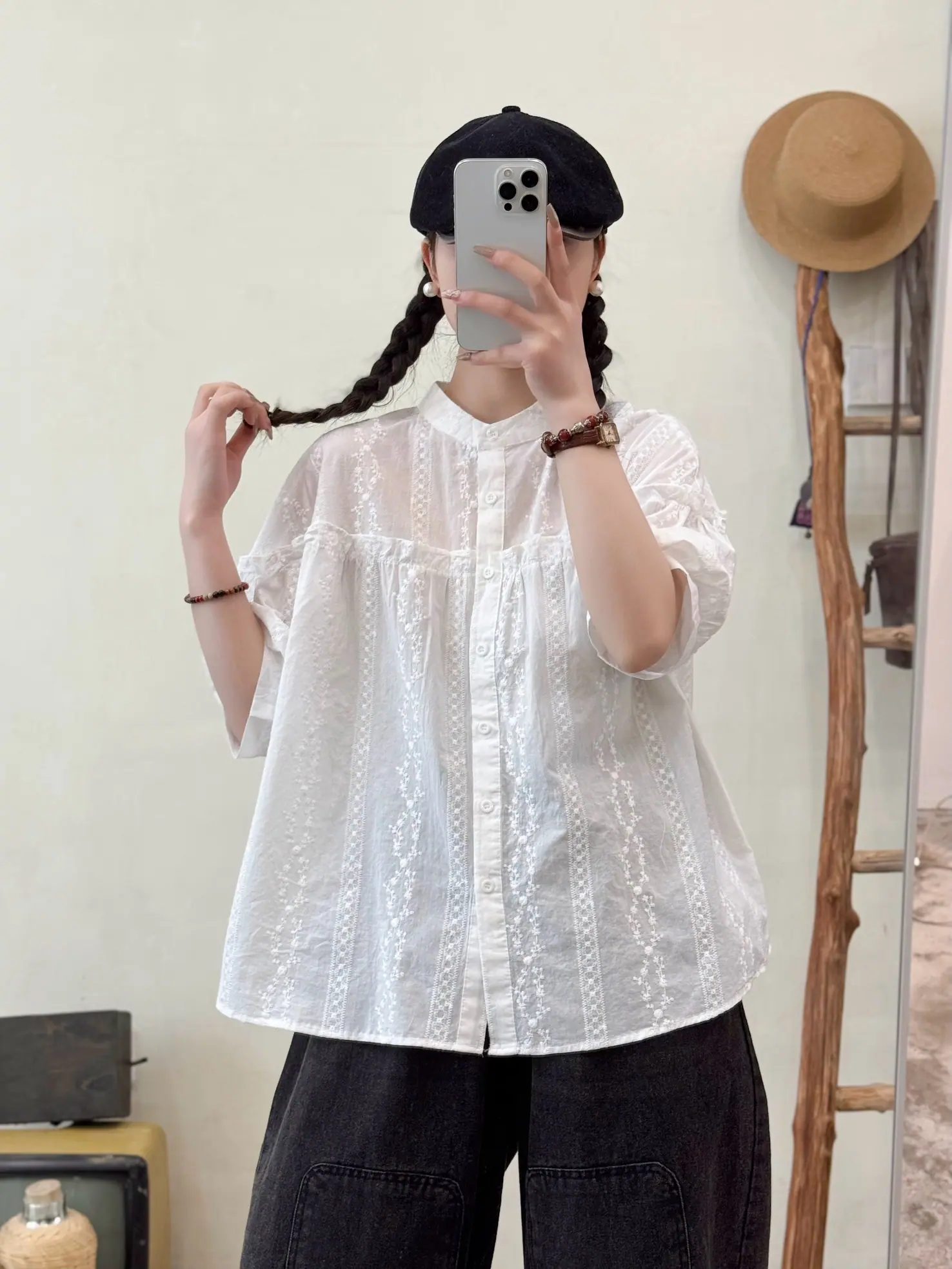 Camisa Retro Francesa de Manga Abullonada para Mujer, Nuevo Diseño de Verano, Top Nicho y Chic, Dulce Camisa Baby Doll que Reduce la Edad