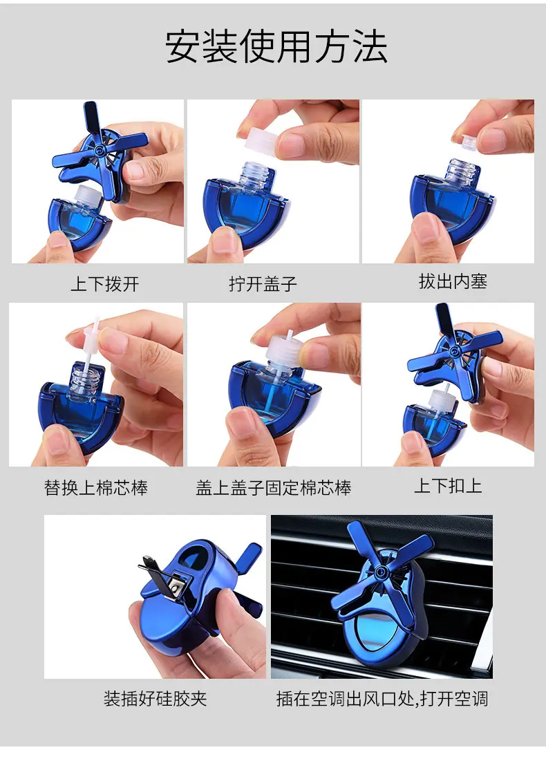 Una generación de perfume para coche aromaterapia para coche salida de aire acondicionado decoración de ventilador puerto fragancia para coche fragancia ligera duradera