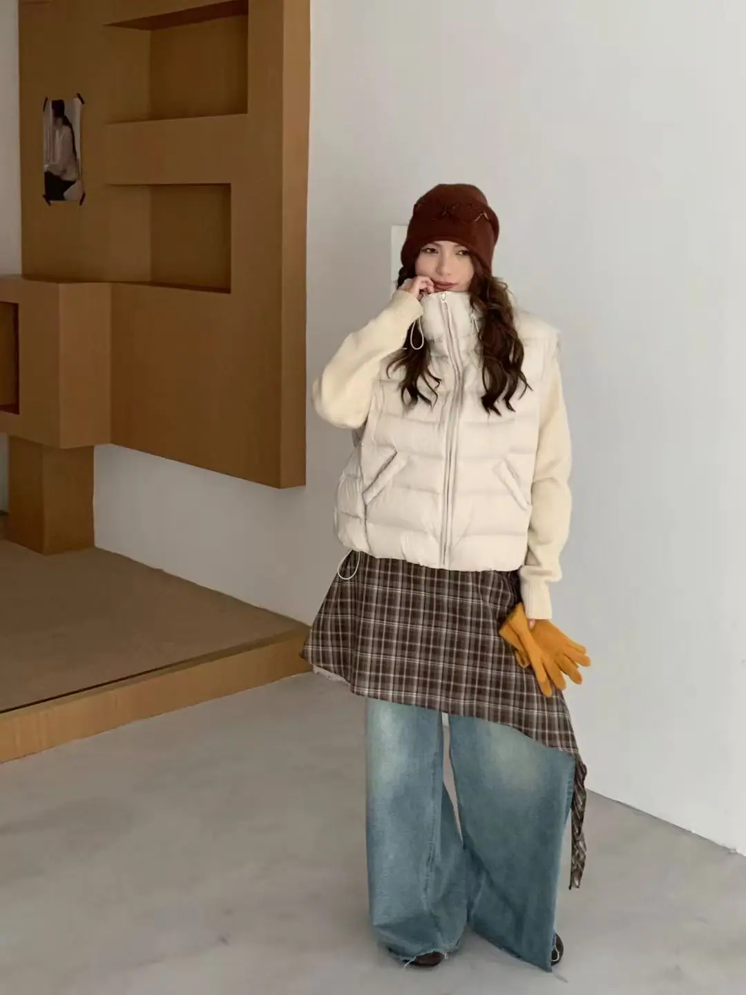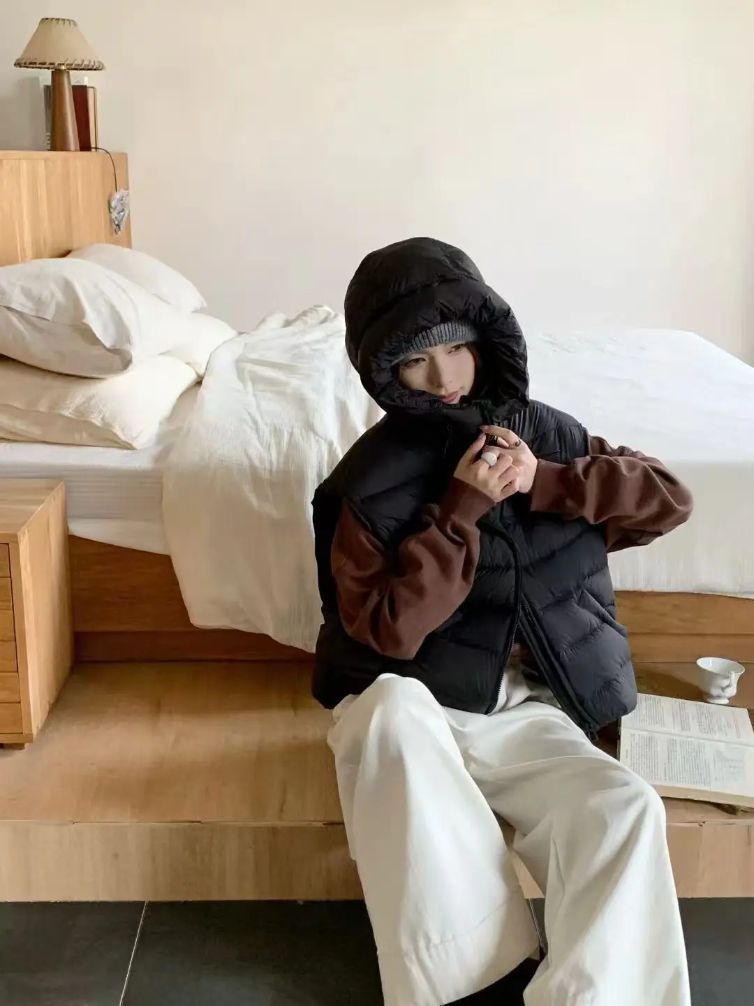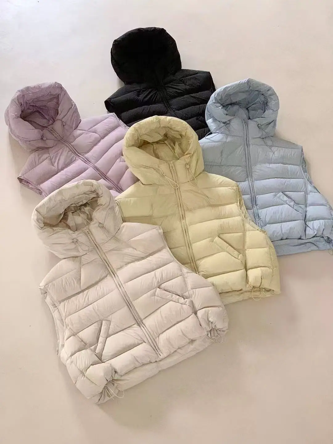 2025 Otoño/Invierno Nueva Moda Suelto Adelgazante Corto Cuello Alto Acanalado Chaleco de Plumón 90 Plumón de Pato Blanco Ropa Exterior sin Mangas