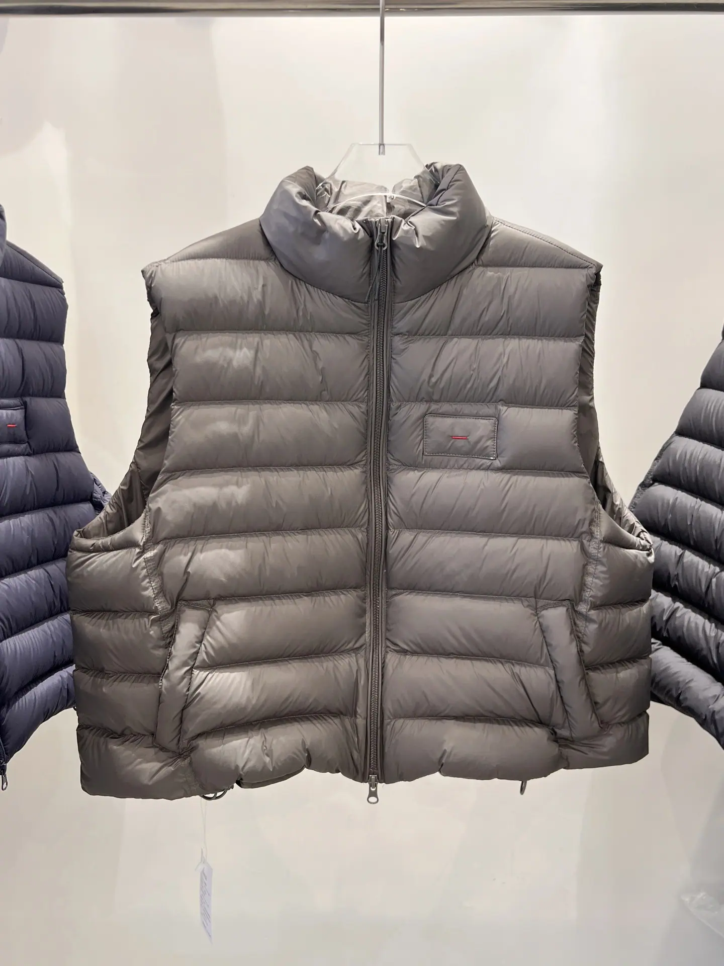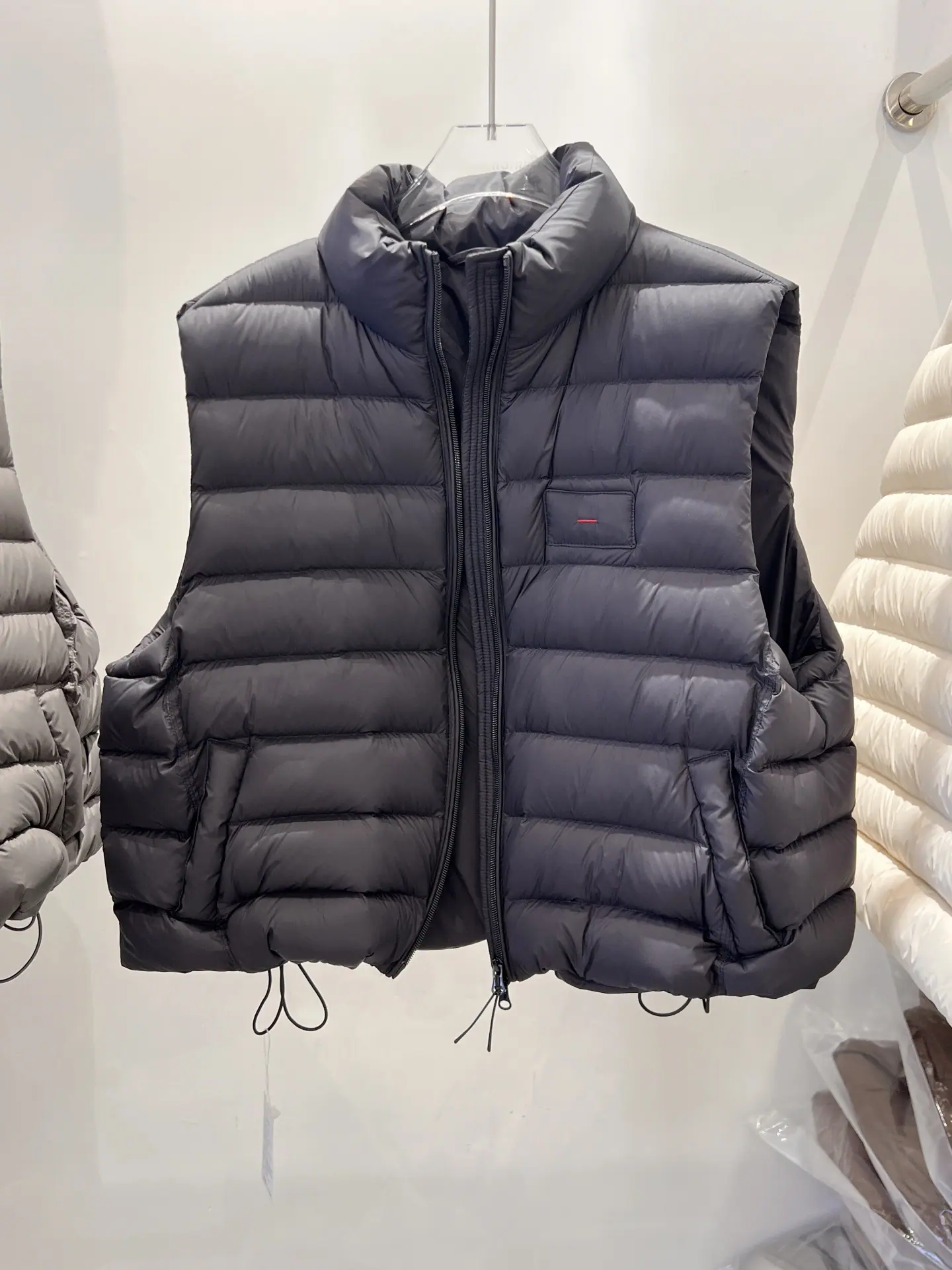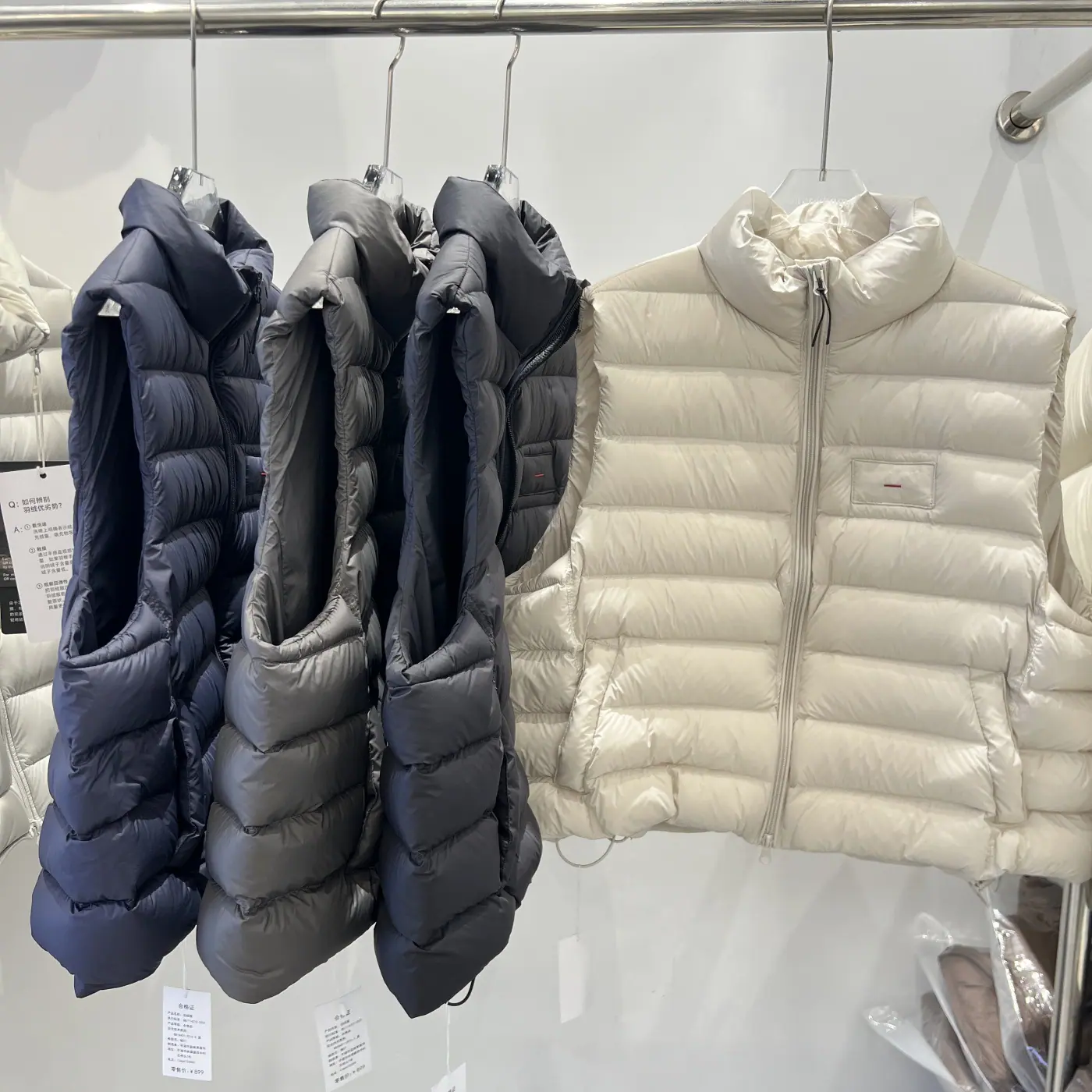 Otoño/Invierno 2025 Nuevo Estilo Acanalado 90% Plumón Chaleco para Mujer Cuello Alto Casual Sin Mangas Camiseta sin Mangas Exterior Corto