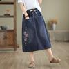 Vestido de Otoño Estilo Fresco Dibujo Animado Sobre la Rodilla Flor Bordada Falda de Mezclilla Lavada Falda Línea A de Cintura Holgada para Mujer