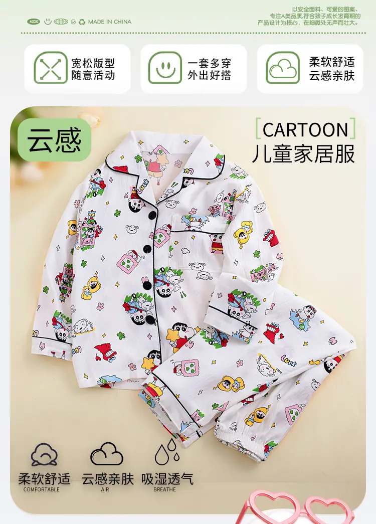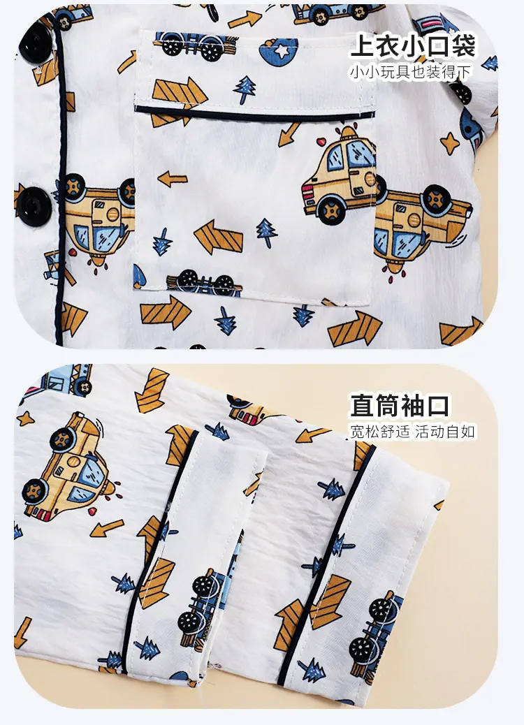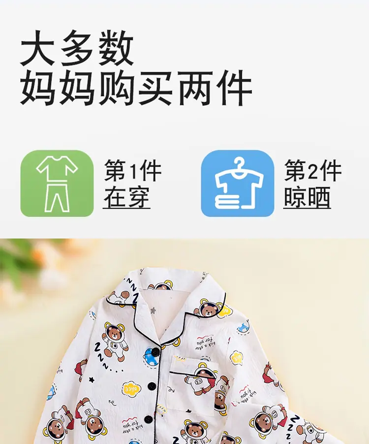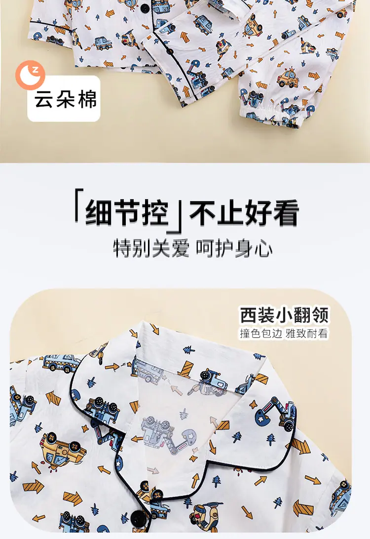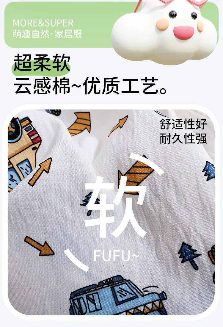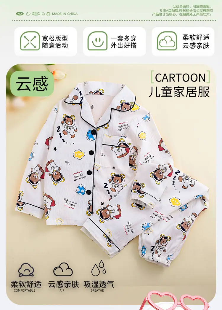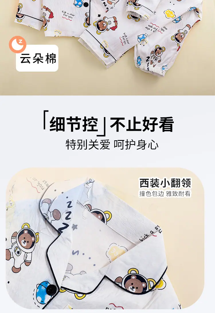 Pijamas para niños, Trajes de algodón de nube de verano de manga larga para niños, Ropa de casa fina para bebés y niños para primavera y otoño con aire acondicionado