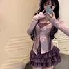Chica Caliente Púrpura Primavera y Verano Dos Piezas Dulce y Picante Nuevo Diseño Tejido Cárdigan Adelgazante Media Falda Falda Top Traje para Mujer