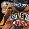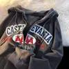 Suéter casual con capucha de felpa con cremallera y estampado de letras con efecto bordado 2023, suéter oversize europeo y americano para hombre
