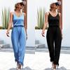 Primavera y Verano 2023 Nueva Estación Independiente eBay Venta Caliente Color Sólido Casual Pie Boca Tirantes Divididos Cuello en V Mono Pantalón
