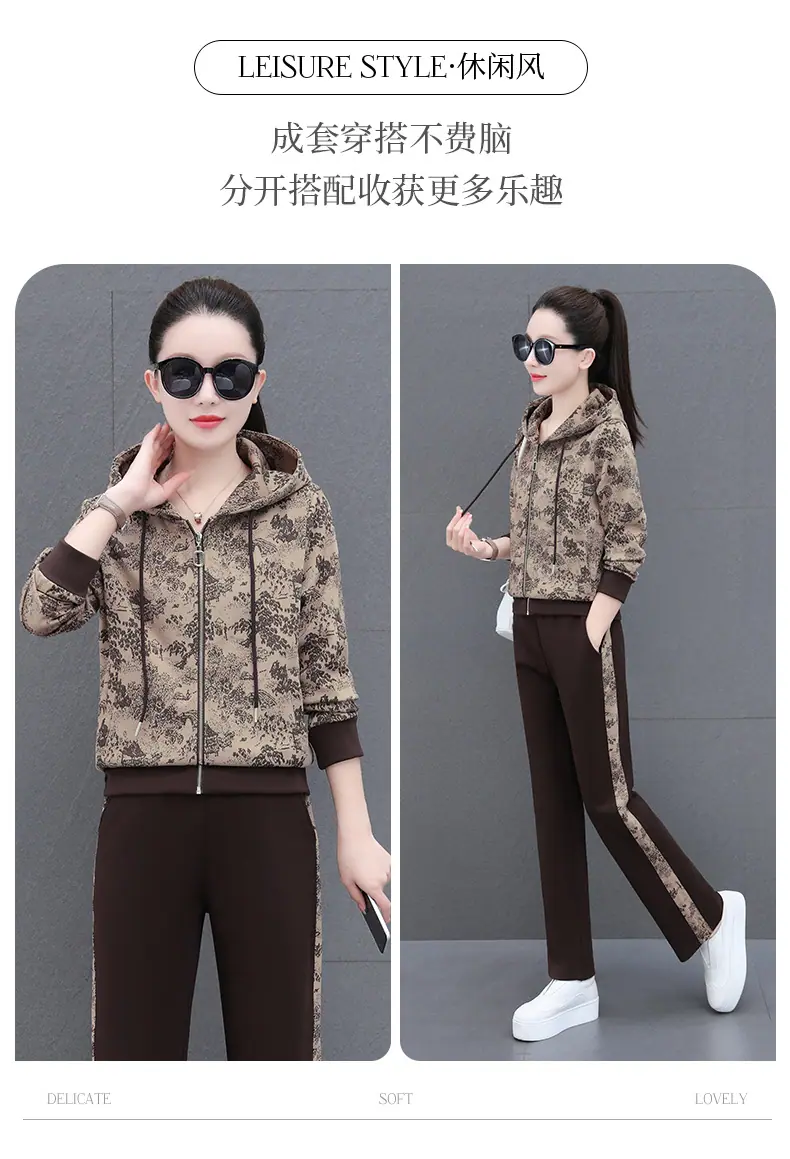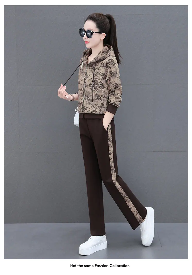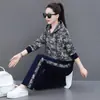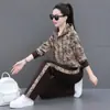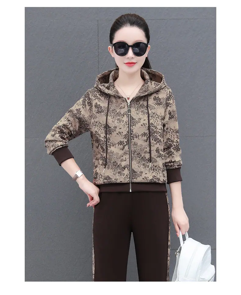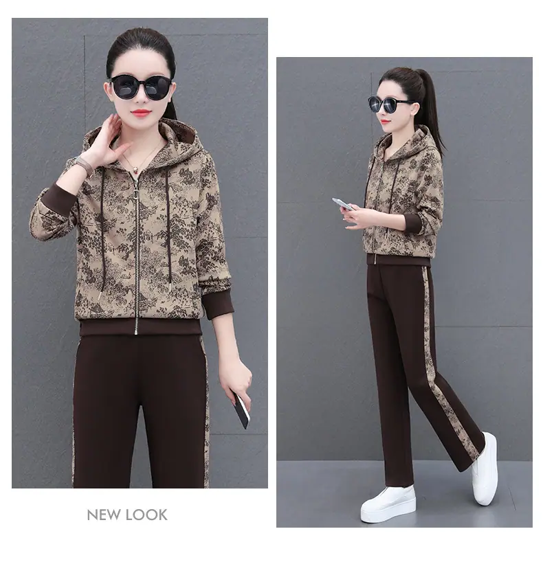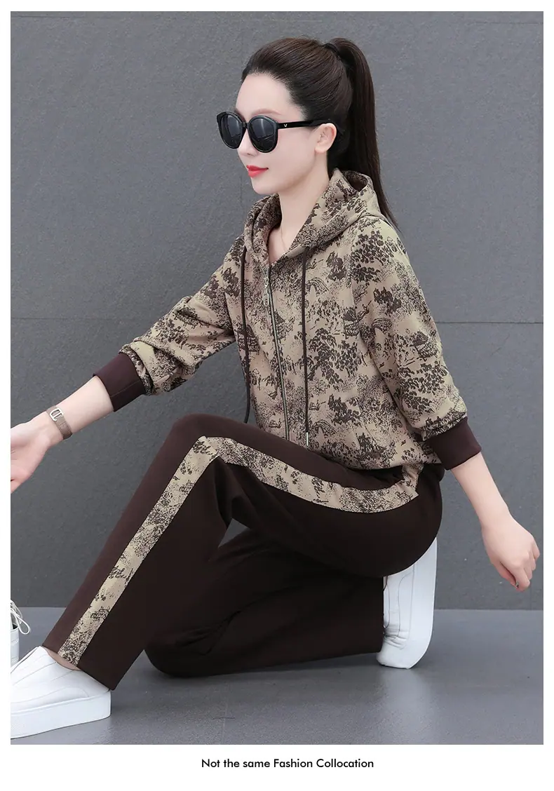 Traje deportivo casual para mujer Primavera y Otoño 2023 moda estampado con capucha manga larga sudadera holgada ropa deportiva conjunto de dos piezas