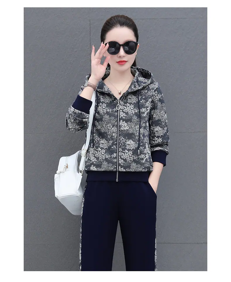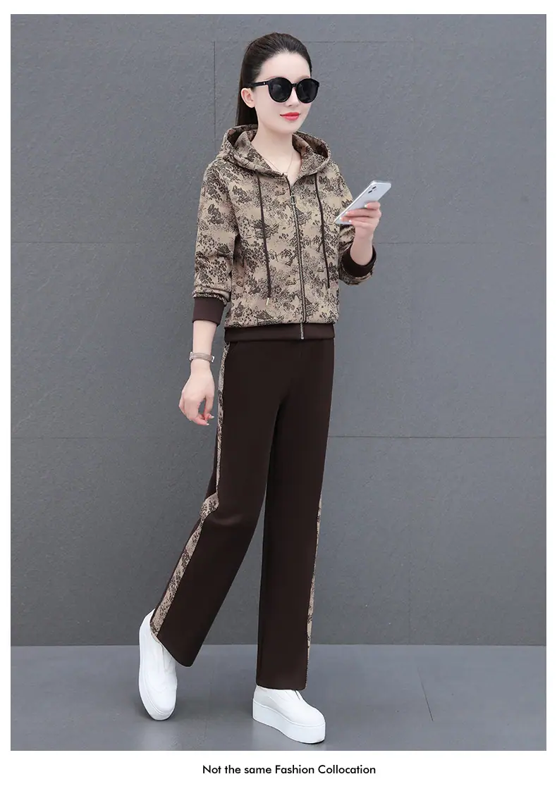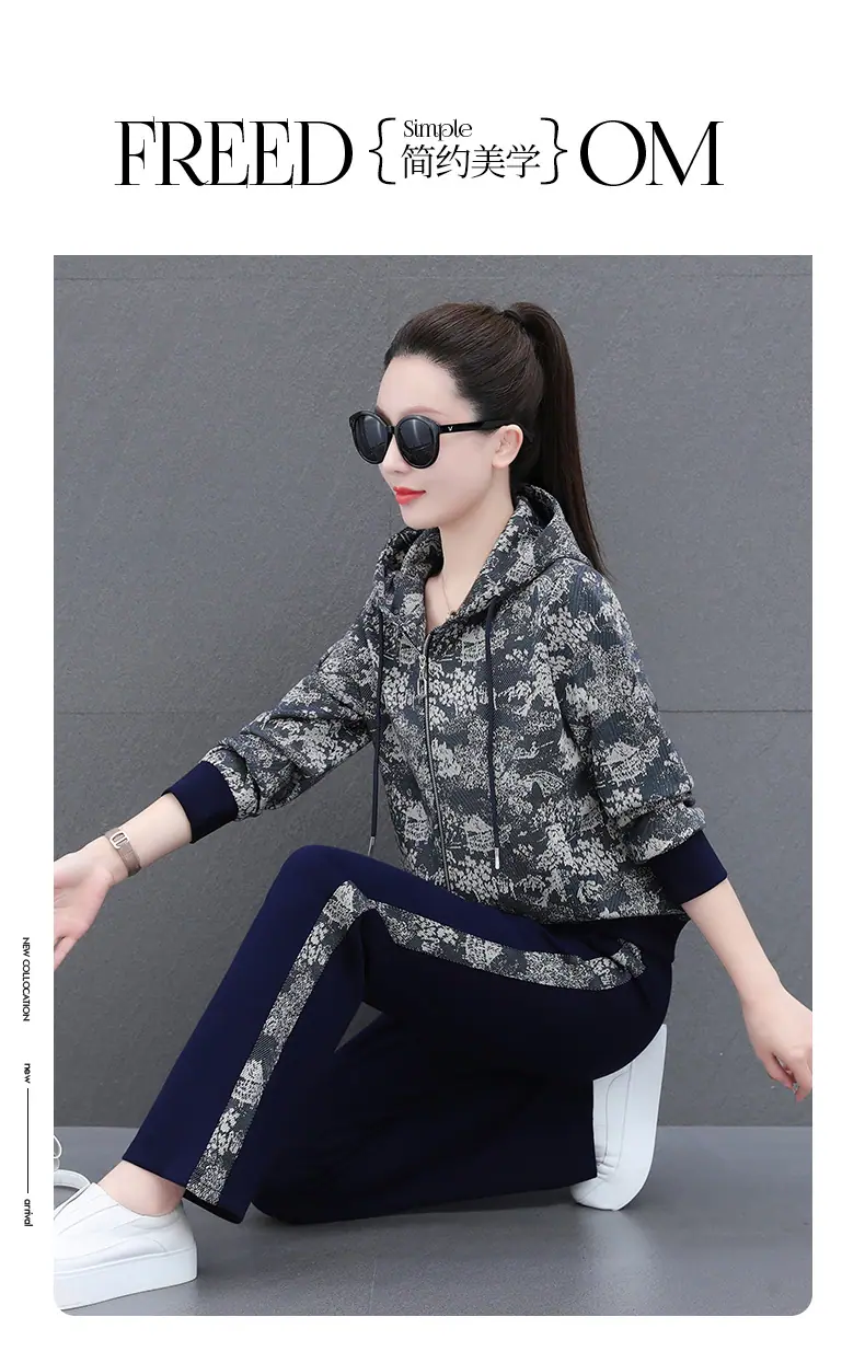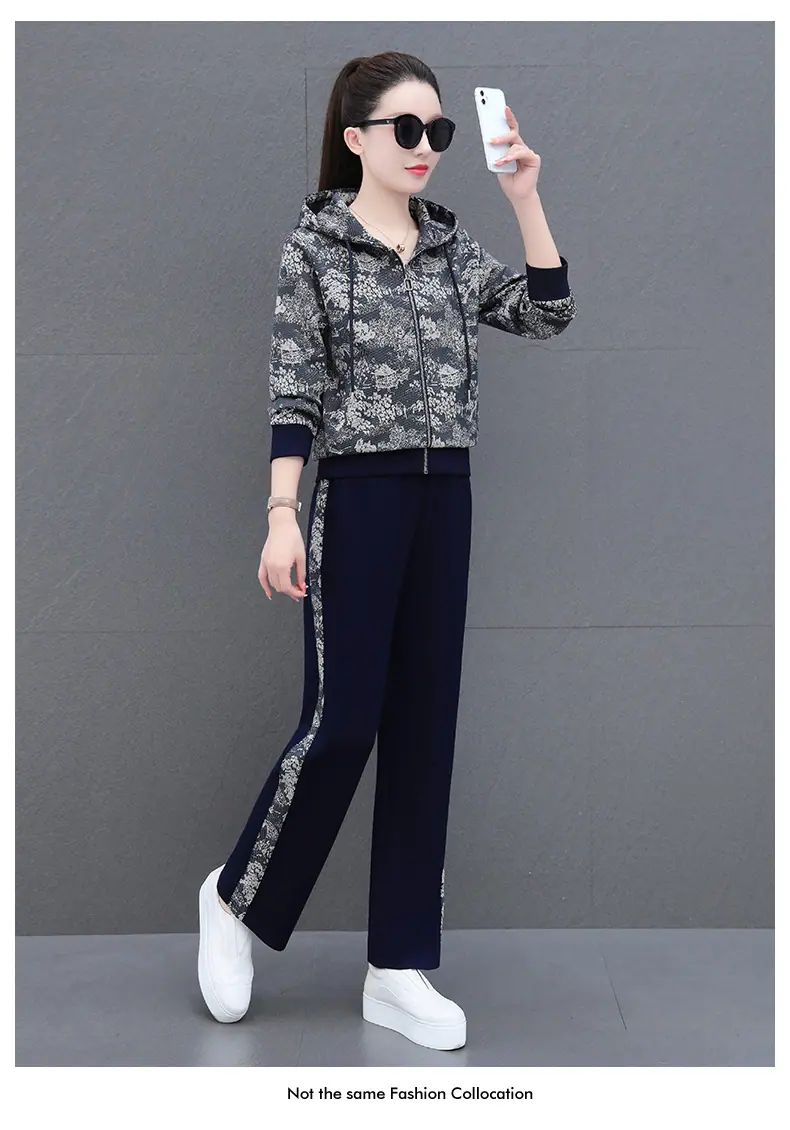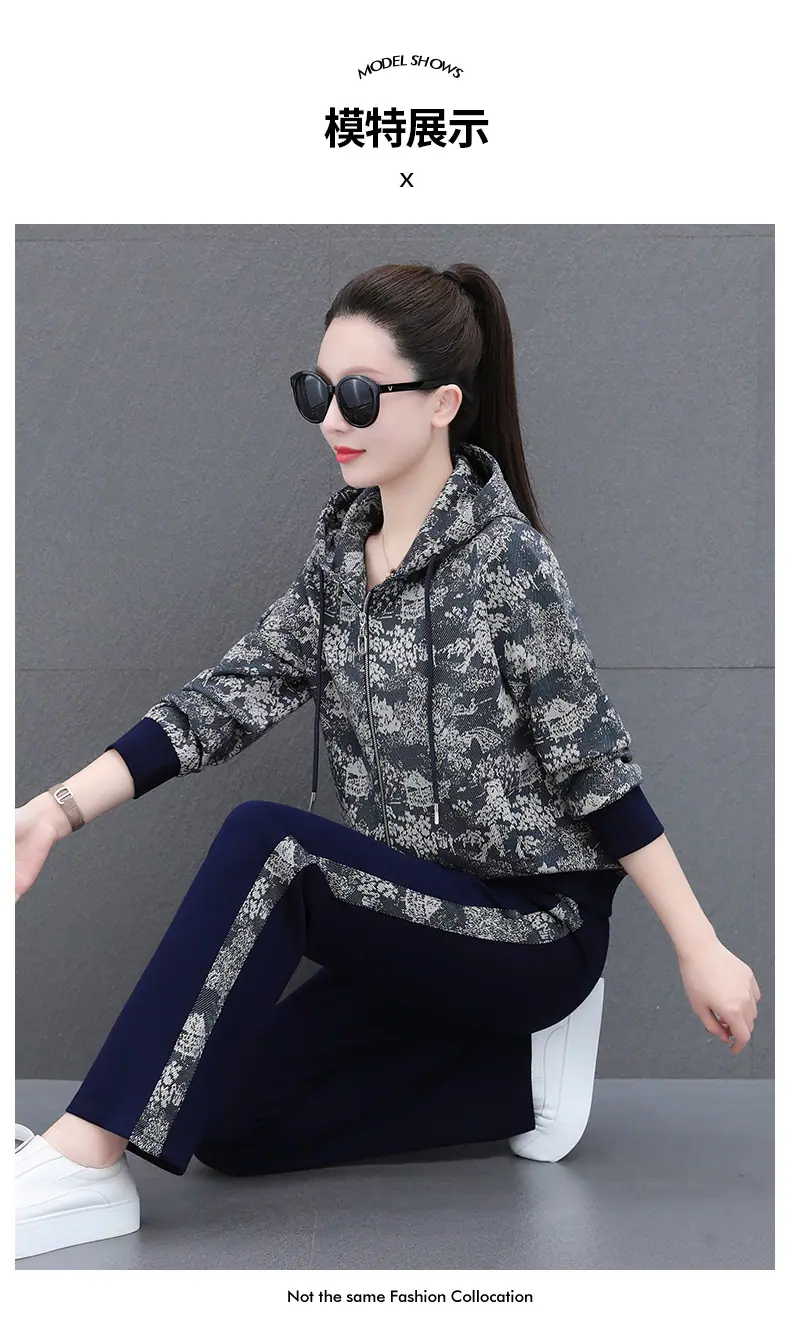 Traje deportivo casual para mujer Primavera y Otoño 2023 moda estampado con capucha manga larga sudadera holgada ropa deportiva conjunto de dos piezas