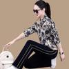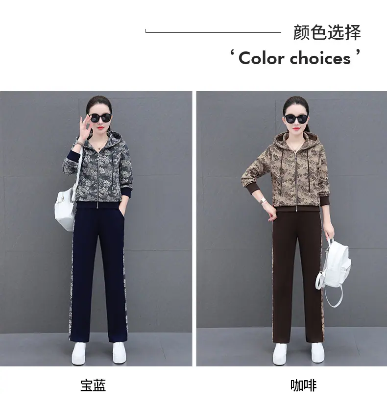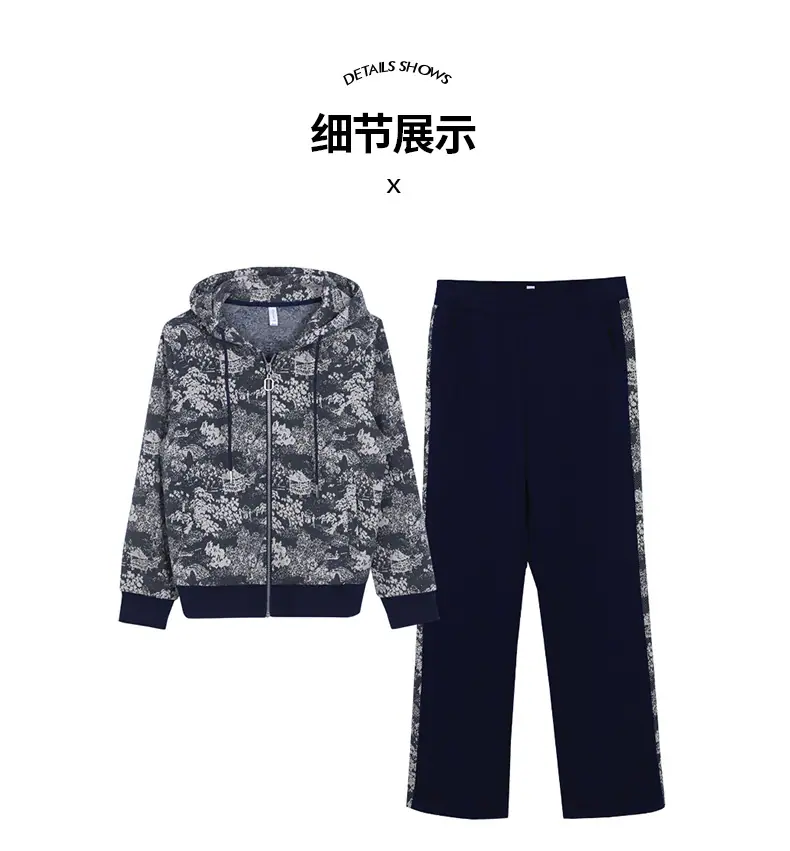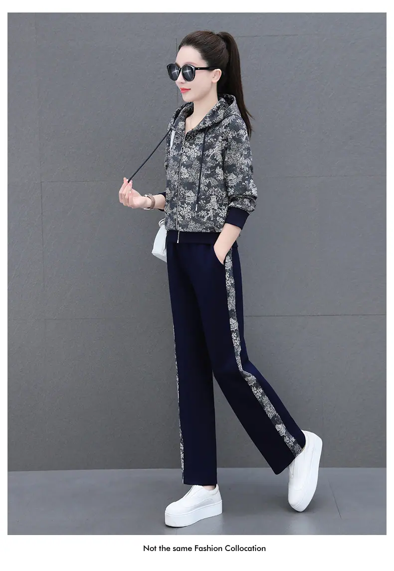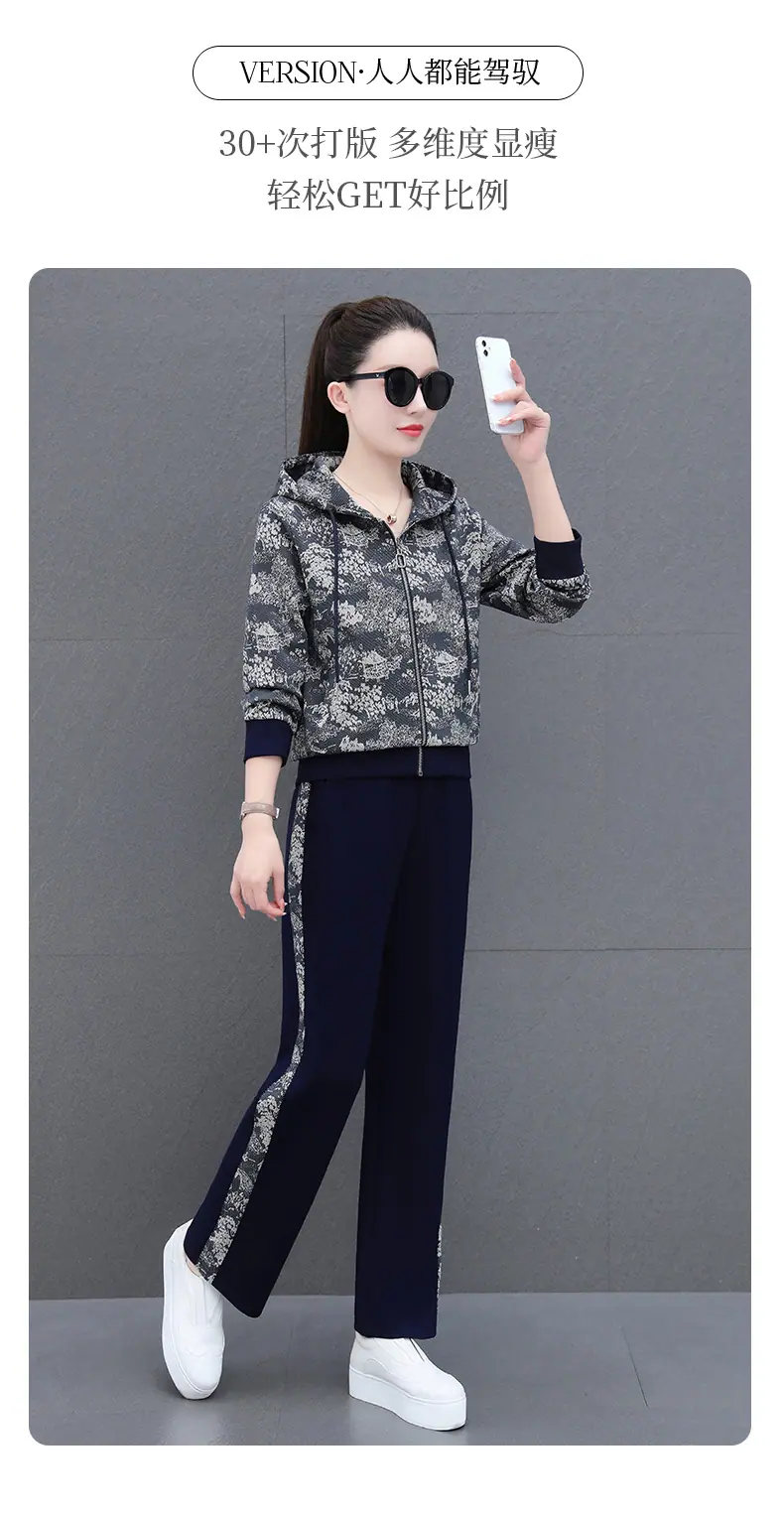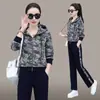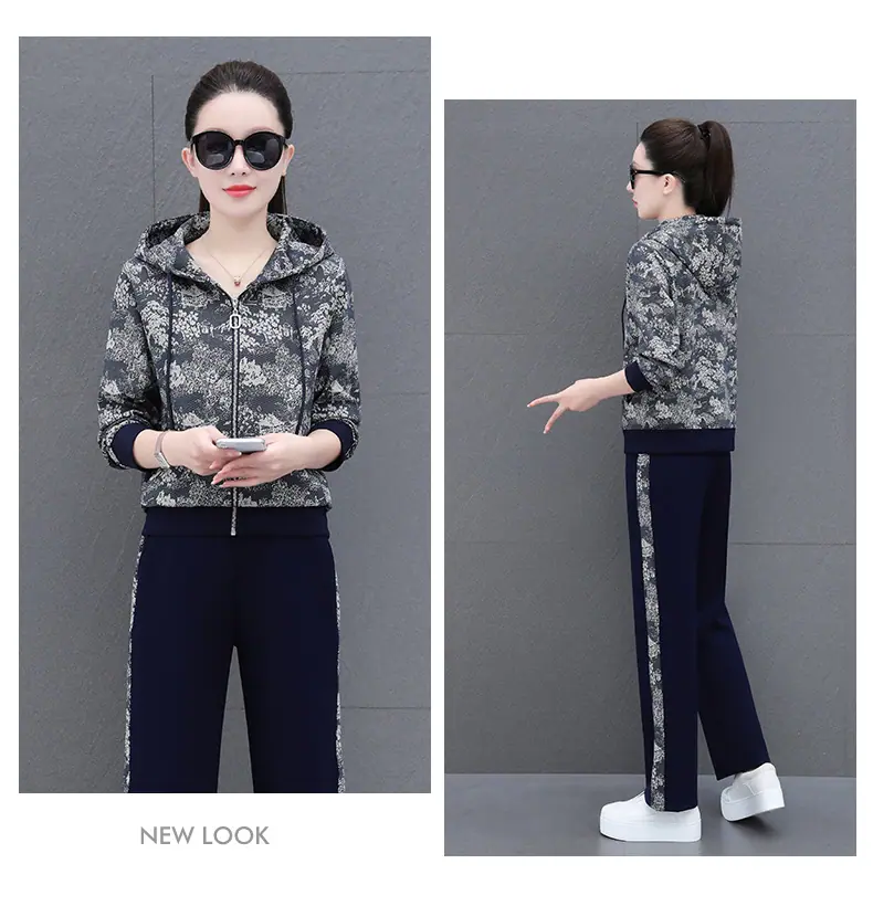 Traje deportivo casual para mujer Primavera y Otoño 2023 moda estampado con capucha manga larga sudadera holgada ropa deportiva conjunto de dos piezas