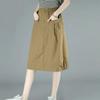 Falda de Algodón para Mujer 2025 Primavera Delgada Largo Medio Elástica Cintura Alta Slim Suelta Falda Línea A Ropa Casual para Mujer