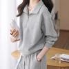 Traje Deportivo Casual de Waffle Transfronterizo para Mujer Primavera y Otoño Estilo Nuevo Sencillo Sudadera de Manga Larga con Solapa y Pantalones Dos Piezas