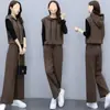 Conjunto de tres piezas chaleco 2025 nuevo de primavera y otoño casual deportivo versátil moda adelgazante talla grande conjunto mujeres