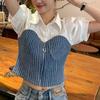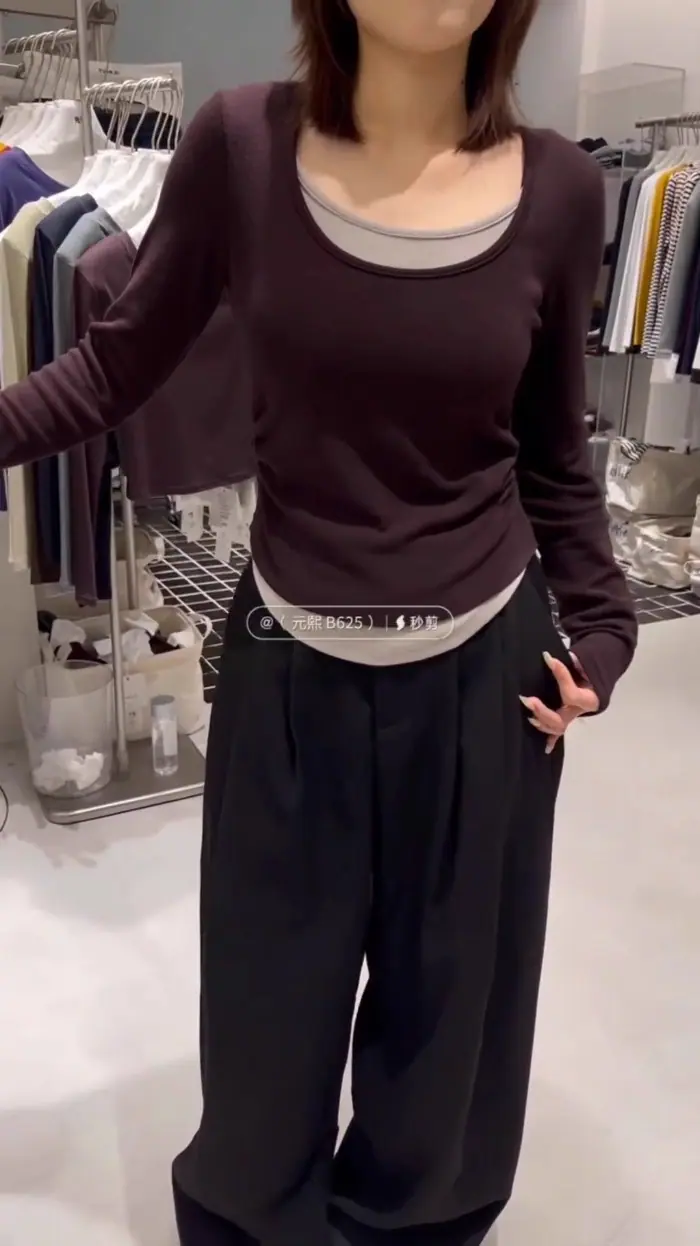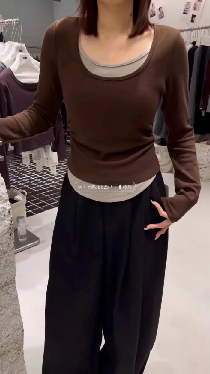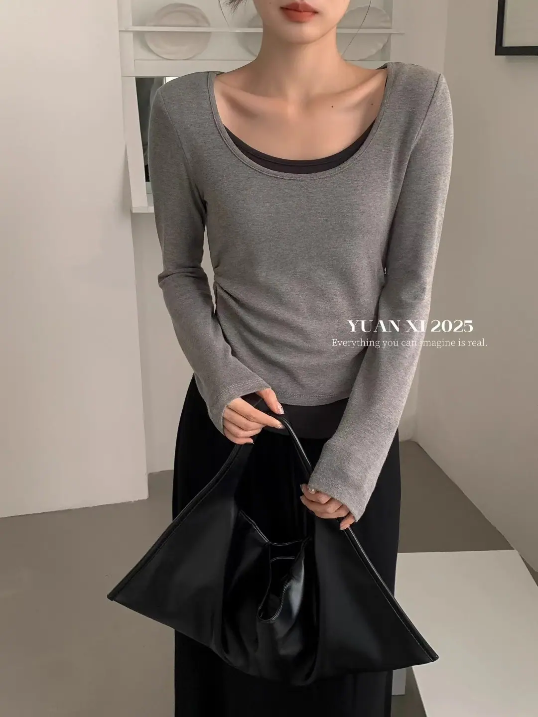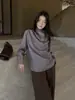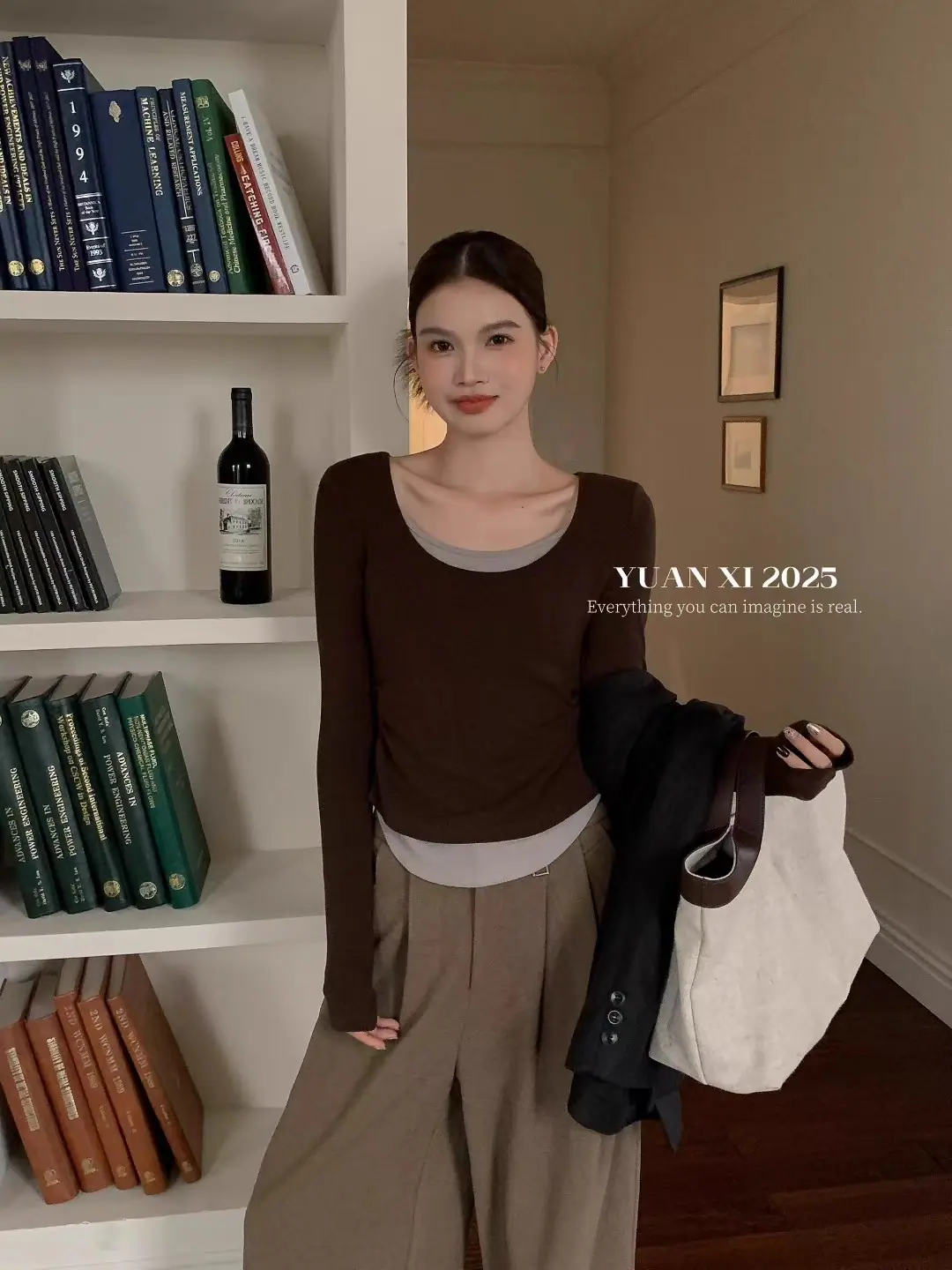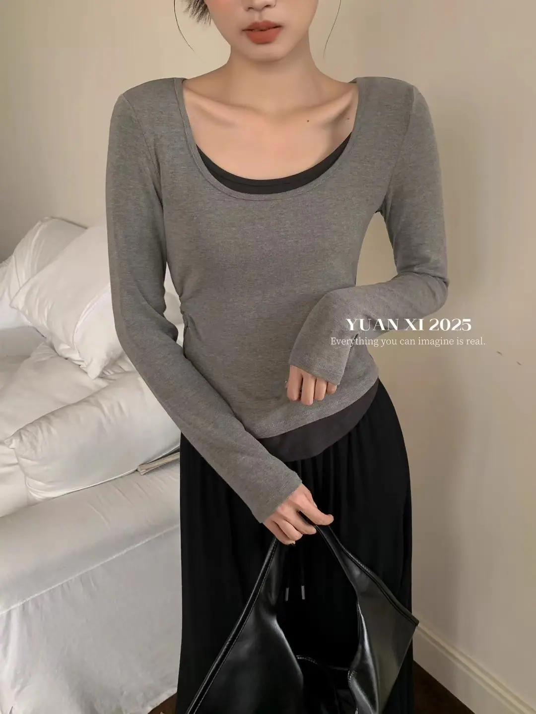 Sentido del diseño nicho personalidad bloque de color falso dos piezas ajuste ceñido camisa base de cachemira mujer principios de otoño nuevo estilo coreano temperamento adelgazante