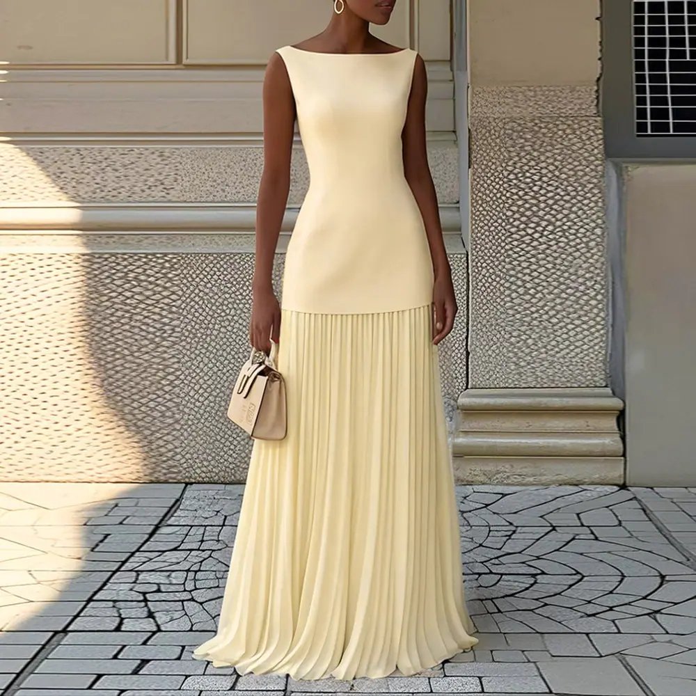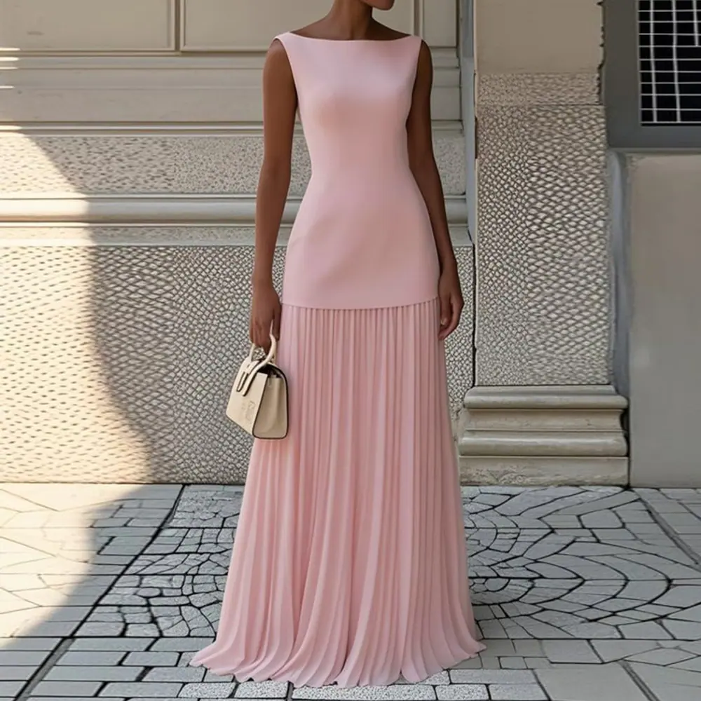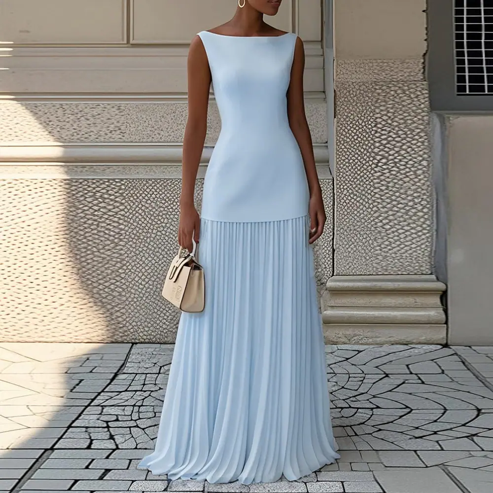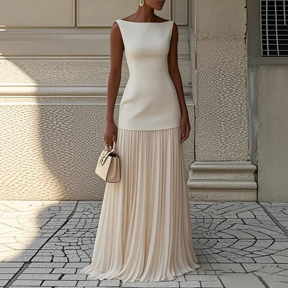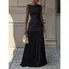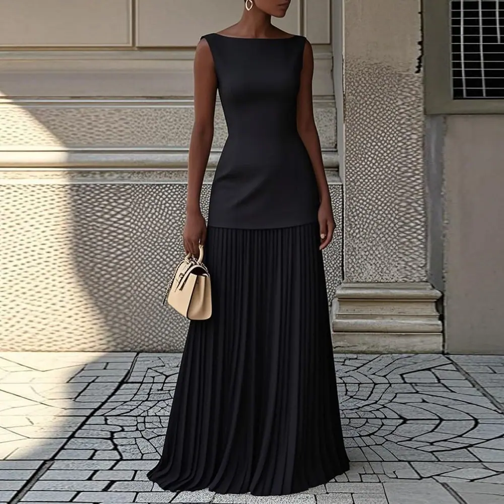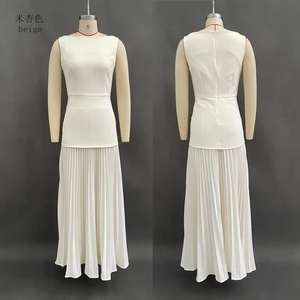2025 TEMU Transfronterizo Estilo Europeo y Americano Temperamento Elegante Ropa de Mujer Color Sólido Chaleco sin Mangas Vestido Largo Plisado de Gran Vuelo