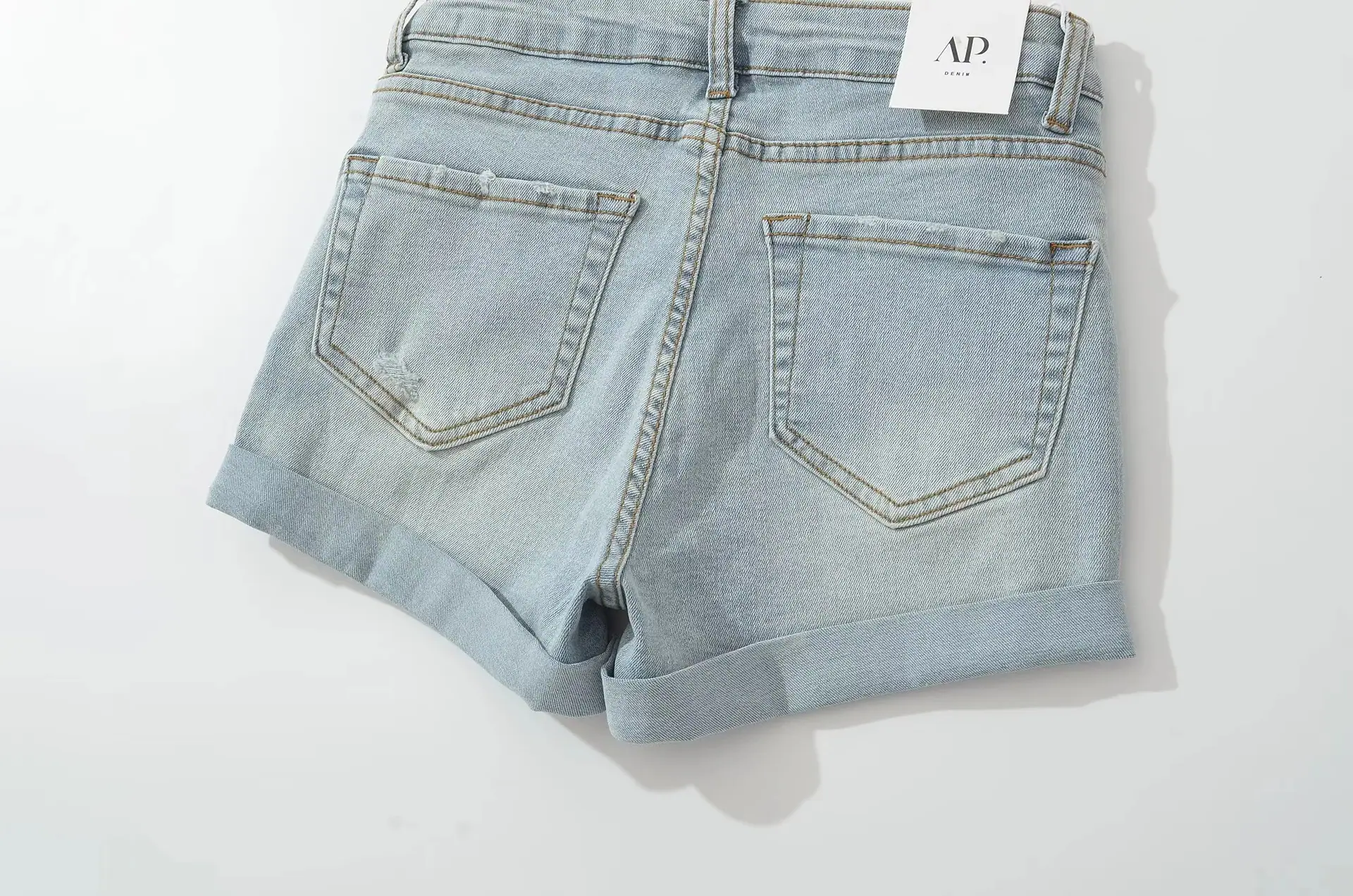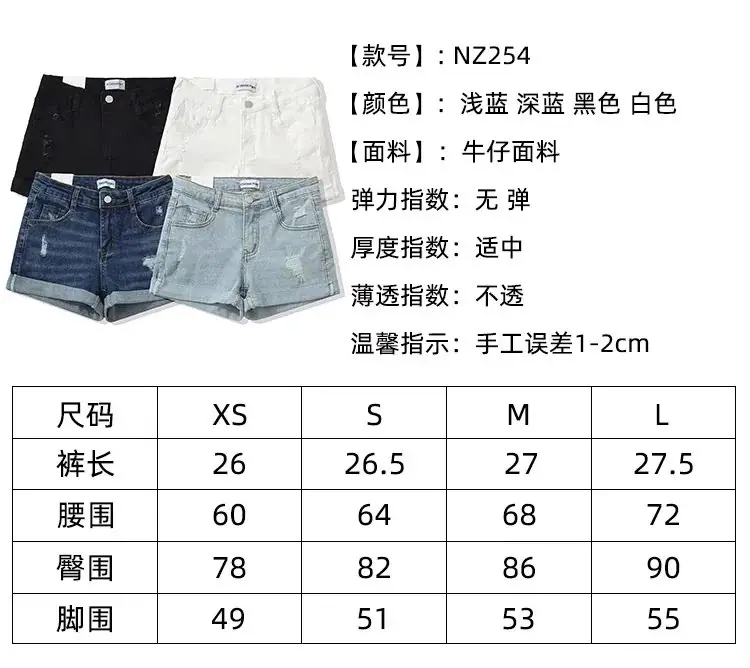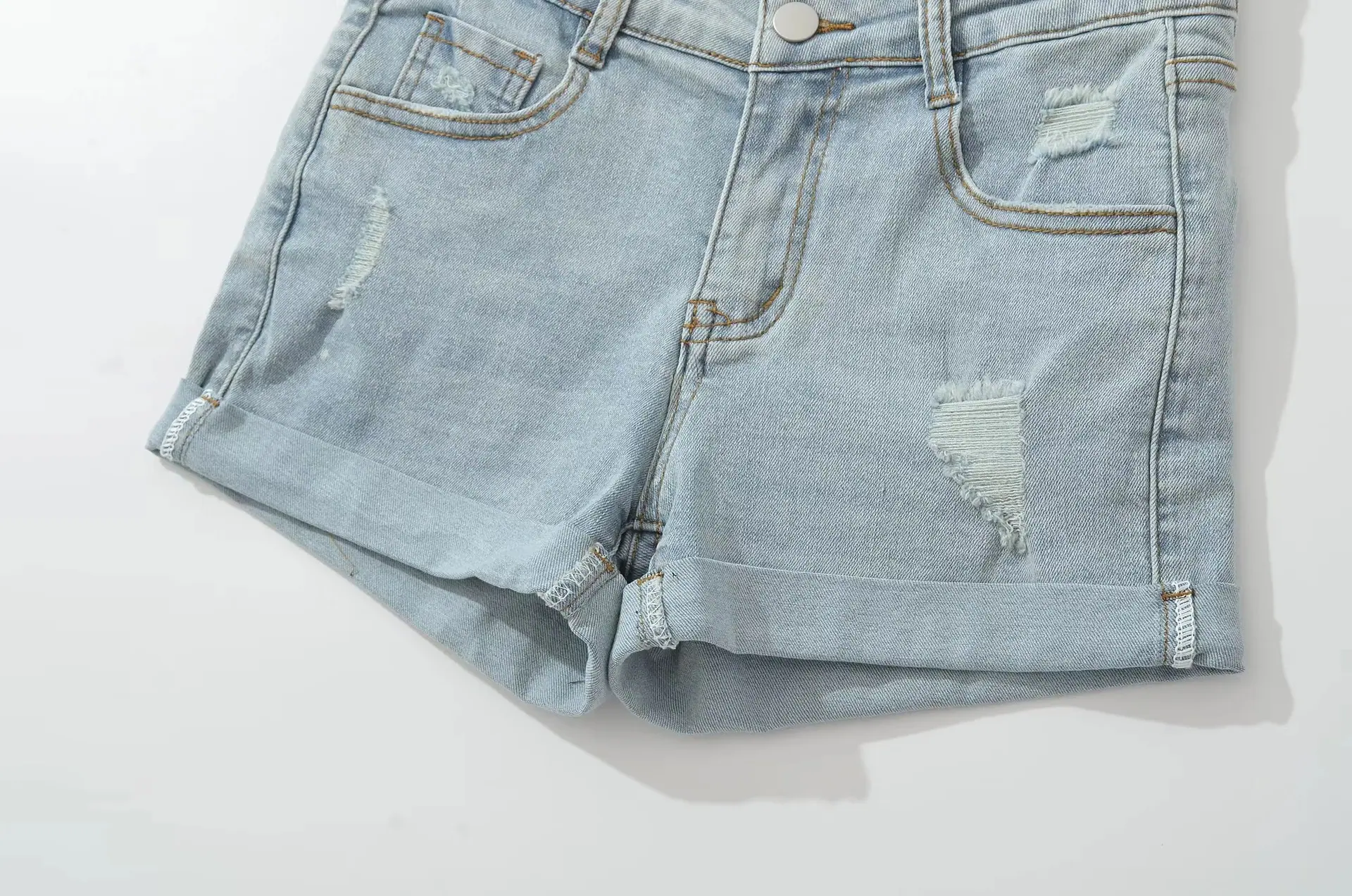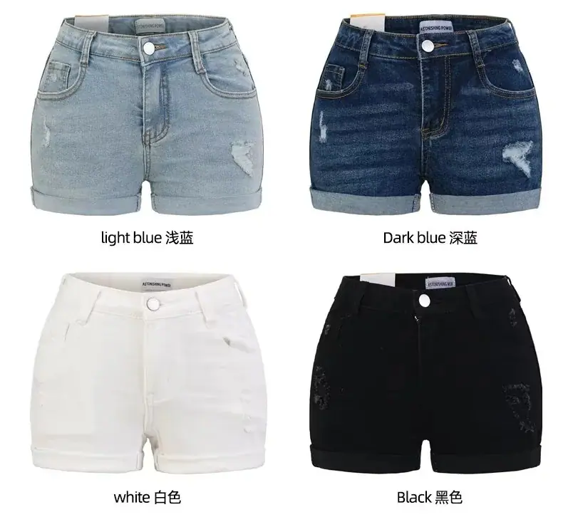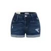Shorts de mezclilla de tiro bajo americanos para mujer, chica sexy, versátiles, de corte ajustado, pierna recta, elásticos, rotos, temperamento, ceñidos a la cadera, pantalones cortos hot
