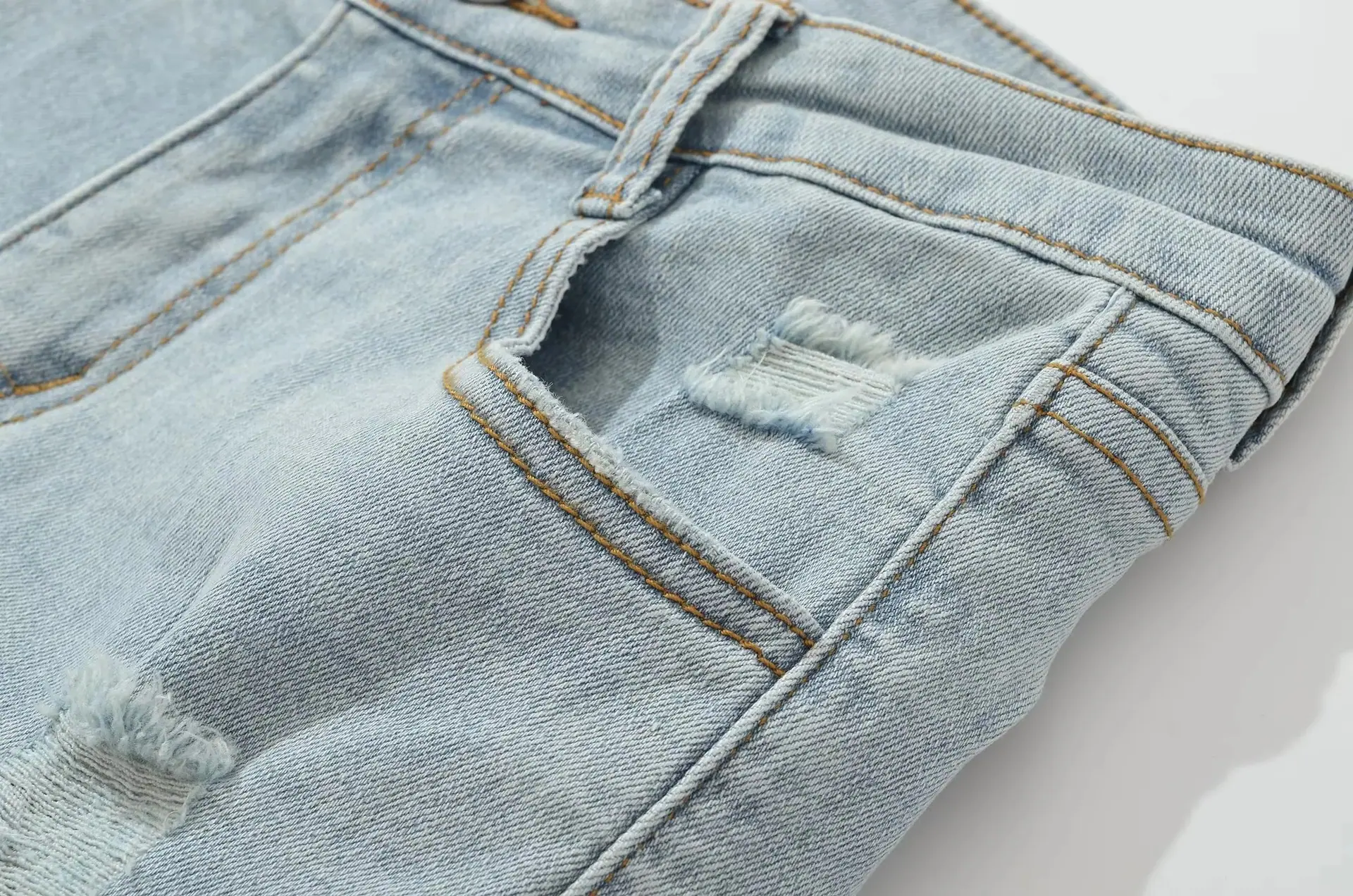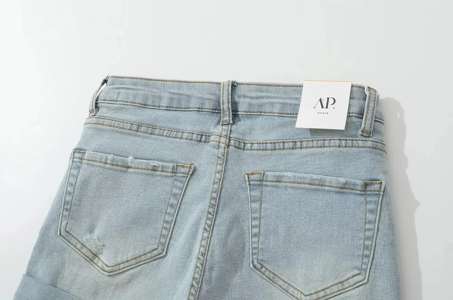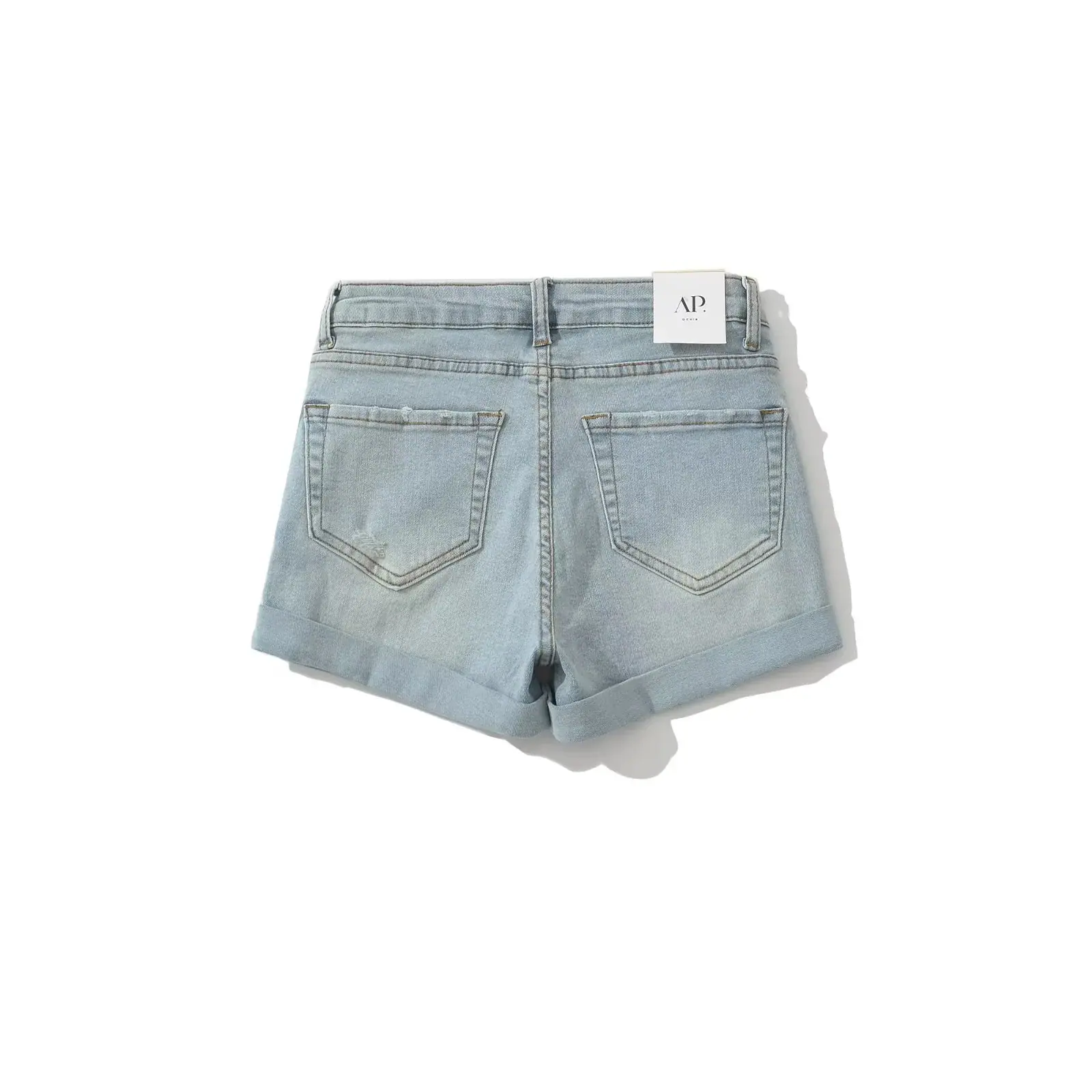 Shorts de mezclilla de tiro bajo americanos para mujer, chica sexy, versátiles, de corte ajustado, pierna recta, elásticos, rotos, temperamento, ceñidos a la cadera, pantalones cortos hot