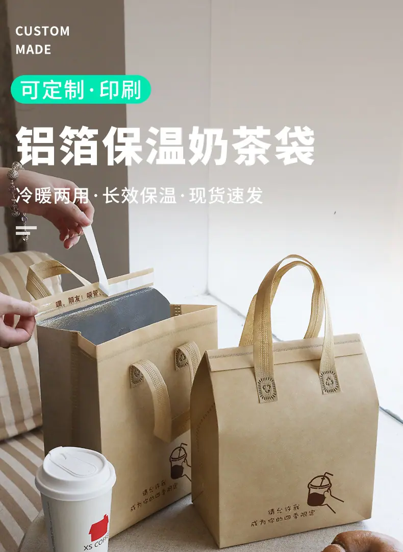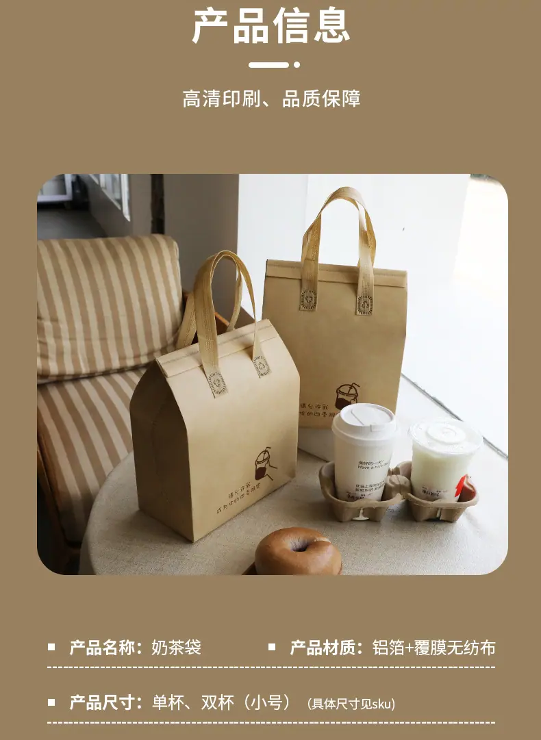 Kraft paper milk tea; drink single cup 12*28 high*10-aluminum foil insulation bag, Kraft paper milk tea; small...