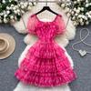 Compra Vestido de una sola manga con volantes florales estilo palacio de lujo ligero para mujer, verano, malla con borde de oreja, hermoso, puro lustre, falda media al por mayor en Joom.pro