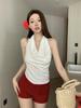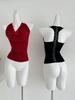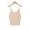 Chaleco de punto calado con cuello en V americano estilo BM para mujer, verano, chica guapa, delgado, pequeño, camisola retro adelgazante sin mangas